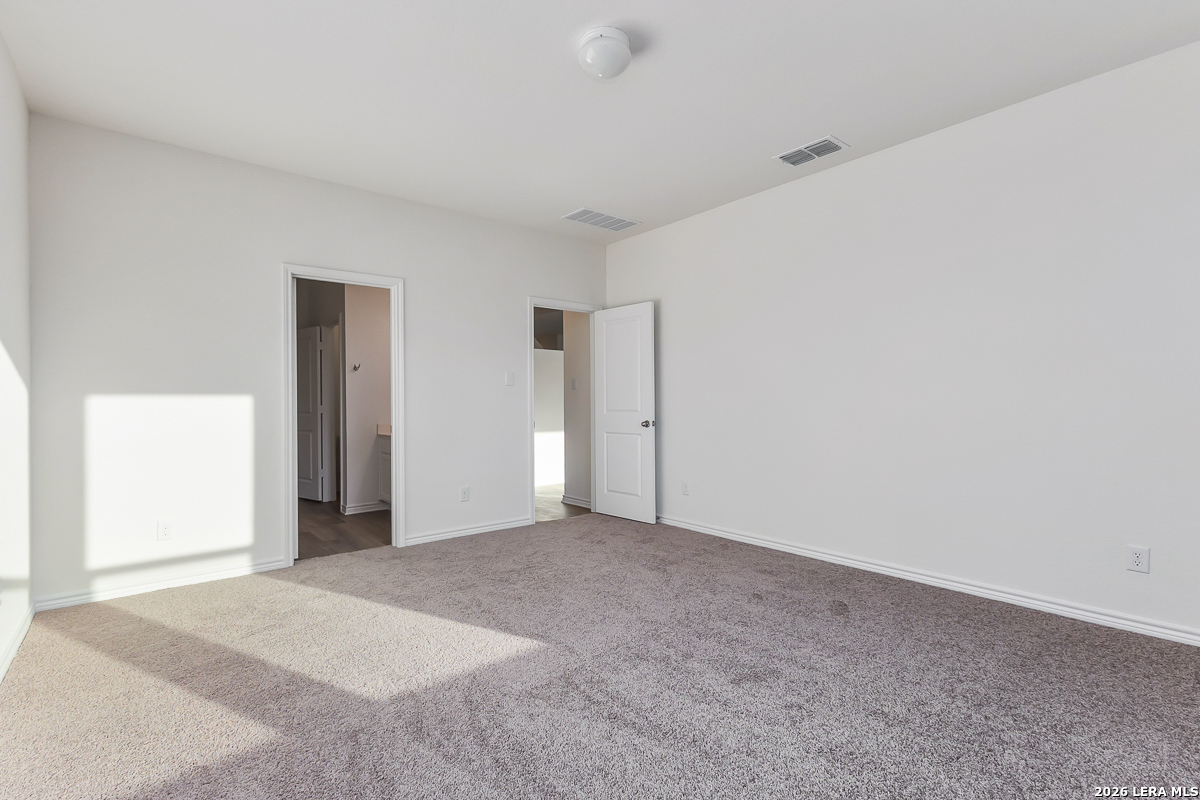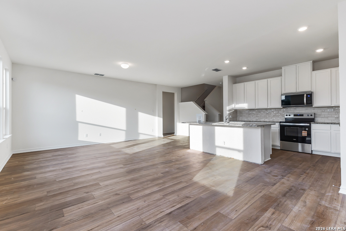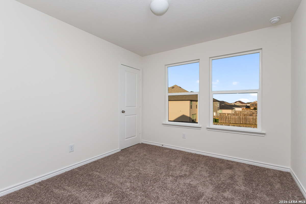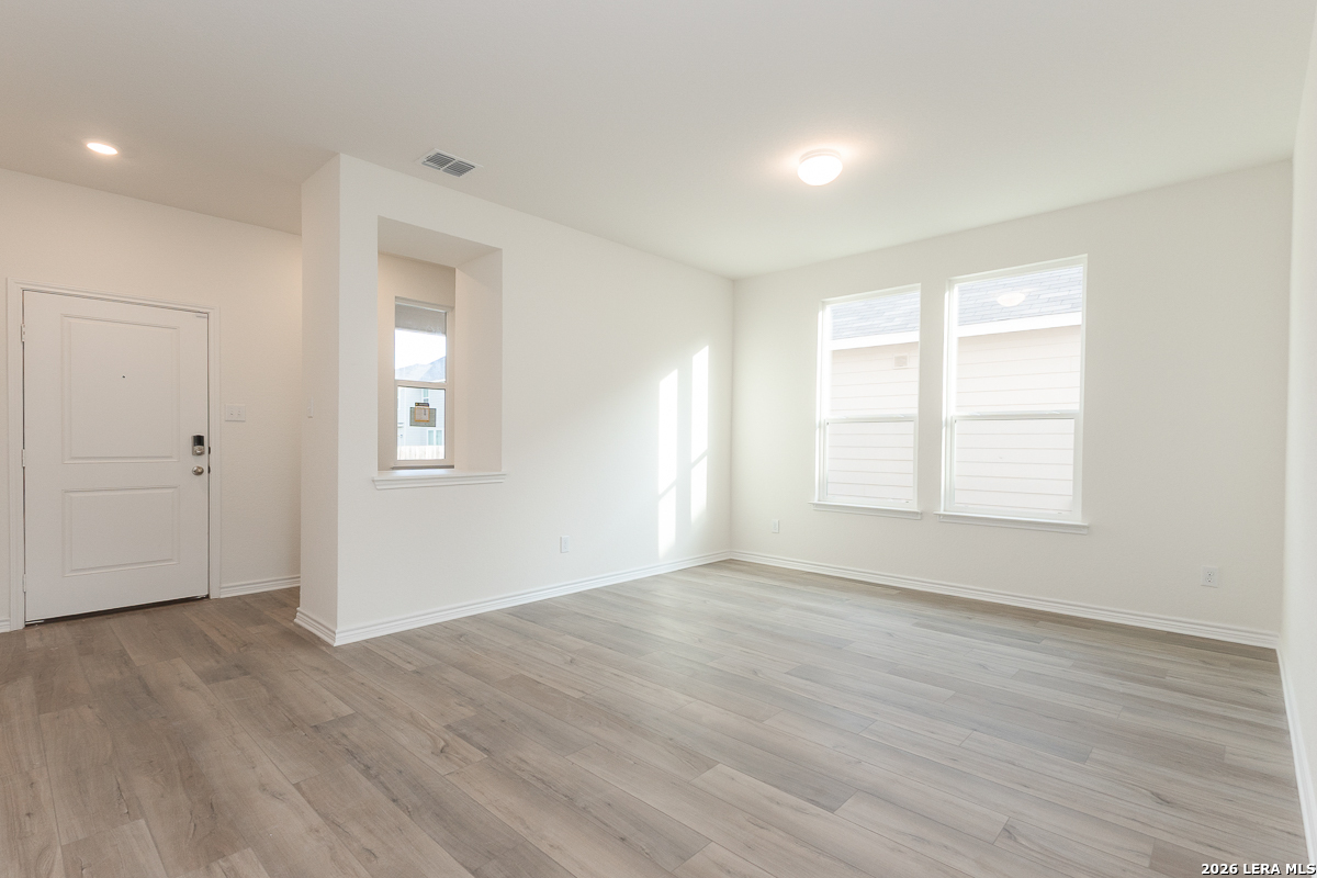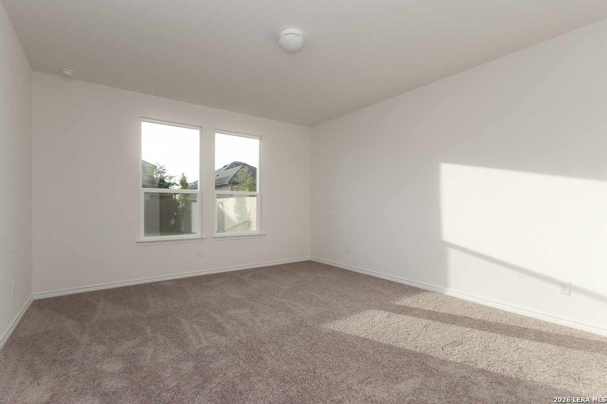 This thoughtfully designed home features 9-ft. first-floor ceilings that create a spacious, open feel. The kitchen is equipped with Whirlpool stainless steel appliances, Woodmont Belmont 42-in. upper cabinets, a Daltile tile backsplash, and an extended breakfast bar-perfect for casual dining and entertaining. The primary bath offers a raised vanity, upgraded cabinets, and a 42-in. shower with a sleek Daltile tile surround. Stylish details include a Carrara-style entry door, Kwikset Polo interior door hardware, and vinyl plank flooring in the bathrooms, kitchen, and great room. Additional highlights include a wireless security system, soft water loop, fully sodded yard, and automatic sprinkler system for easy maintenance.