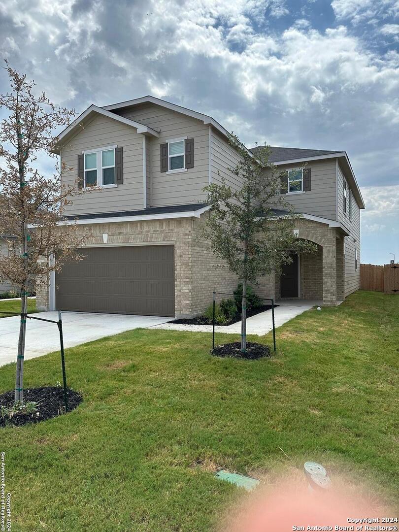 **NEWLY BUILT! NEVER LIVED IN! featuring 9-ft. first-floor ceilings and a versatile den with double doors, perfect for a home office or guest retreat. The kitchen is a culinary haven with Woodmont Cody 42-in. upper cabinets, top-of-the-line Whirlpool stainless steel appliances. Relax in the primary bath's 42-in. garden tub/shower with tile surround, offering a spa-like experience. Elegant touches include Emser ceramic tile flooring and Generation Lighting fixtures throughout, adding both style and sophistication. Enjoy peace of mind with a wireless security system, while outside, unwind on the covered patio and admire the lush landscaping maintained by the automatic sprinkler system.