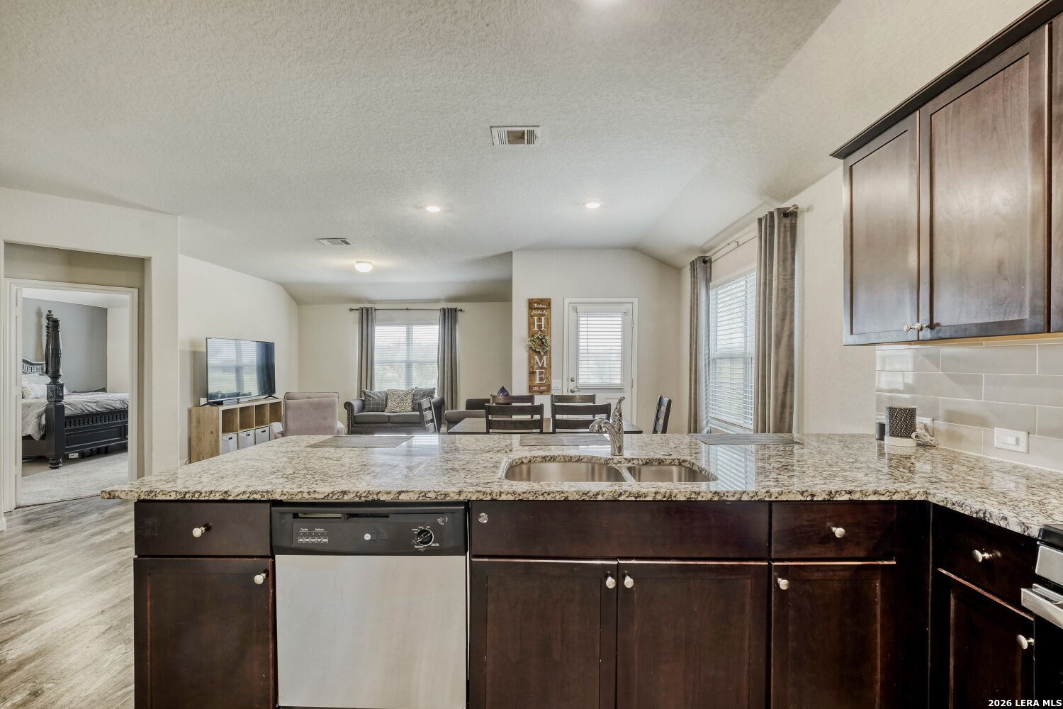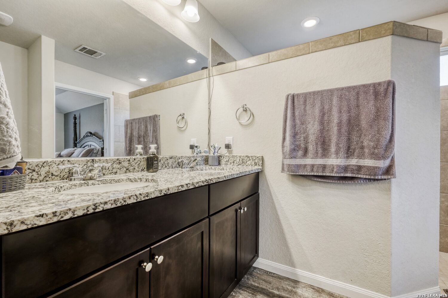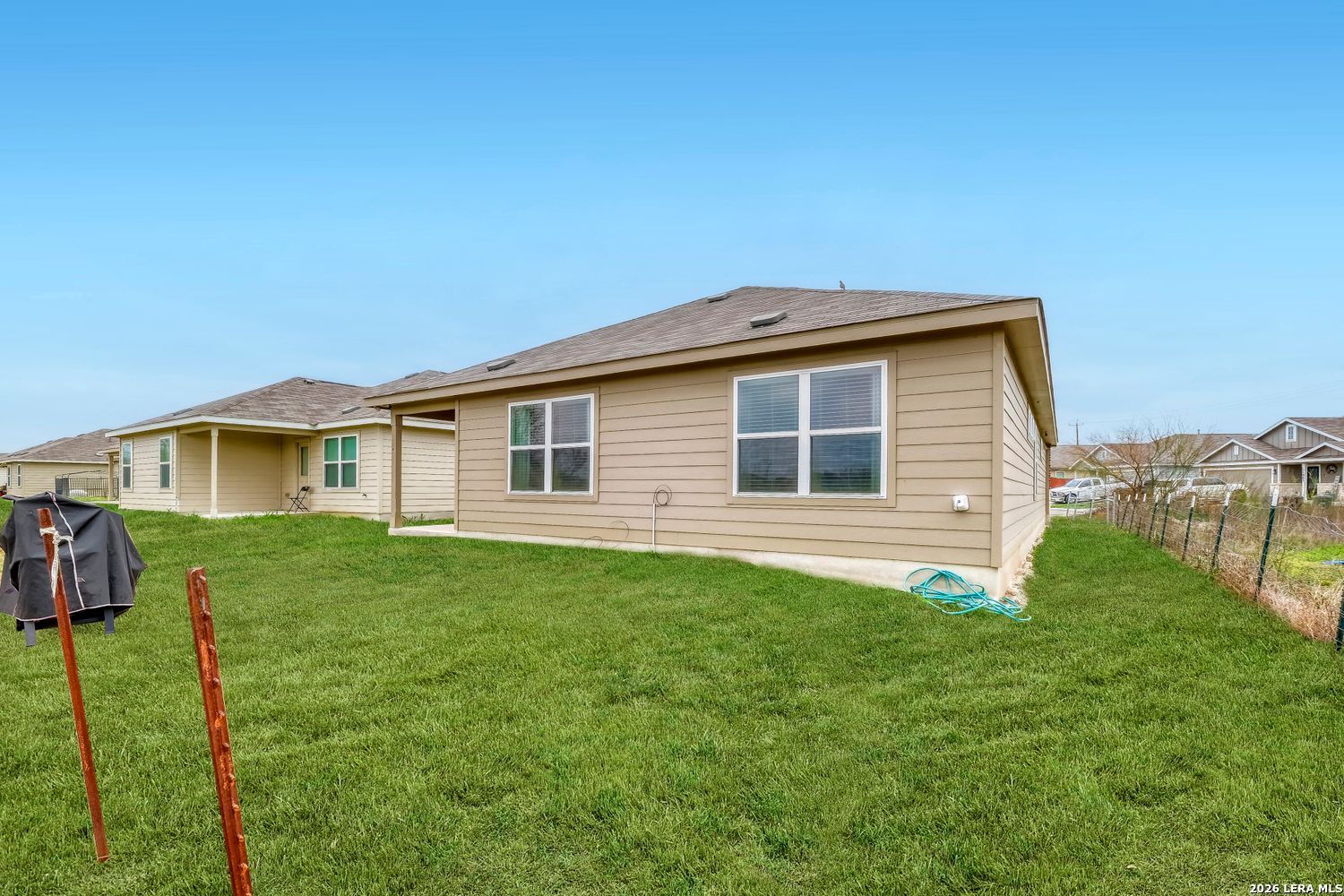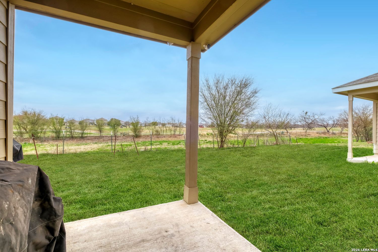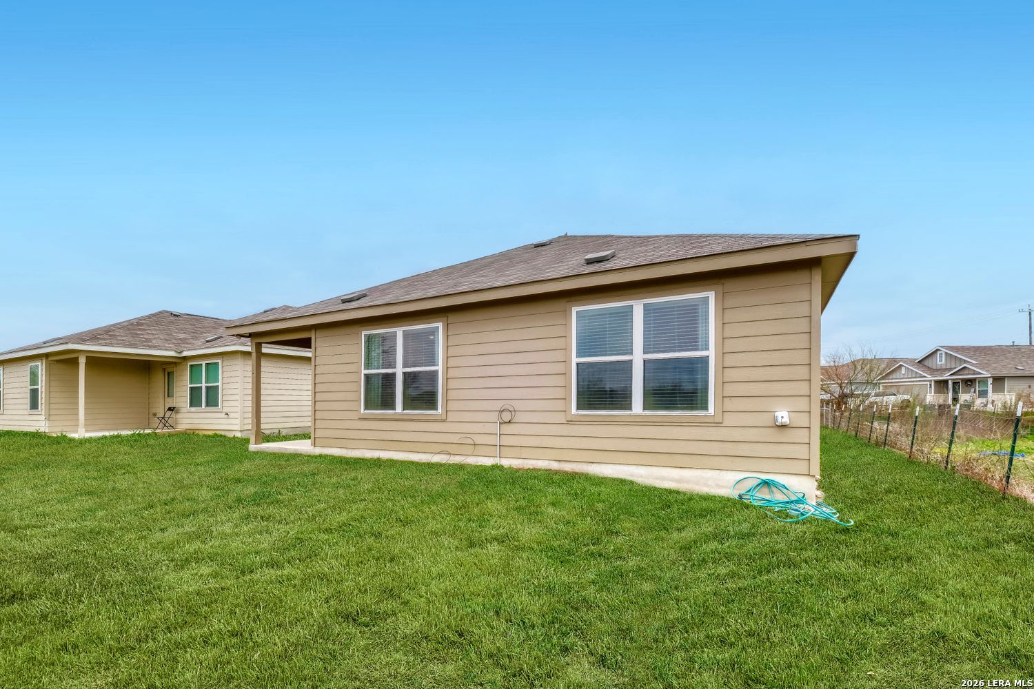 Current interest rate may be assumable. This inviting one-story Barrington Collection home is tucked away on a quiet cul-de-sac and welcomes you with an extended foyer that creates a warm first impression. Two comfortable secondary bedrooms are thoughtfully placed to the left and share a well-appointed bath, offering flexibility for guests, family, or a home office. As you move through the foyer, the layout opens effortlessly into a spacious kitchen that flows into the dining area and expansive family room, making it ideal for both everyday living and entertaining. Enjoy relaxing evenings on the covered patio overlooking a great-sized backyard with plenty of room to unwind or personalize. The private primary bedroom serves as a peaceful retreat, featuring an ensuite bath with dual vanities, a large soaking tub, and an impressive walk-in closet. This home is Energy Star qualified equipment & Radiant barrier, too. Conveniently located near area and community amenities such as a sparkling pool and clubhouse, this home combines comfort, functionality, and a desirable setting. Book your tour today!