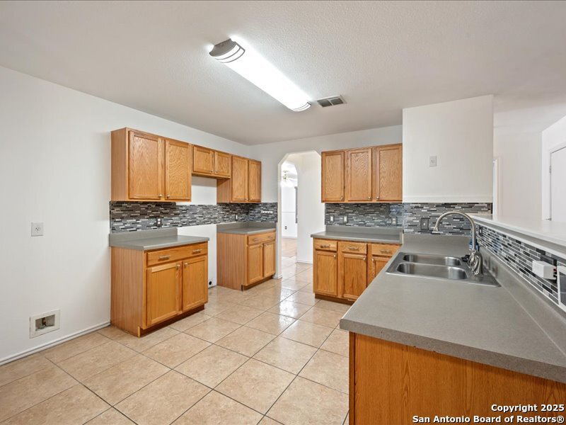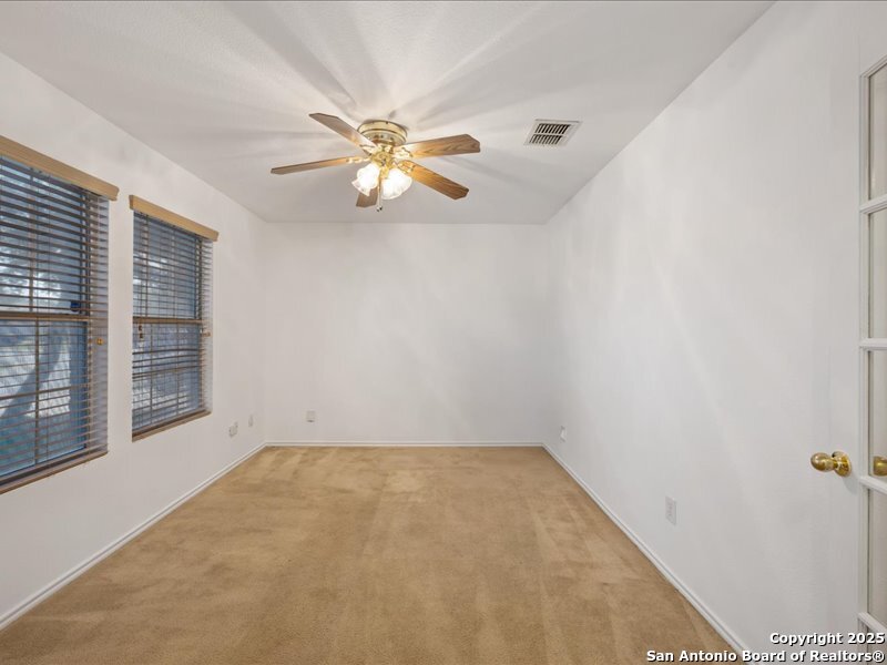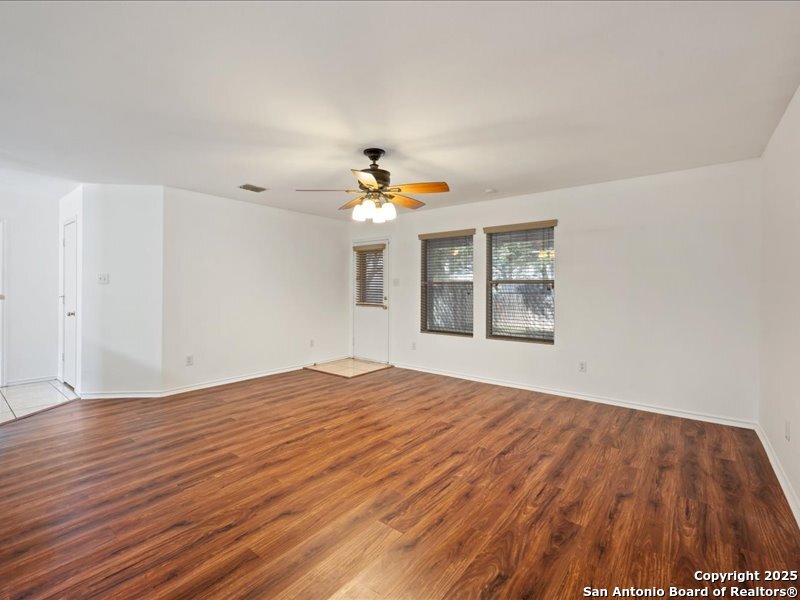Spacious 4 bedroom home with master suite downstairs for privacy. Alarm system with wired cameras and ring door bell, vinyl flooring, private office, custom black out screens, custom blinds, front and back storm doors, custom 10x12 storage shed, barbecue pit, custom landscaping with circular lounge chair and canopy that conveys, spacious loft with ceiling fan and surround sound speakers, NISD schools. Neighborhood has playground, and sport courts. Near shopping centers, main highways and Dub Farris Stadium.