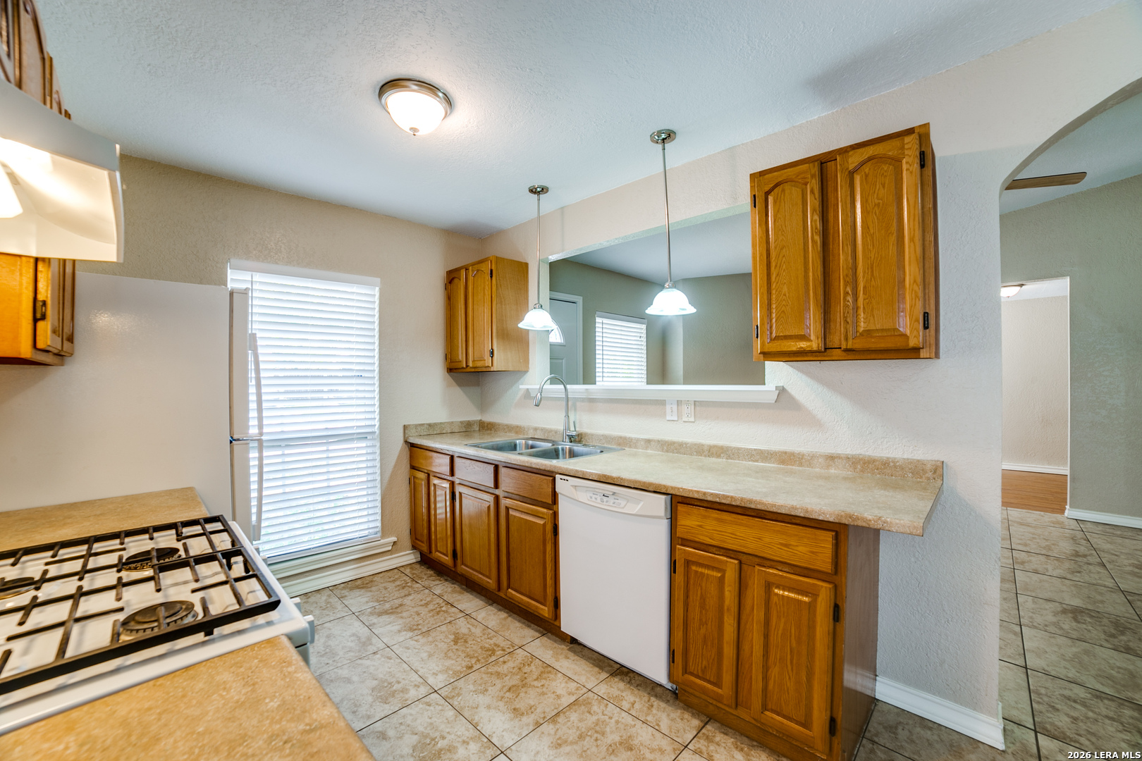 This inviting one-story home features an open floor plan with ceramic tile and laminate flooring throughout, offering both style and easy maintenance. A cozy wood-burning fireplace anchors the living area, creating a warm and welcoming space to relax. The converted garage adds flexible living space that can be used as a family room, home office, or play area. The kitchen includes a refrigerator for added convenience, making move-in simple. Conveniently located near major highways, shopping, and entertainment, this home offers comfort, versatility, and a great location all in one.
