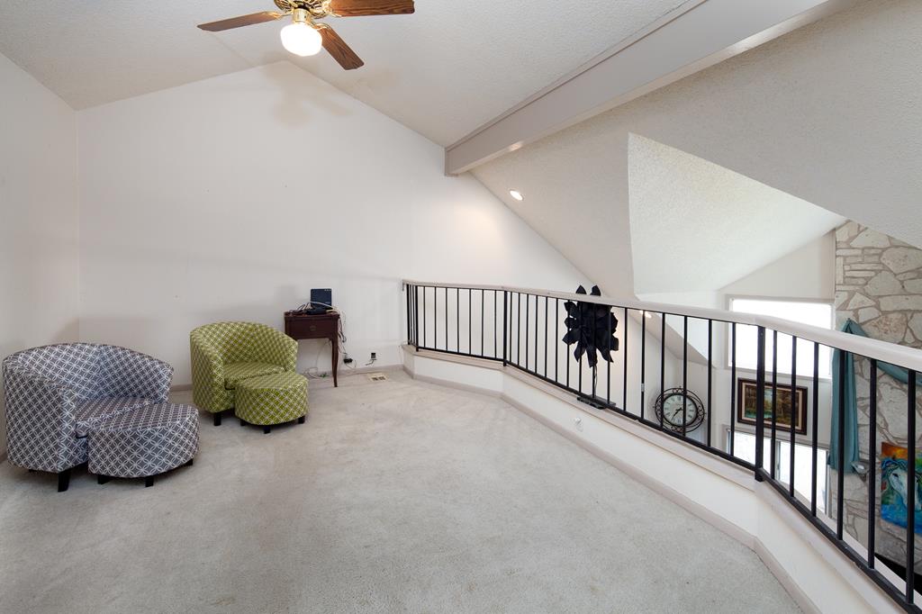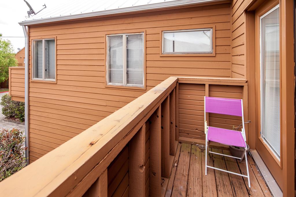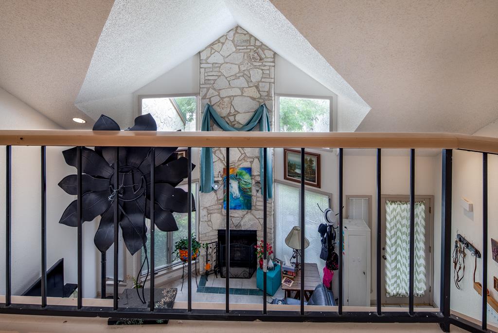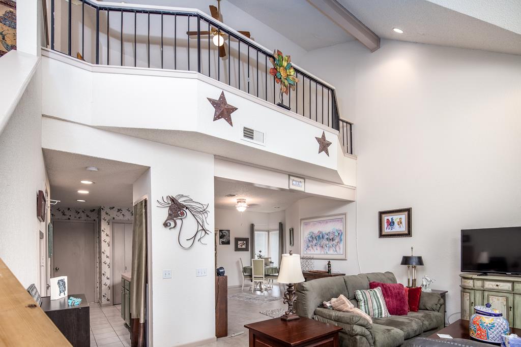 Looking for convenient location with low maintenance? Condo in Quinlan Crossing, 1 bdrm 1 1/2 bath with 1 car attached garage and beautiful courtyard. Living room opens to kitchen and dining and high ceilings with wood-burning fireplace, living room and kitchen with updated tile floors & new ceiling fan. Upstairs loft can be used for den and/or office + private bedroom with en suite bath, balcony off bedroom (updated doors). Quinlan Crossing has clubhouse and swimming pool, fees include use of amenities, pest control, water, garbage pick up, common grounds and exterior maintenance.