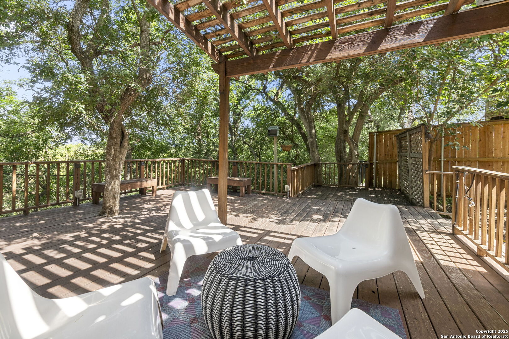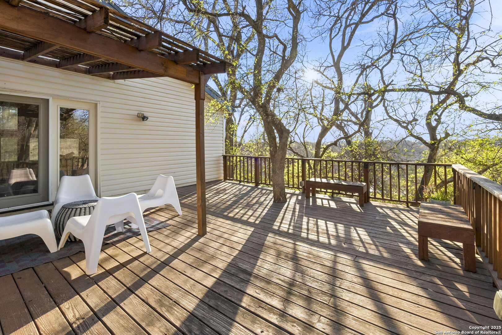 Sitting on a beautiful corner lot this home offers the perfect balance of modern comfort and Hill Country charm. Mature shade trees right off the wooden deck create an inviting outdoor space ideal for relaxing and watching the sunset. Located inside the Loop, just 1 mile from Schlitterbahn and under 1.5 miles from both Landa Park and the Comal River Tube Chute, the home offers a truly unique lifestyle opportunity in the sought-after Summerwood neighborhood. Sitting just up the hill from River Acres Park, it's a rare opportunity to live among the treetops in one of the most desirable areas of New Braunfels. Inside, the open layout features a spacious kitchen with granite countertops, stainless steel appliances, an owned water softener, oversized garage, an attached shed, and plenty of storage throughout. This is a must-see home in a prime location.