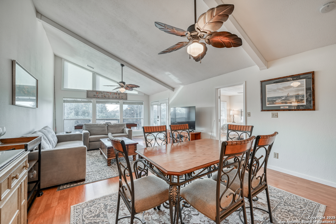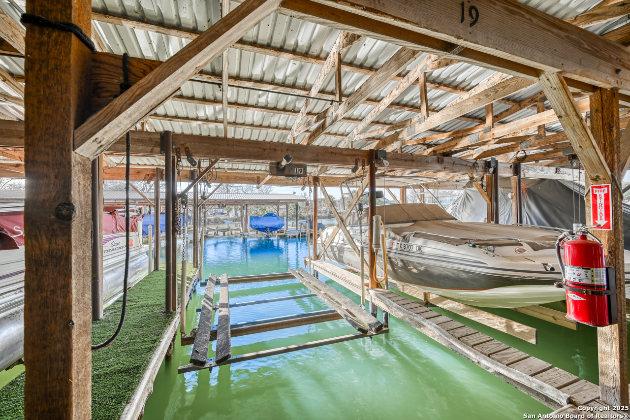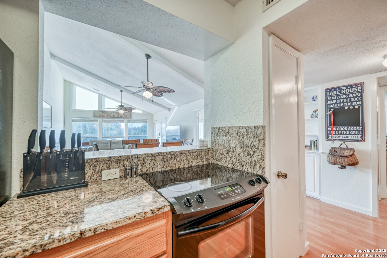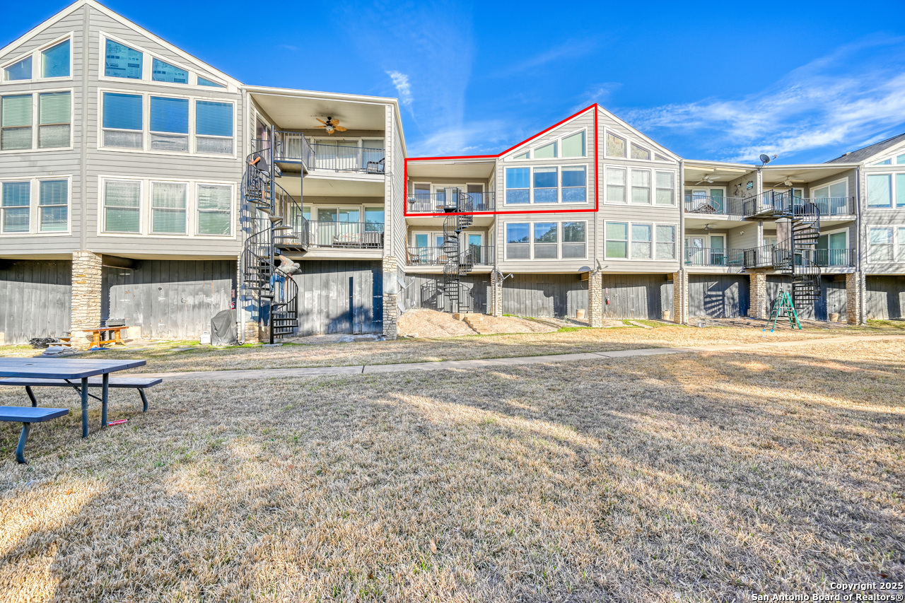 Welcome to low maintenance Lake Life on Lake LBJ! This beautiful unit has 3 bedrooms, 2 bathrooms, laundry/mud room with 2nd Fridge/Freezer, kitchen with a breakfast bar, and an open dining and living space. The vaulted ceilings give added charm and make the space feel open and airy. There is a reverse osmosis water system installed at the sink & ice maker. 2 sets of doors open to a lovely balcony and the spiral staircase leads directly below to an additional storage space for kayaks, lake toys, fishing gear and tools. Across the lawn, you'll find the refreshing pool as well as the dock and marina.There is also a wonderful smoker and grilling area for community use. This unit is completely move in ready and is being sold fully furnished minus a few of items. All appliances convey. This is the best deal on the lake for a turn-key fully furnished property that includes a deeded boat slip/lift and PWC ramp. This boutique condo community is a rare gem and the set up can't be beat!