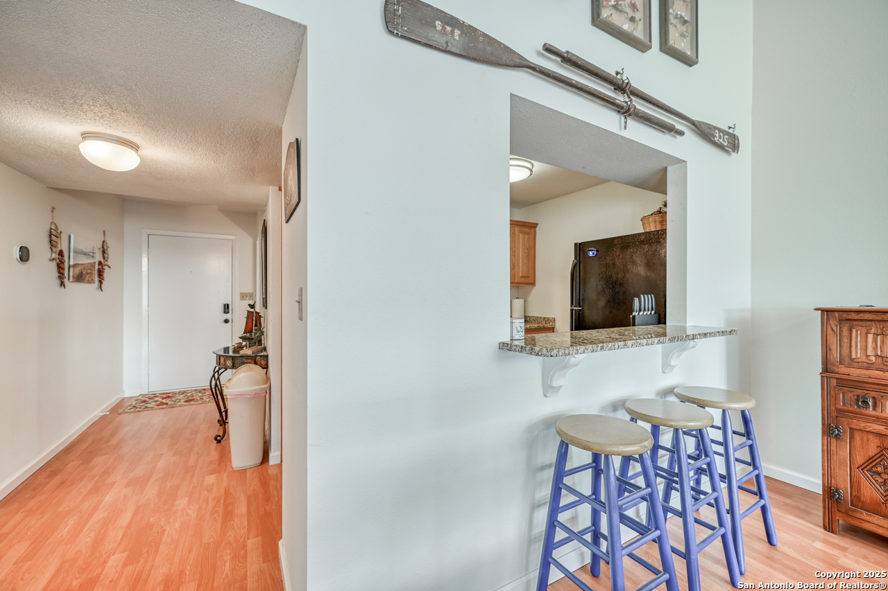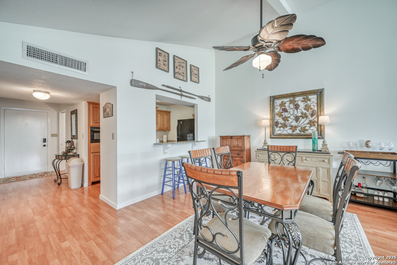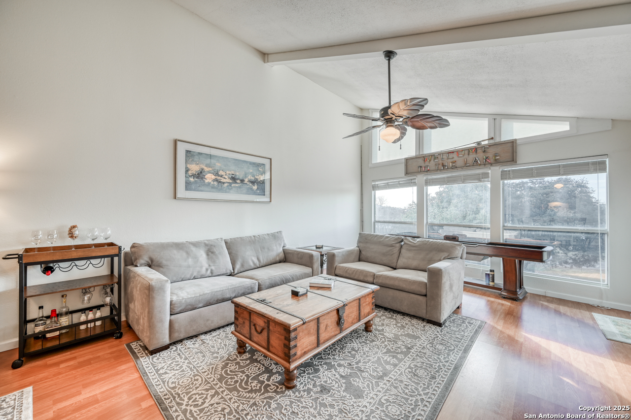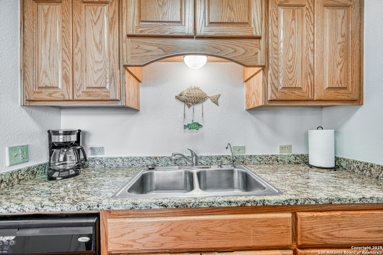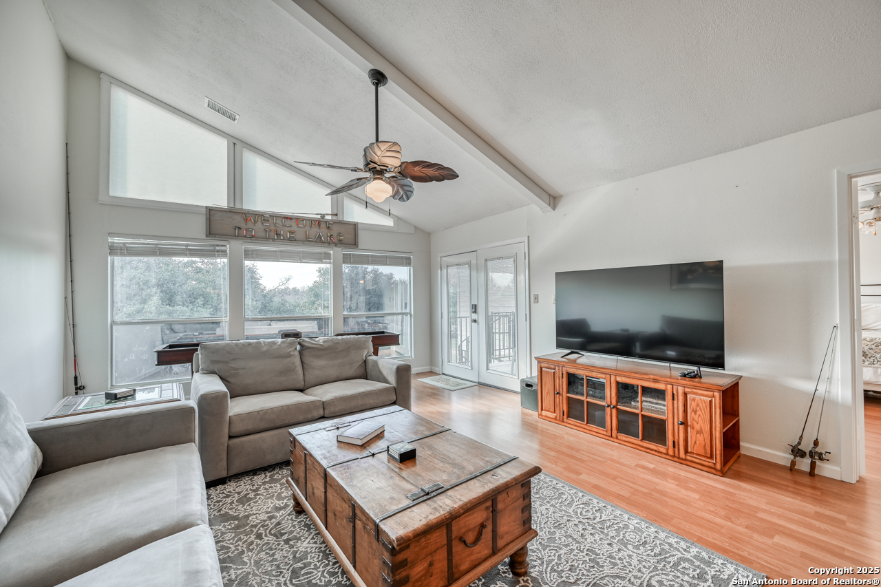 Welcome to low maintenance Lake Life on Lake LBJ! This beautiful unit has 3 bedrooms, 2 bathrooms, laundry/mud room with 2nd Fridge/Freezer, kitchen with a breakfast bar, and an open dining and living space. The vaulted ceilings give added charm and make the space feel open and airy. There is a reverse osmosis water system installed at the sink & ice maker. 2 sets of doors open to a lovely balcony and the spiral staircase leads directly below to an additional storage space for kayaks, lake toys, fishing gear and tools. Across the lawn, you'll find the refreshing pool as well as the dock and marina.There is also a wonderful smoker and grilling area for community use. This unit is completely move in ready and is being sold fully furnished minus a few of items. All appliances convey. This is the best deal on the lake for a turn-key fully furnished property that includes a deeded boat slip/lift and PWC ramp. This boutique condo community is a rare gem and the set up can't be beat!