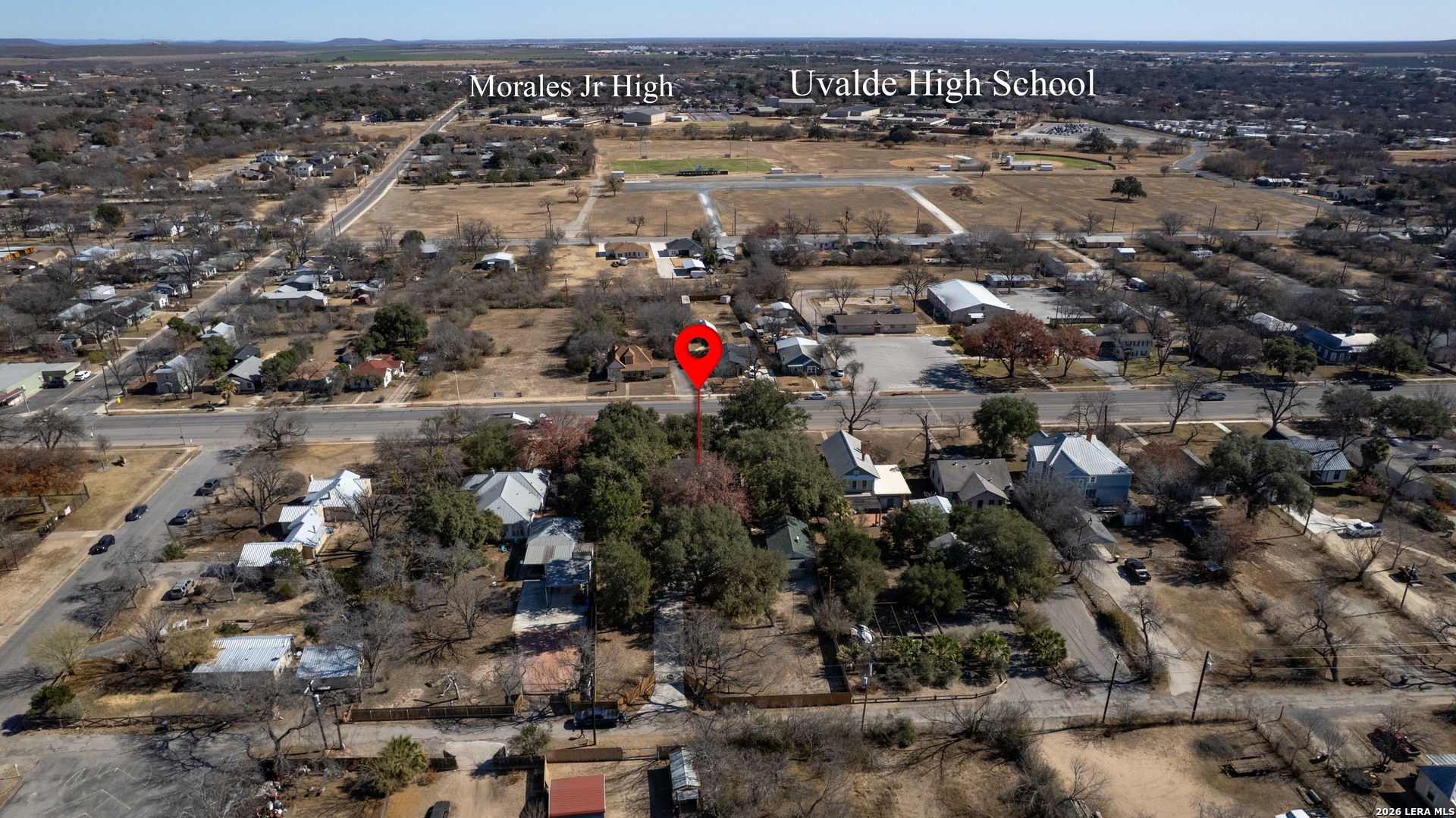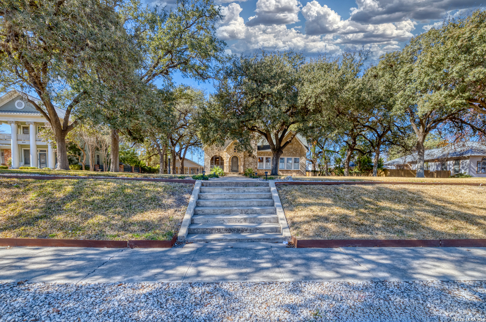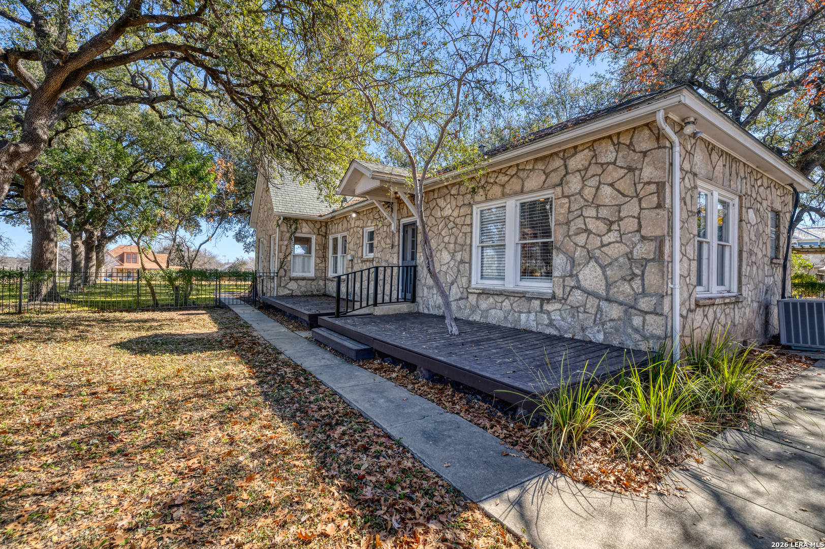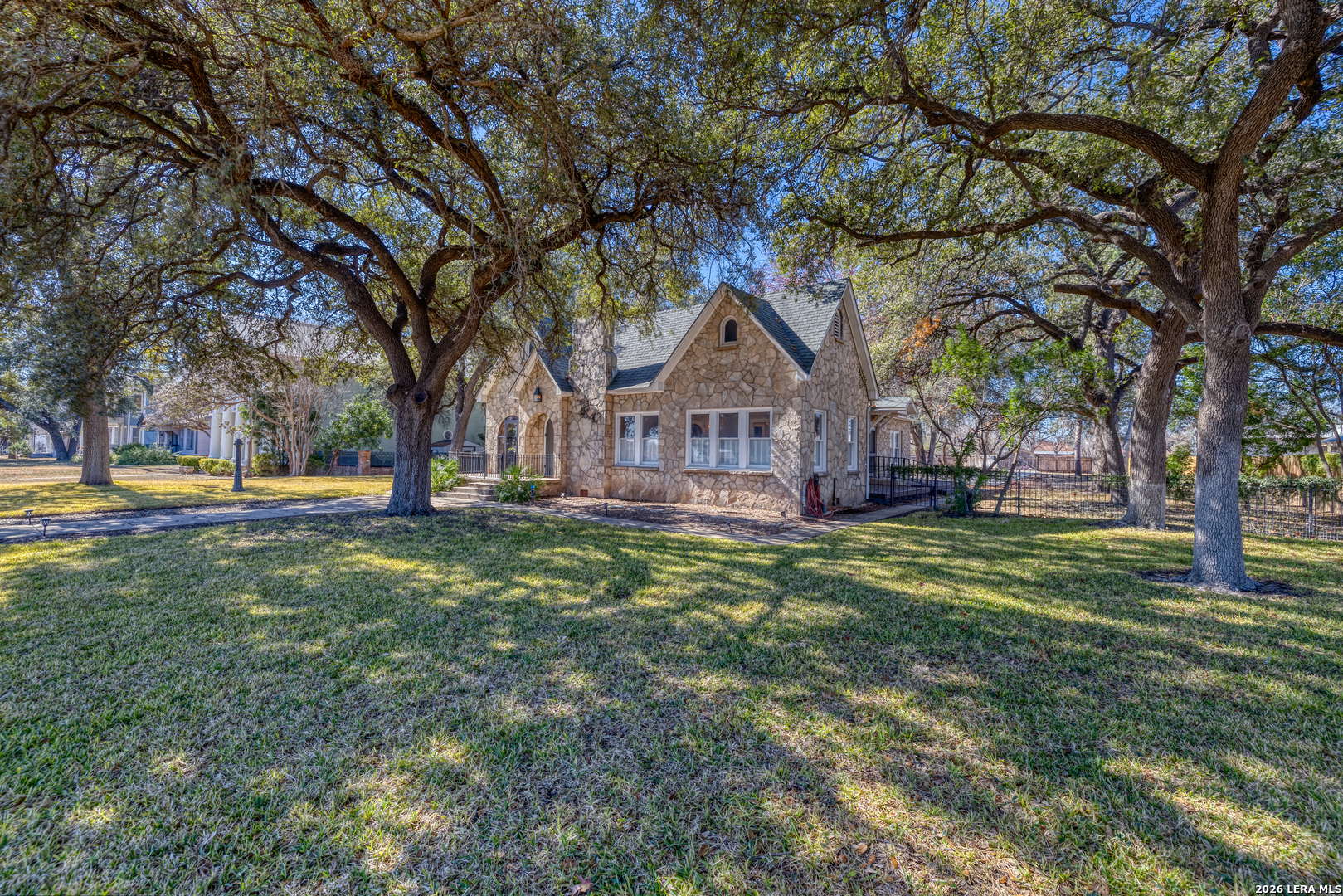 Welcome to a rare blend of timeless charm and modern comfort, centrally located in Uvalde and surrounded by mature trees that create a peaceful, park-like setting. Abundant windows fill the home with natural light, creating a warm and inviting atmosphere throughout. Multiple indoor and outdoor living spaces enhance everyday enjoyment. This home includes a glassed-in porch with a wood-accent ceiling and ceiling fans-perfect for morning coffee, an area for your plants, or a cozy reading nook-as well as side decks that offer additional places to relax and unwind. Inside, the home showcases rich character and thoughtful architectural details, including decorative ceilings in the kitchen and hallway, graceful arched doorways, and a designated dining room highlighted by a chandelier-ideal for holiday gatherings and sharing meals with loved ones. The kitchen blends style and functionality with a gas cooking stove, pot filler, beautiful backsplash, and stainless-steel appliances, including a refrigerator and dishwasher, while modern upgrades such as recessed and dimmable lighting add comfort and ambiance throughout the home. The primary suite serves as a private retreat, featuring a custom built-in closet and an ensuite bath with a walk-in shower and skylight. Bathrooms are thoughtfully appointed with soft-close vanity drawers and mirrors with built-in lighting, adding both convenience and sophistication. A stackable washer and dryer are conveniently located in the main home. Adding exceptional versatility, the property includes a private ADU complete with its own bathroom, kitchenette, mini-split system, and a separate washer and dryer-perfect for guests, multigenerational living, or income potential. Situated on an expansive 0.85-acre lot, the large fenced backyard provides ample space for entertaining, gardening, or letting your pets run and play. Additional features include gated alley access with coded entry, a spacious driveway, and a 2-car carport. Storage is abundant both inside and out with built-ins, a garden shed, and even your very own basement-a rare bonus feature. This one-of-a-kind home offers charm, flexibility, outdoor living, and modern convenience all in one exceptional property. From quiet mornings to meaningful gatherings, this home is ready for its new owner to make it their own. Schedule your showing today!