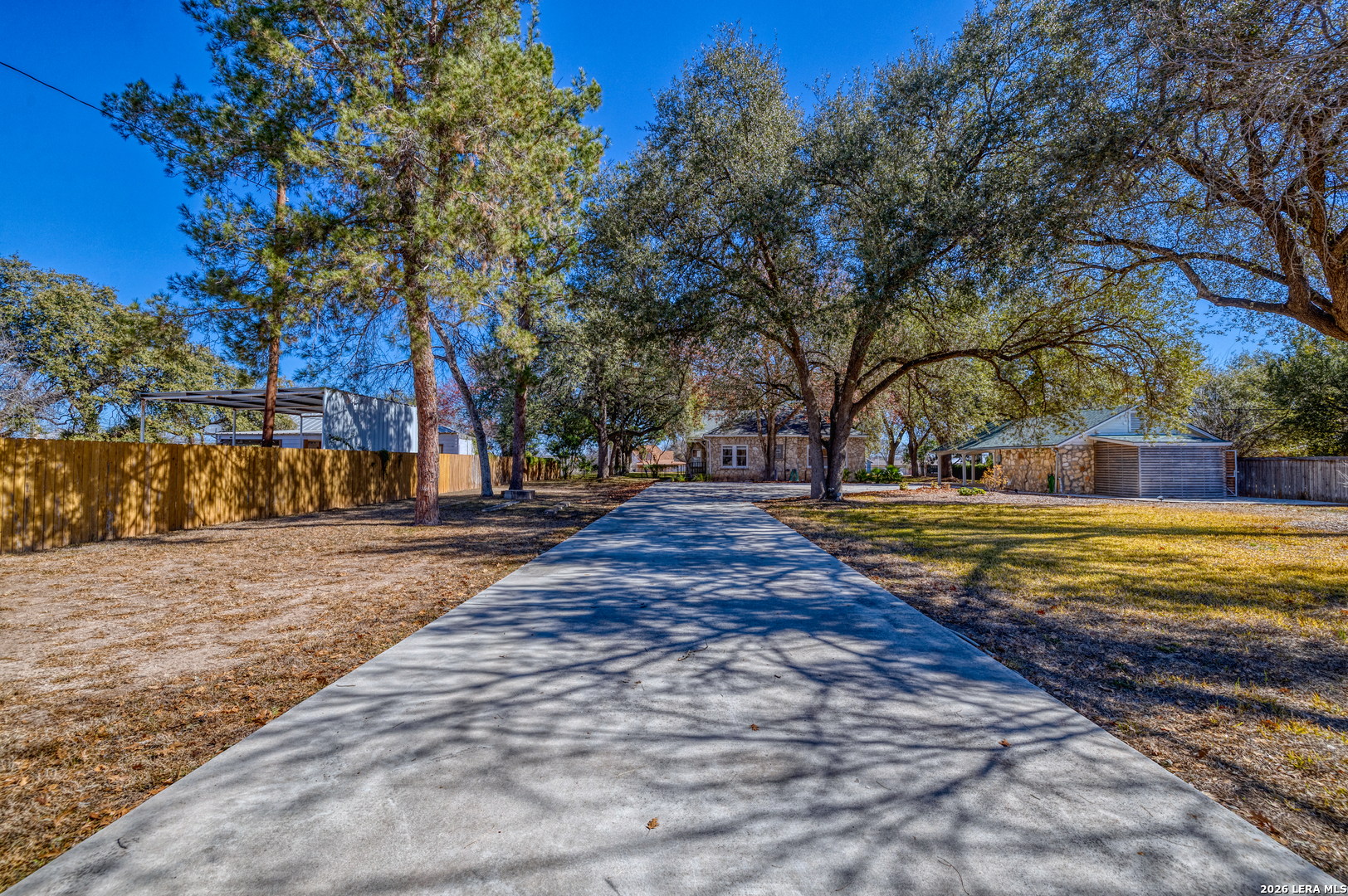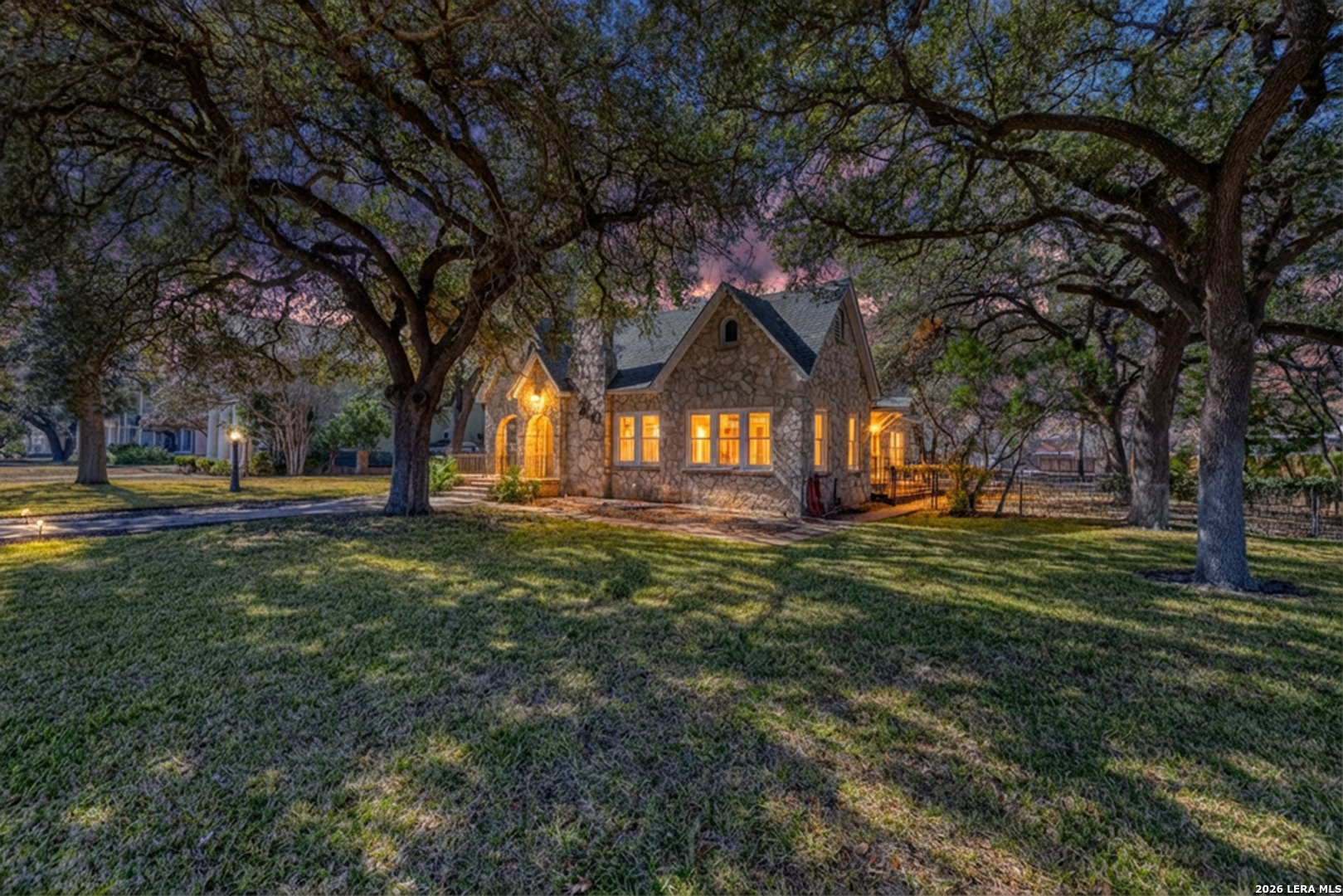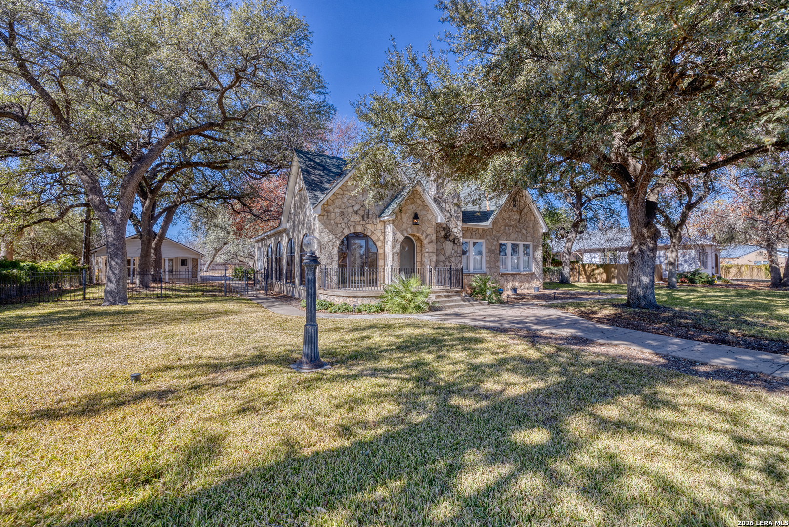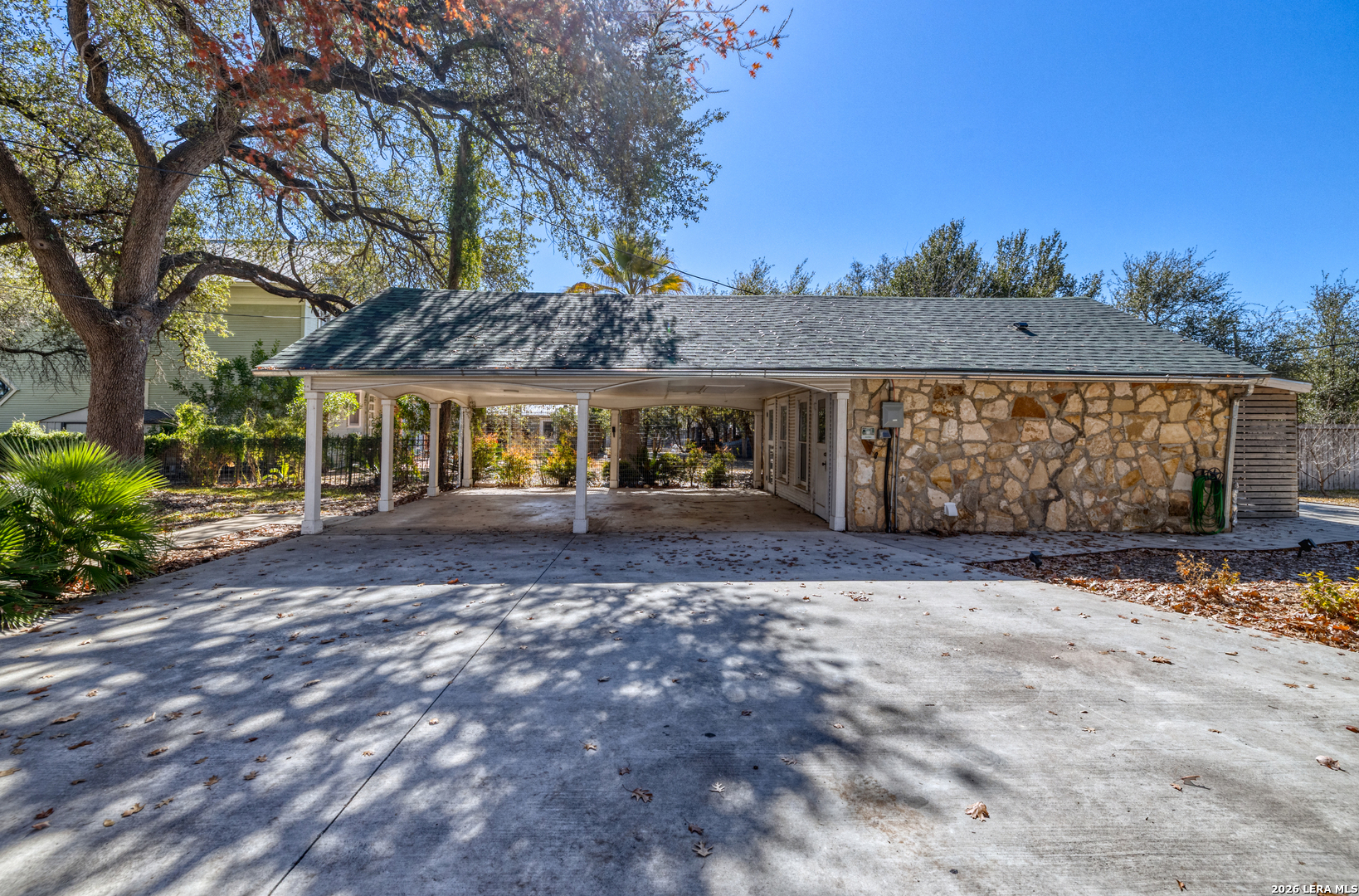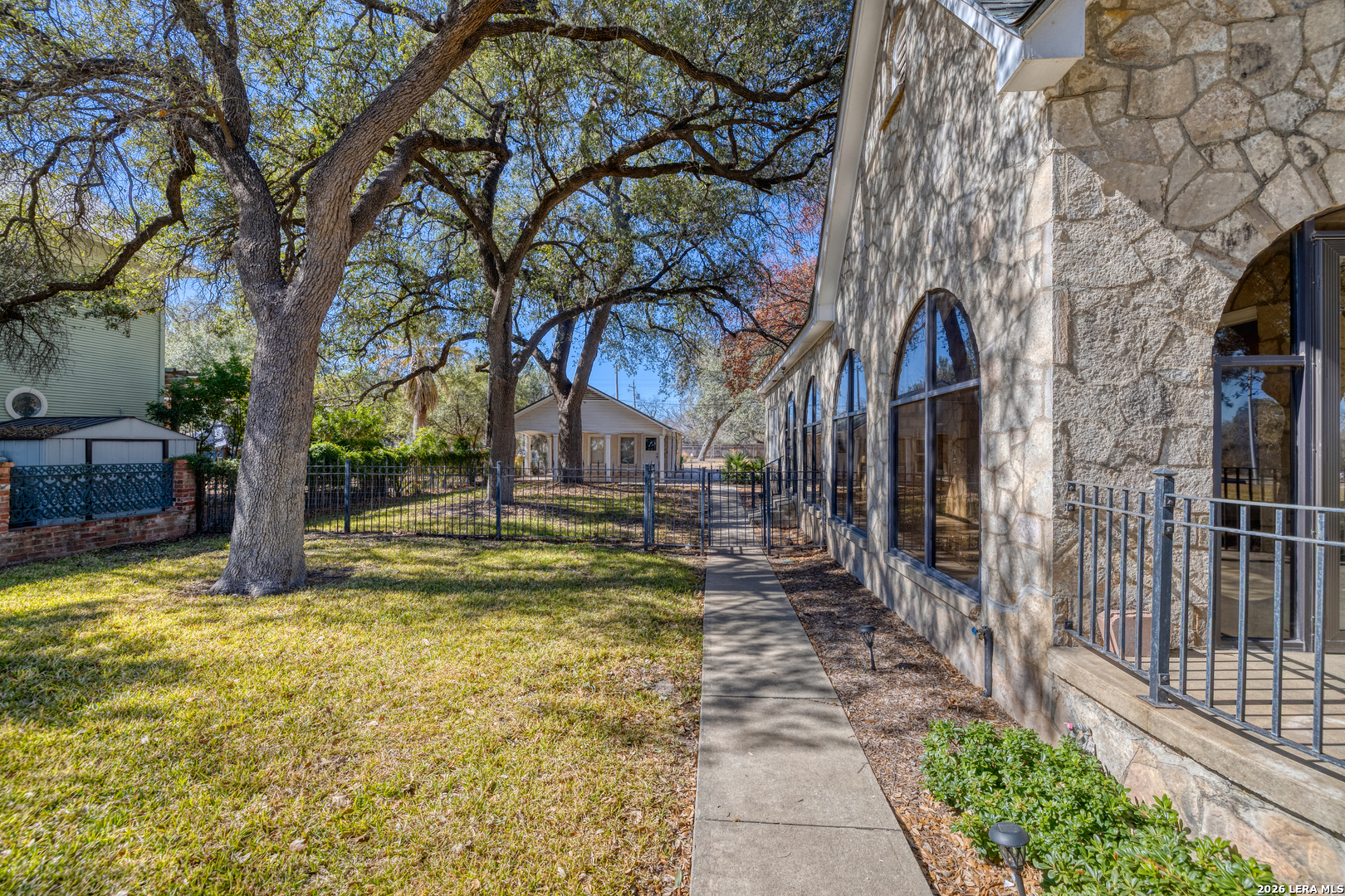 Welcome to a rare blend of timeless charm and modern comfort, centrally located in Uvalde and surrounded by mature trees that create a peaceful, park-like setting. Abundant windows fill the home with natural light, creating a warm and inviting atmosphere throughout. Multiple indoor and outdoor living spaces enhance everyday enjoyment. This home includes a glassed-in porch with a wood-accent ceiling and ceiling fans-perfect for morning coffee, an area for your plants, or a cozy reading nook-as well as side decks that offer additional places to relax and unwind. Inside, the home showcases rich character and thoughtful architectural details, including decorative ceilings in the kitchen and hallway, graceful arched doorways, and a designated dining room highlighted by a chandelier-ideal for holiday gatherings and sharing meals with loved ones. The kitchen blends style and functionality with a gas cooking stove, pot filler, beautiful backsplash, and stainless-steel appliances, including a refrigerator and dishwasher, while modern upgrades such as recessed and dimmable lighting add comfort and ambiance throughout the home. The primary suite serves as a private retreat, featuring a custom built-in closet and an ensuite bath with a walk-in shower and skylight. Bathrooms are thoughtfully appointed with soft-close vanity drawers and mirrors with built-in lighting, adding both convenience and sophistication. A stackable washer and dryer are conveniently located in the main home. Adding exceptional versatility, the property includes a private ADU complete with its own bathroom, kitchenette, mini-split system, and a separate washer and dryer-perfect for guests, multigenerational living, or income potential. Situated on an expansive 0.85-acre lot, the large fenced backyard provides ample space for entertaining, gardening, or letting your pets run and play. Additional features include gated alley access with coded entry, a spacious driveway, and a 2-car carport. Storage is abundant both inside and out with built-ins, a garden shed, and even your very own basement-a rare bonus feature. This one-of-a-kind home offers charm, flexibility, outdoor living, and modern convenience all in one exceptional property. From quiet mornings to meaningful gatherings, this home is ready for its new owner to make it their own. Schedule your showing today!