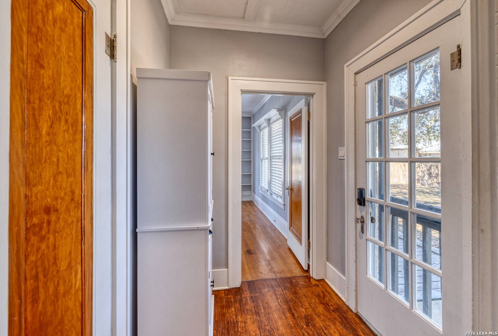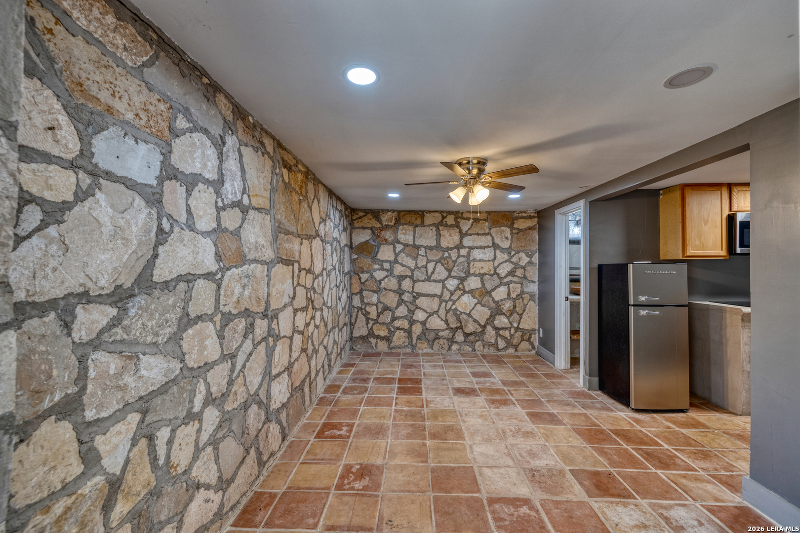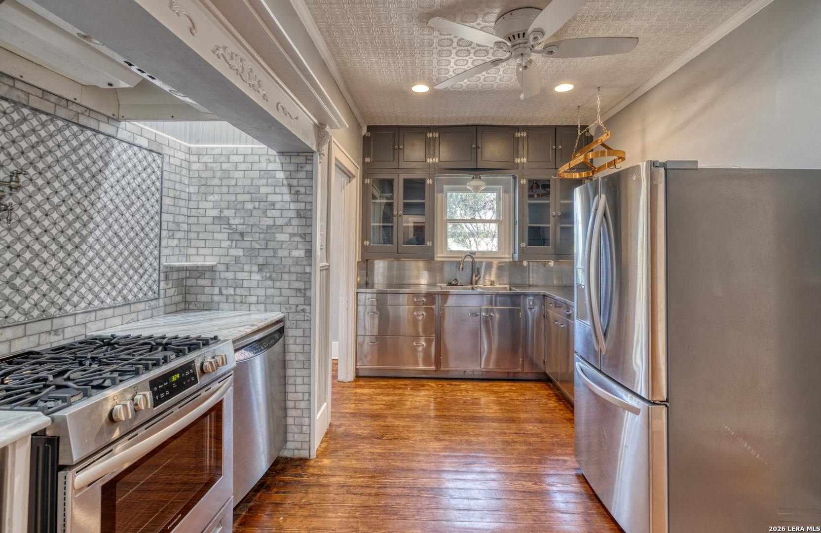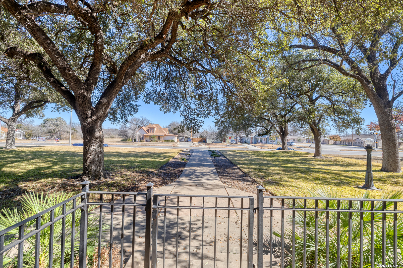 Welcome to a rare blend of timeless charm and modern comfort, centrally located in Uvalde and surrounded by mature trees that create a peaceful, park-like setting. Abundant windows fill the home with natural light, creating a warm and inviting atmosphere throughout. Multiple indoor and outdoor living spaces enhance everyday enjoyment. This home includes a glassed-in porch with a wood-accent ceiling and ceiling fans-perfect for morning coffee, an area for your plants, or a cozy reading nook-as well as side decks that offer additional places to relax and unwind. Inside, the home showcases rich character and thoughtful architectural details, including decorative ceilings in the kitchen and hallway, graceful arched doorways, and a designated dining room highlighted by a chandelier-ideal for holiday gatherings and sharing meals with loved ones. The kitchen blends style and functionality with a gas cooking stove, pot filler, beautiful backsplash, and stainless-steel appliances, including a refrigerator and dishwasher, while modern upgrades such as recessed and dimmable lighting add comfort and ambiance throughout the home. The primary suite serves as a private retreat, featuring a custom built-in closet and an ensuite bath with a walk-in shower and skylight. Bathrooms are thoughtfully appointed with soft-close vanity drawers and mirrors with built-in lighting, adding both convenience and sophistication. A stackable washer and dryer are conveniently located in the main home. Adding exceptional versatility, the property includes a private ADU complete with its own bathroom, kitchenette, mini-split system, and a separate washer and dryer-perfect for guests, multigenerational living, or income potential. Situated on an expansive 0.85-acre lot, the large fenced backyard provides ample space for entertaining, gardening, or letting your pets run and play. Additional features include gated alley access with coded entry, a spacious driveway, and a 2-car carport. Storage is abundant both inside and out with built-ins, a garden shed, and even your very own basement-a rare bonus feature. This one-of-a-kind home offers charm, flexibility, outdoor living, and modern convenience all in one exceptional property. From quiet mornings to meaningful gatherings, this home is ready for its new owner to make it their own. Schedule your showing today!