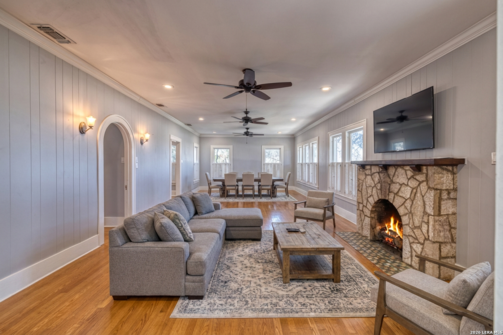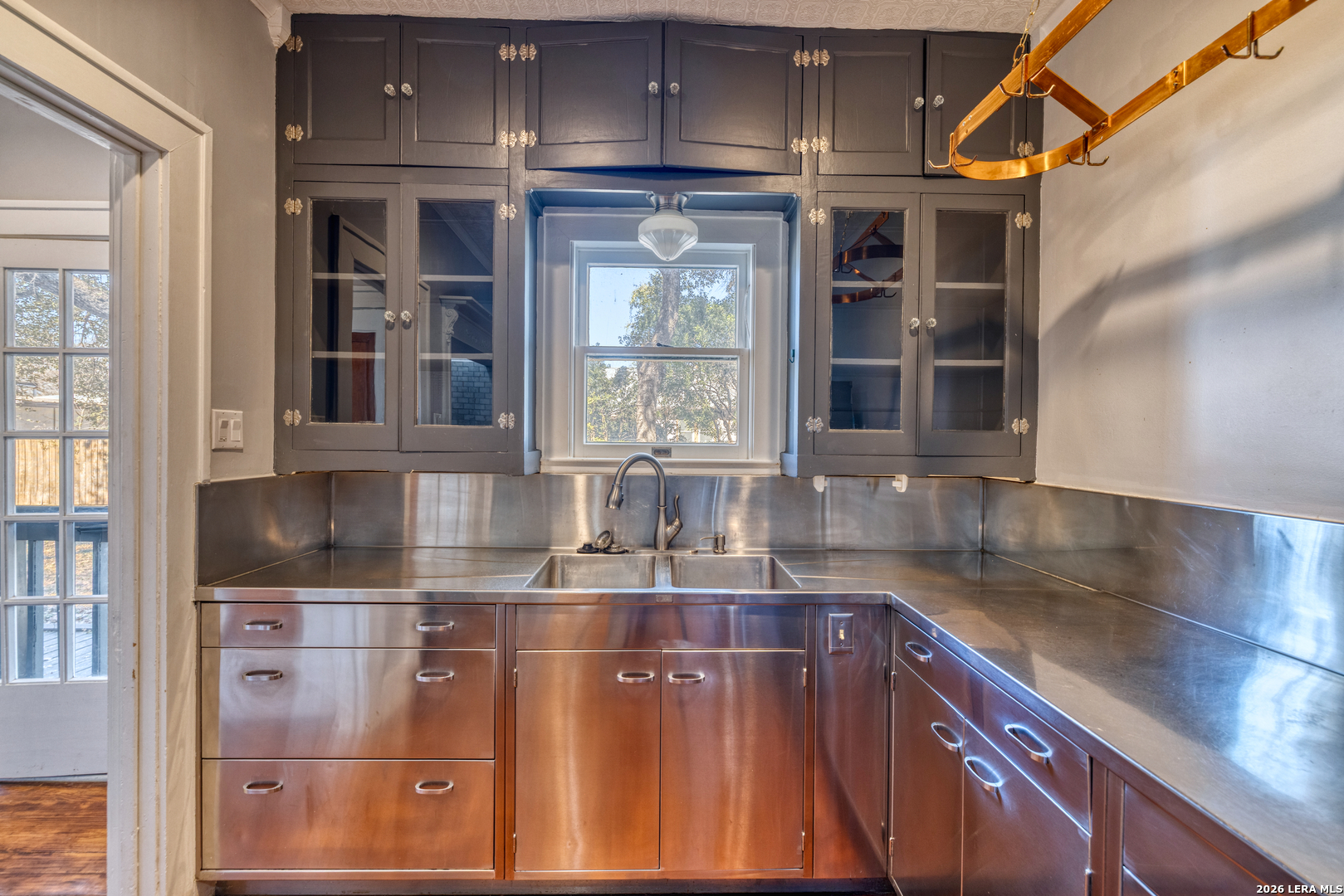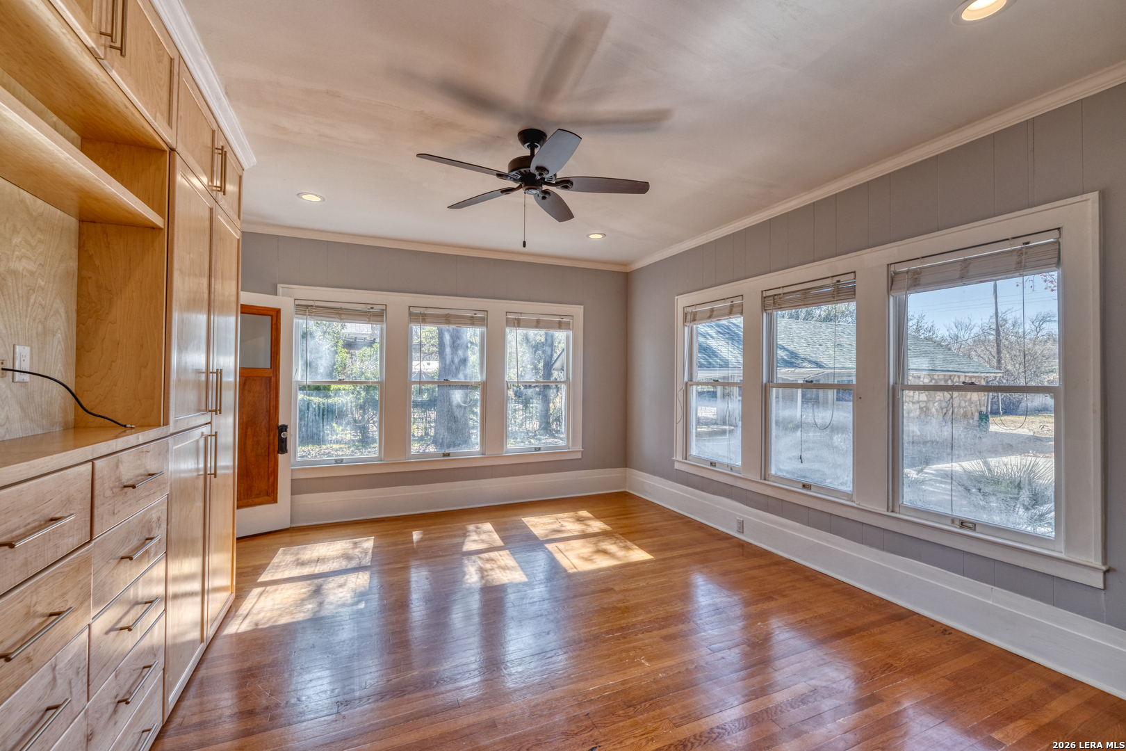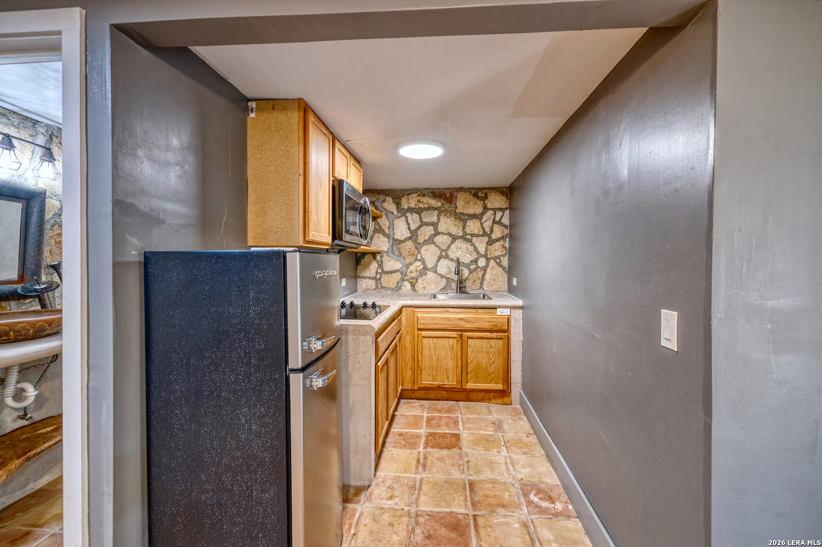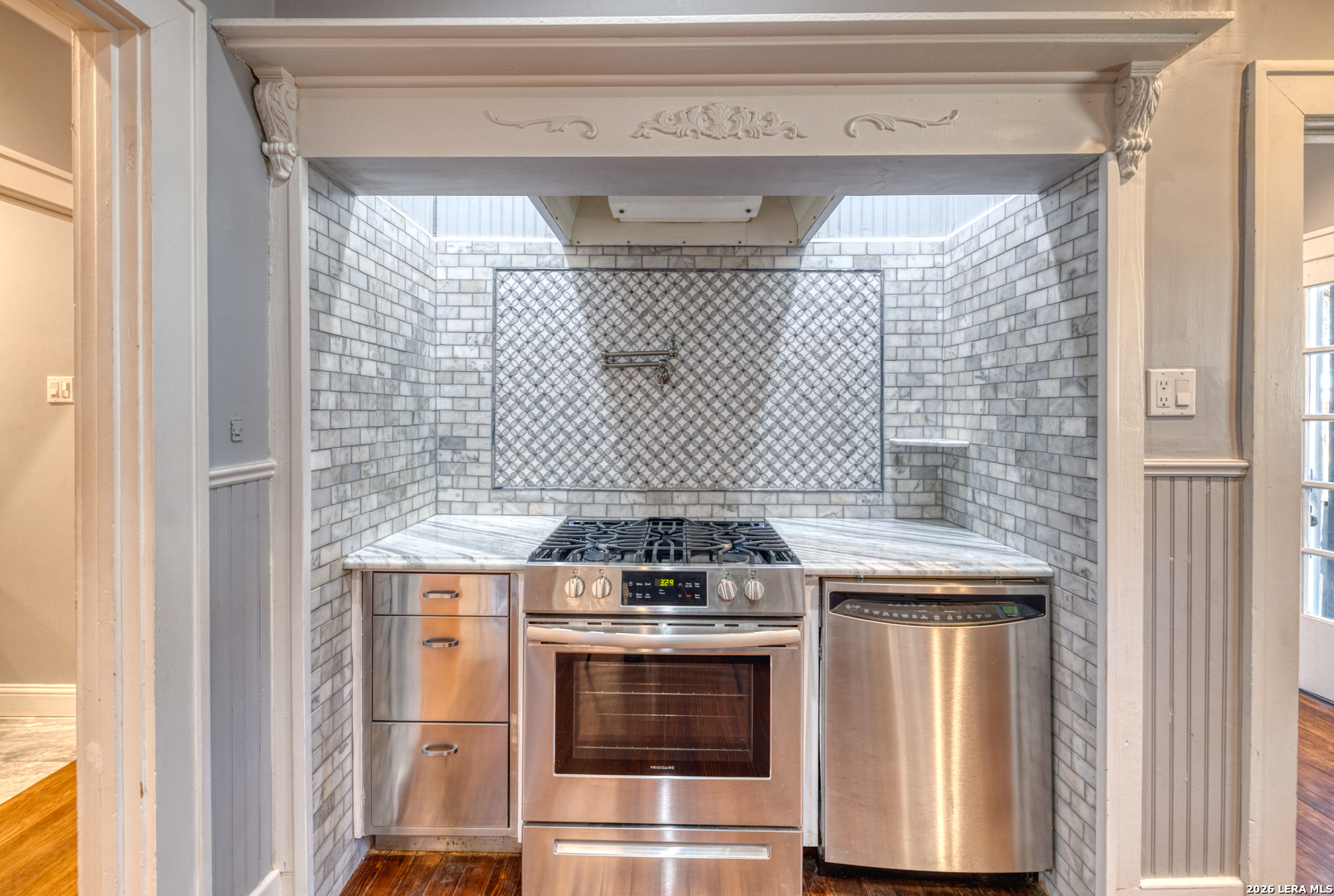 Welcome to a rare blend of timeless charm and modern comfort, centrally located in Uvalde and surrounded by mature trees that create a peaceful, park-like setting. Abundant windows fill the home with natural light, creating a warm and inviting atmosphere throughout. Multiple indoor and outdoor living spaces enhance everyday enjoyment. This home includes a glassed-in porch with a wood-accent ceiling and ceiling fans-perfect for morning coffee, an area for your plants, or a cozy reading nook-as well as side decks that offer additional places to relax and unwind. Inside, the home showcases rich character and thoughtful architectural details, including decorative ceilings in the kitchen and hallway, graceful arched doorways, and a designated dining room highlighted by a chandelier-ideal for holiday gatherings and sharing meals with loved ones. The kitchen blends style and functionality with a gas cooking stove, pot filler, beautiful backsplash, and stainless-steel appliances, including a refrigerator and dishwasher, while modern upgrades such as recessed and dimmable lighting add comfort and ambiance throughout the home. The primary suite serves as a private retreat, featuring a custom built-in closet and an ensuite bath with a walk-in shower and skylight. Bathrooms are thoughtfully appointed with soft-close vanity drawers and mirrors with built-in lighting, adding both convenience and sophistication. A stackable washer and dryer are conveniently located in the main home. Adding exceptional versatility, the property includes a private ADU complete with its own bathroom, kitchenette, mini-split system, and a separate washer and dryer-perfect for guests, multigenerational living, or income potential. Situated on an expansive 0.85-acre lot, the large fenced backyard provides ample space for entertaining, gardening, or letting your pets run and play. Additional features include gated alley access with coded entry, a spacious driveway, and a 2-car carport. Storage is abundant both inside and out with built-ins, a garden shed, and even your very own basement-a rare bonus feature. This one-of-a-kind home offers charm, flexibility, outdoor living, and modern convenience all in one exceptional property. From quiet mornings to meaningful gatherings, this home is ready for its new owner to make it their own. Schedule your showing today!