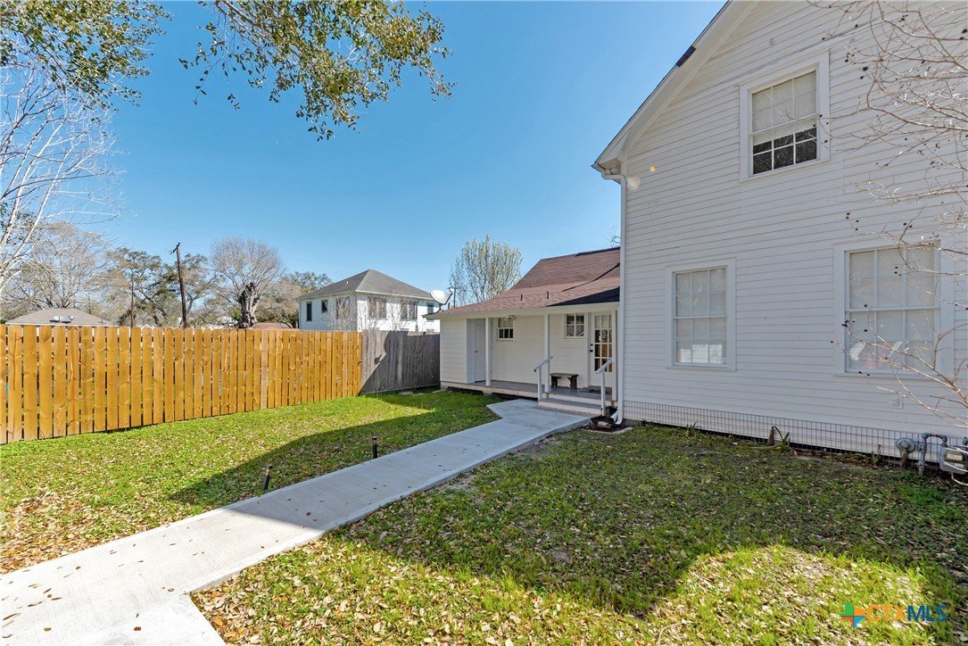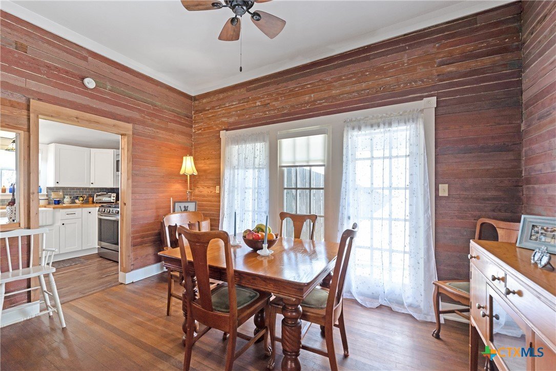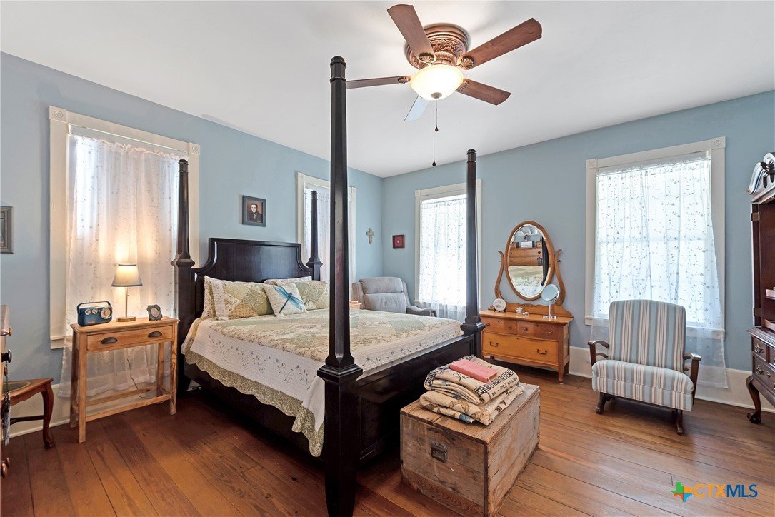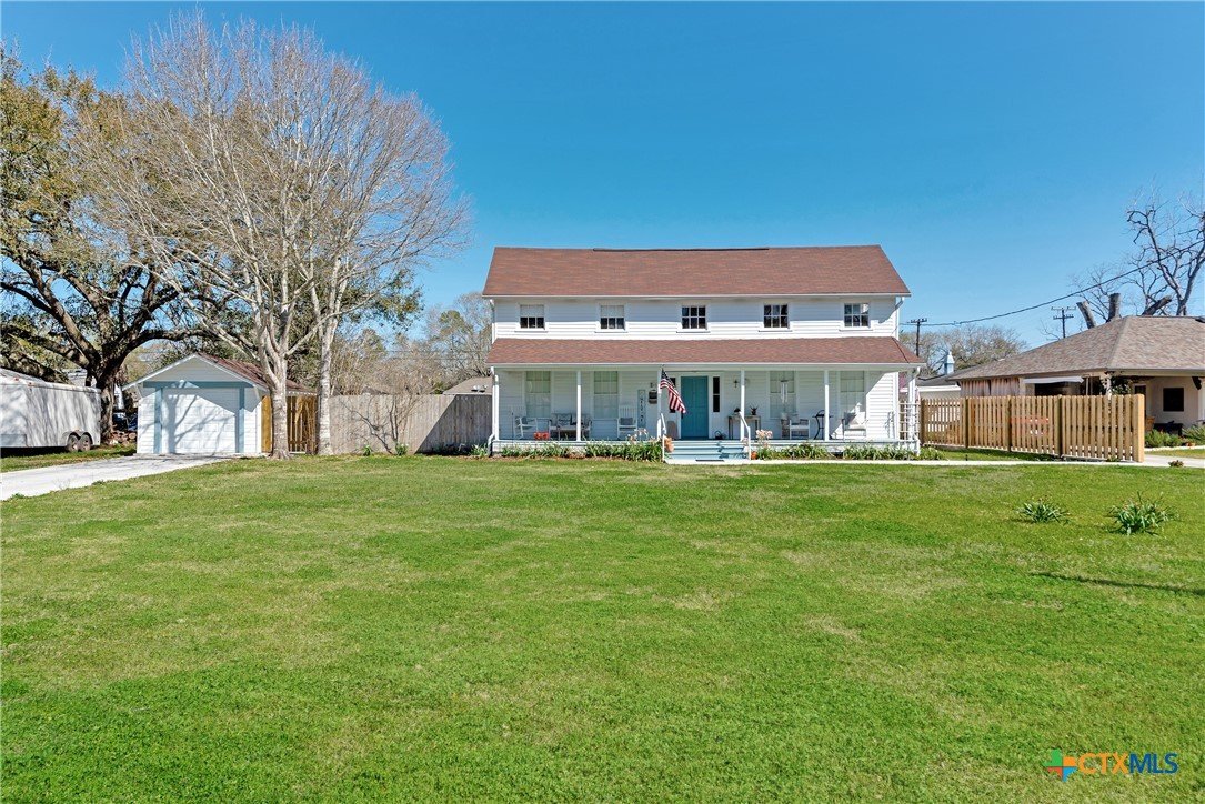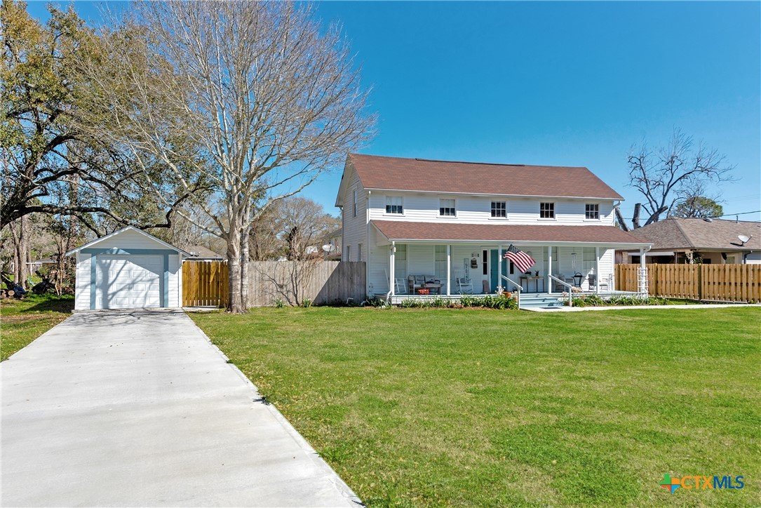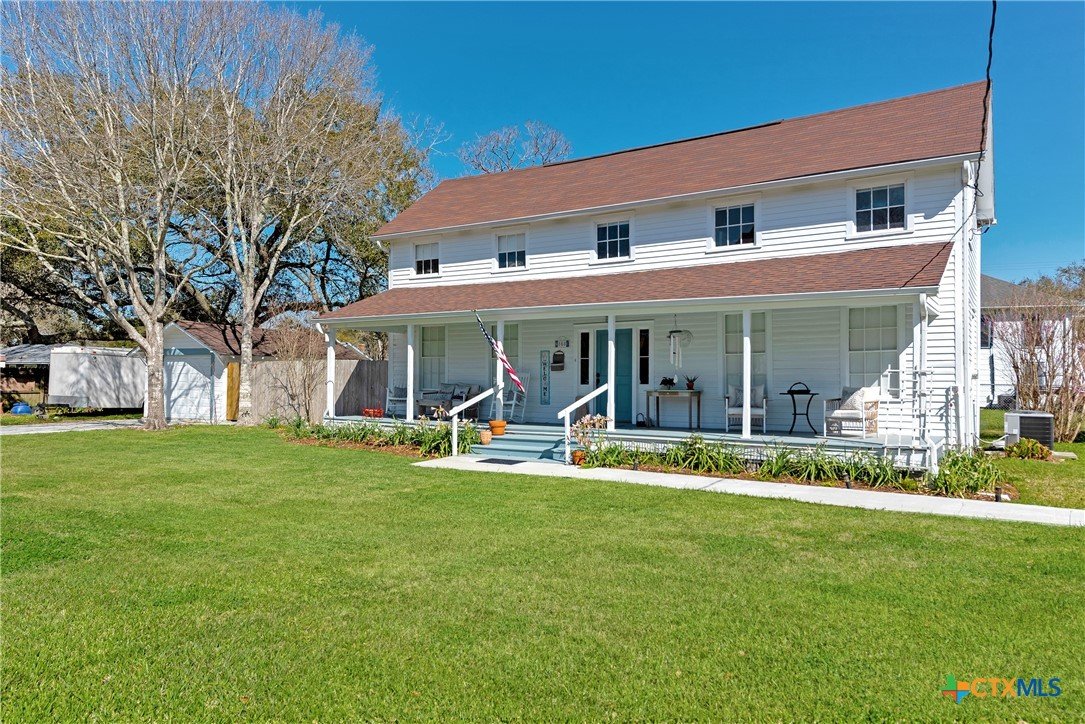 Charming historic farmhouse style home in El Campo with roots dating back to the late 1800s. Owned by the same family since 1906, this property has upgraded plumbing, electrical, and HVAC systems. Featuring high ceilings, original hardwood floors in most rooms, Beaded board and Shiplap walls, and a spacious front porch with two side porches. The main level includes the primary bedroom and bath, a guest bedroom with half bath, while the second level offers two bedrooms, a full bath, and a additional room. This style is widely appreciated today for its classic and welcoming appearance. Don't miss the unique details and character of this well-maintained home steeped in history.