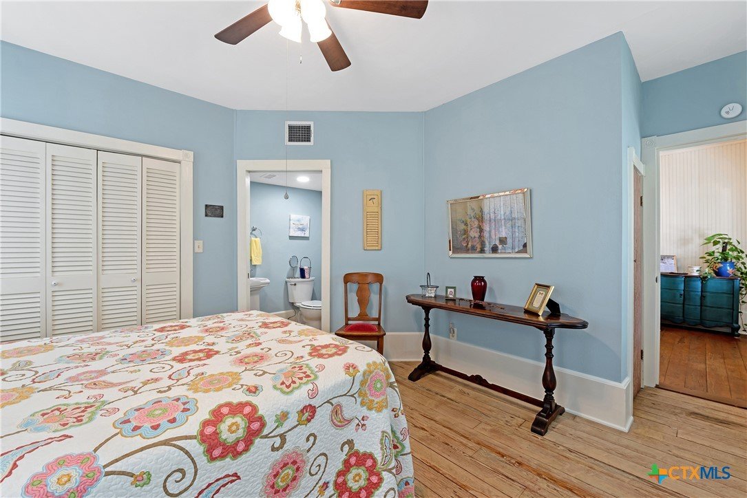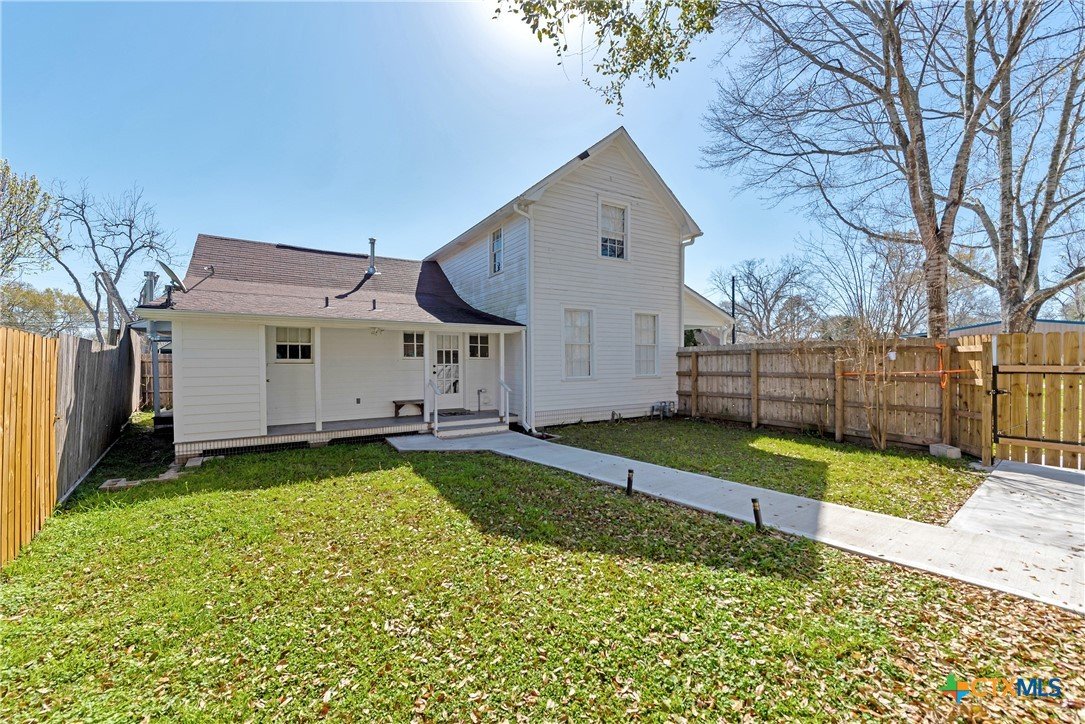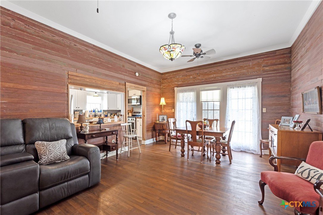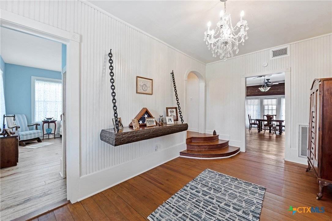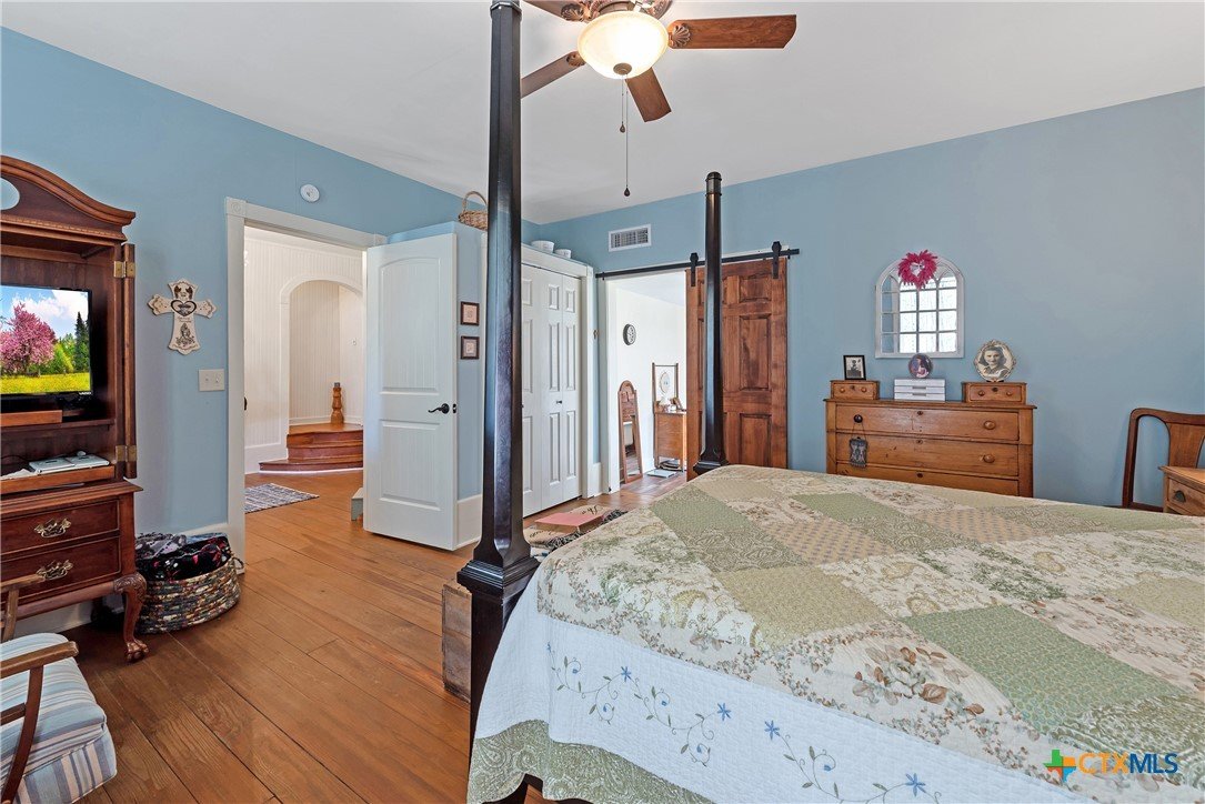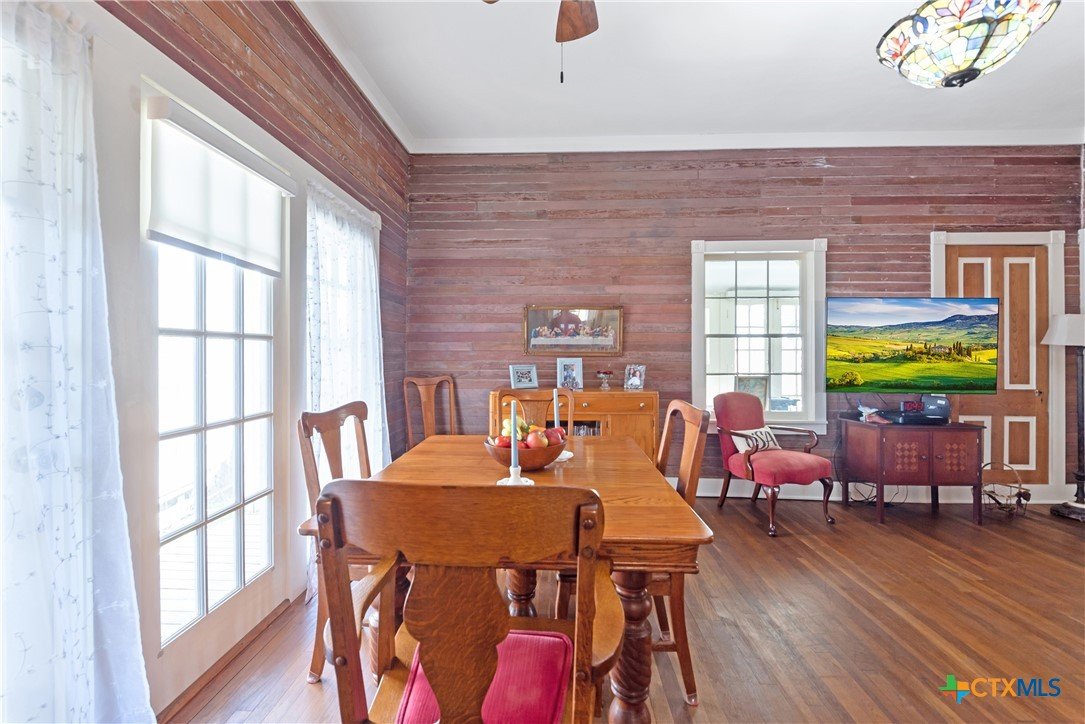 Charming historic farmhouse style home in El Campo with roots dating back to the late 1800s. Owned by the same family since 1906, this property has upgraded plumbing, electrical, and HVAC systems. Featuring high ceilings, original hardwood floors in most rooms, Beaded board and Shiplap walls, and a spacious front porch with two side porches. The main level includes the primary bedroom and bath, a guest bedroom with half bath, while the second level offers two bedrooms, a full bath, and a additional room. This style is widely appreciated today for its classic and welcoming appearance. Don't miss the unique details and character of this well-maintained home steeped in history.