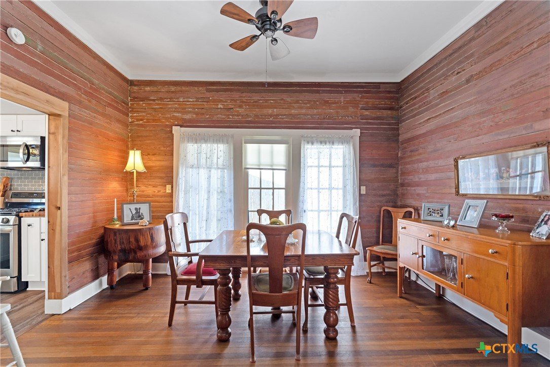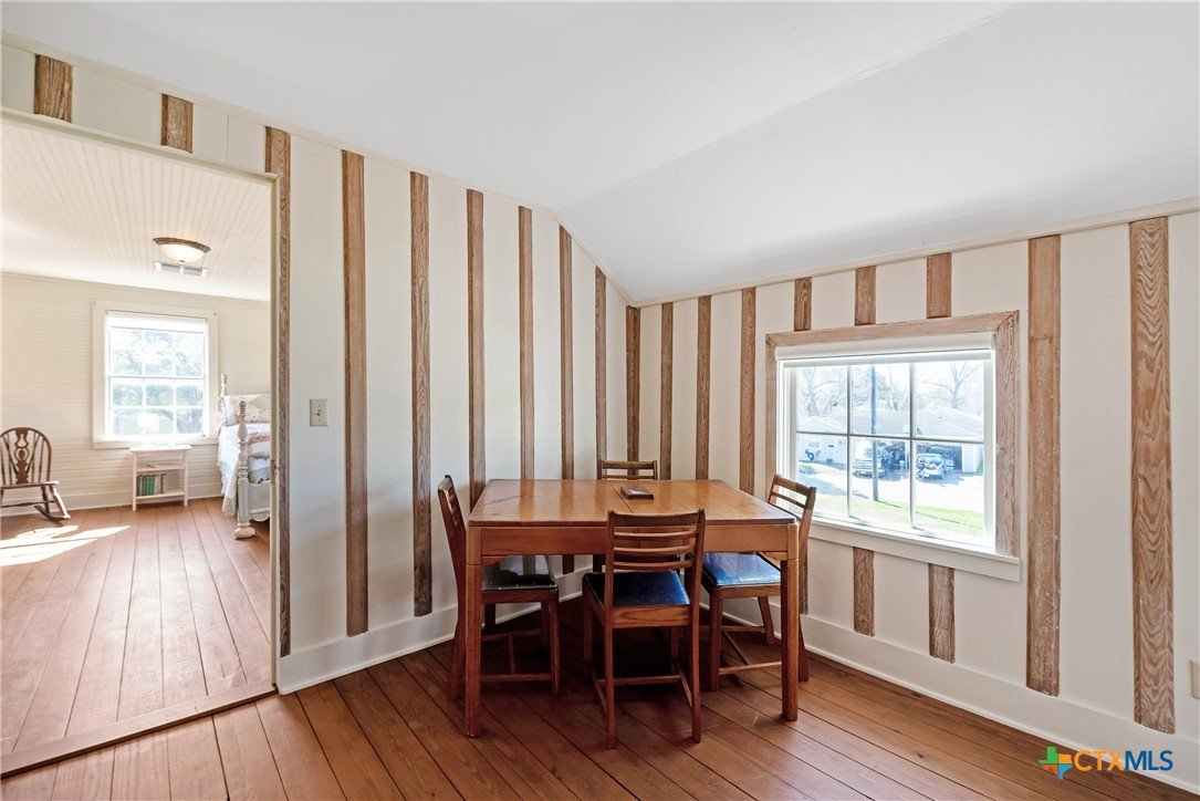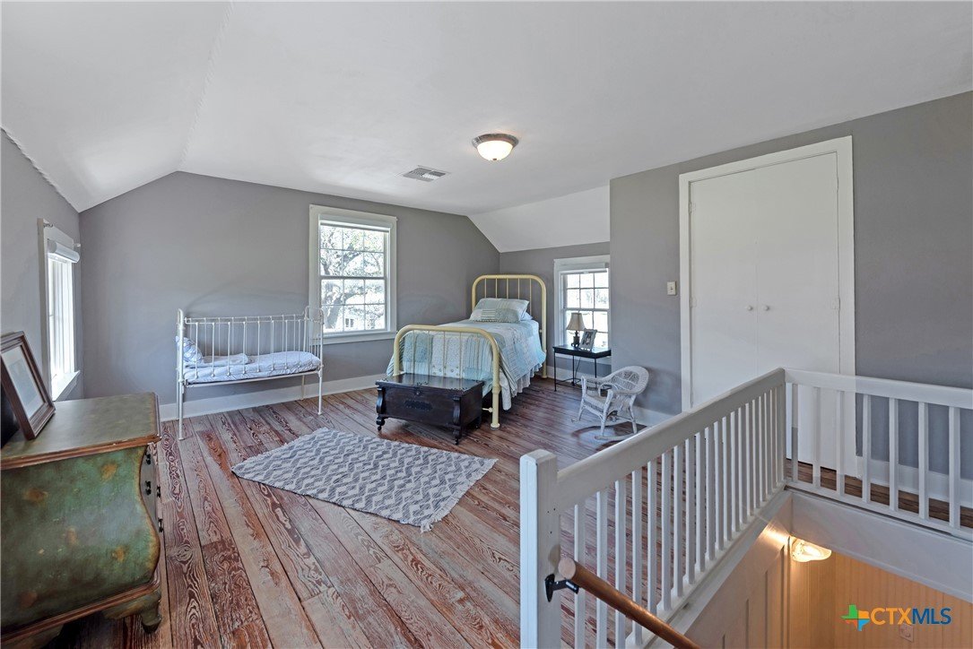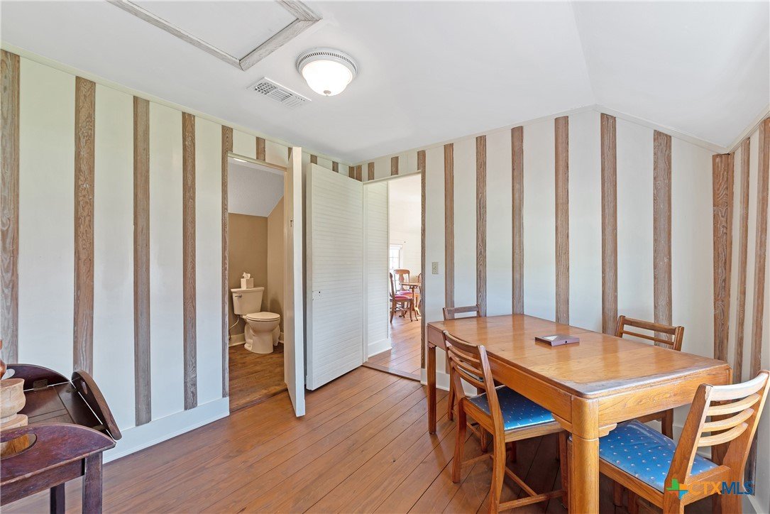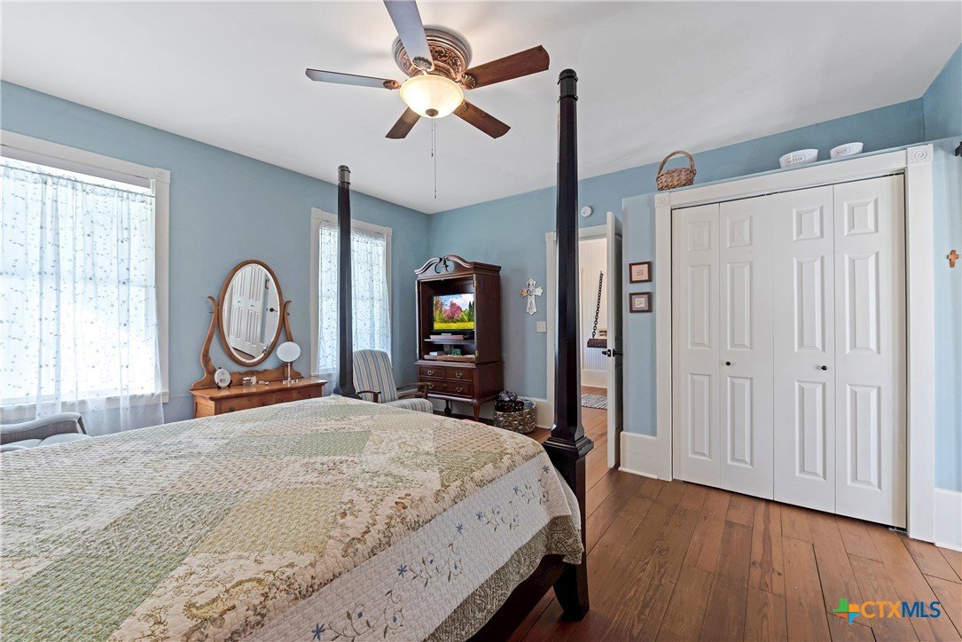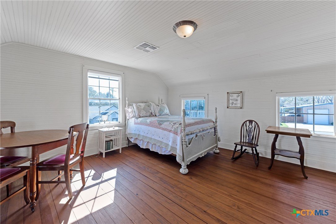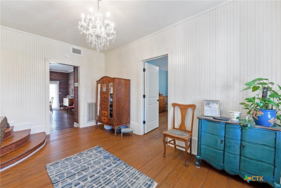Charming historic farmhouse style home in El Campo with roots dating back to the late 1800s. Owned by the same family since 1906, this property has upgraded plumbing, electrical, and HVAC systems. Featuring high ceilings, original hardwood floors in most rooms, Beaded board and Shiplap walls, and a spacious front porch with two side porches. The main level includes the primary bedroom and bath, a guest bedroom with half bath, while the second level offers two bedrooms, a full bath, and a additional room. This style is widely appreciated today for its classic and welcoming appearance. Don't miss the unique details and character of this well-maintained home steeped in history.