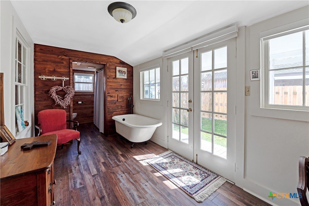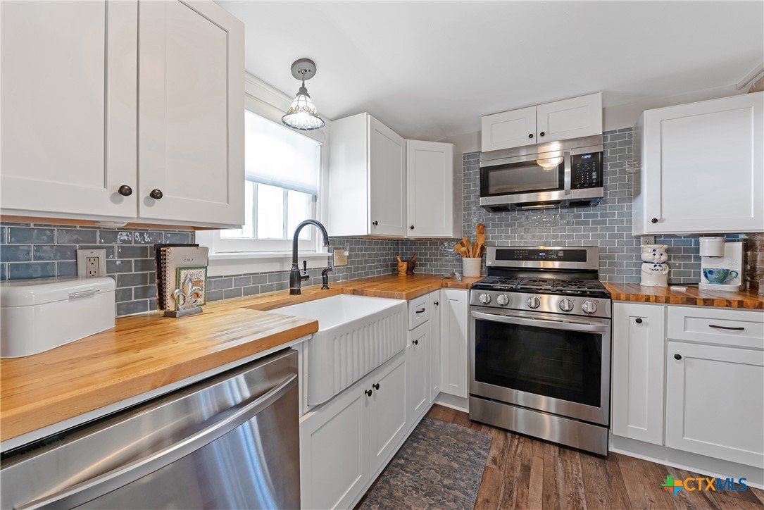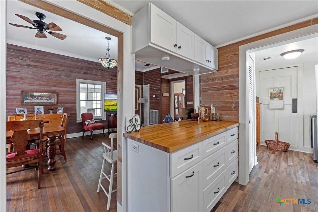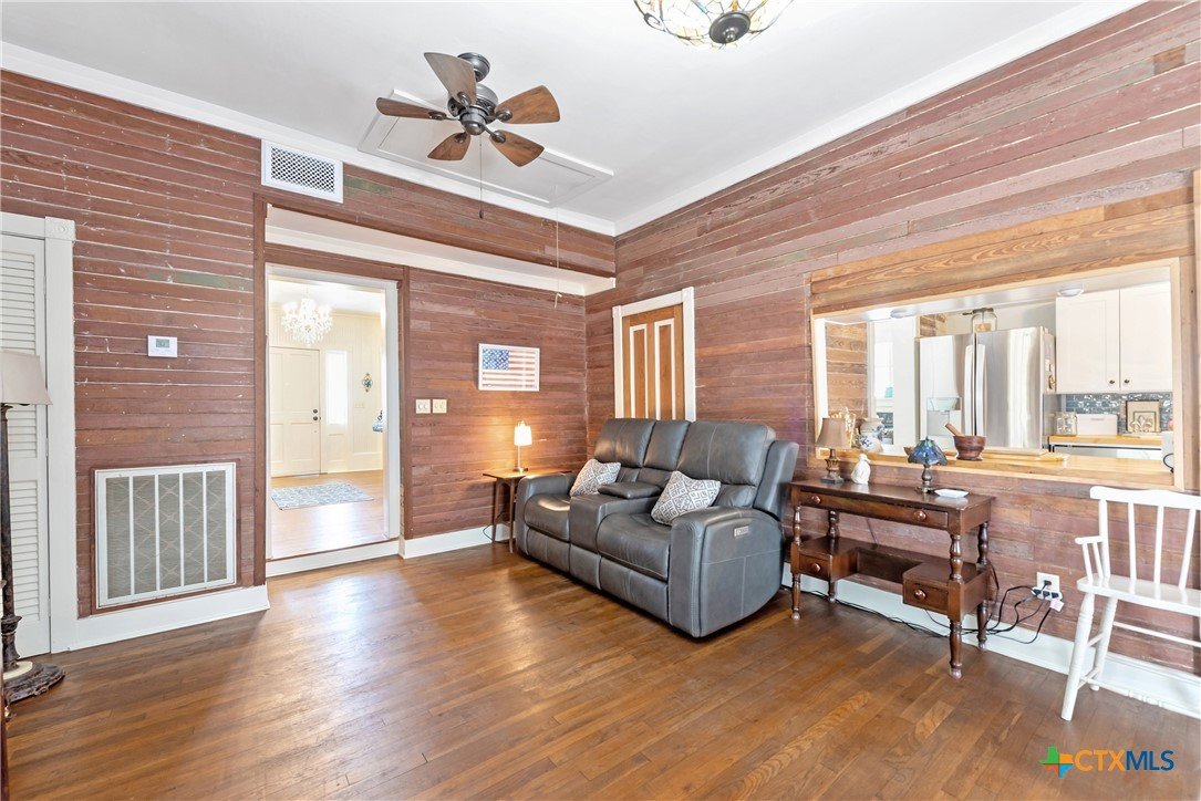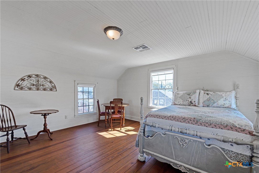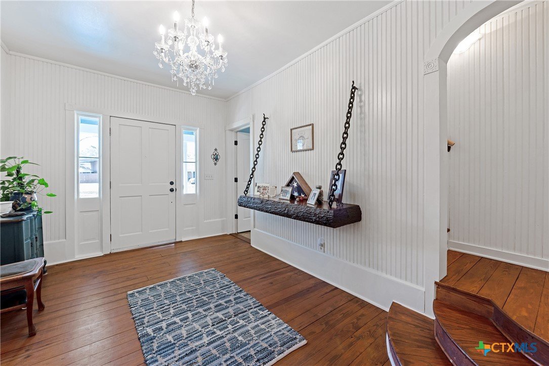 Charming historic farmhouse style home in El Campo with roots dating back to the late 1800s. Owned by the same family since 1906, this property has upgraded plumbing, electrical, and HVAC systems. Featuring high ceilings, original hardwood floors in most rooms, Beaded board and Shiplap walls, and a spacious front porch with two side porches. The main level includes the primary bedroom and bath, a guest bedroom with half bath, while the second level offers two bedrooms, a full bath, and a additional room. This style is widely appreciated today for its classic and welcoming appearance. Don't miss the unique details and character of this well-maintained home steeped in history.