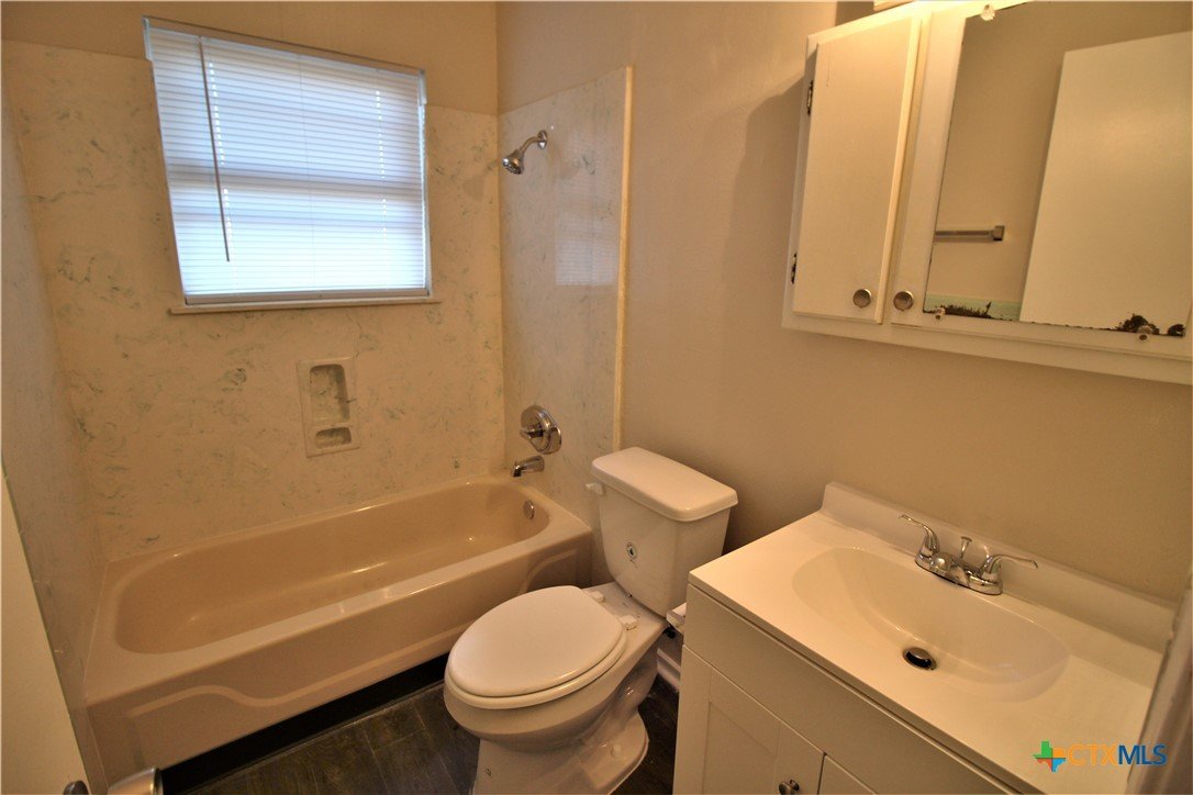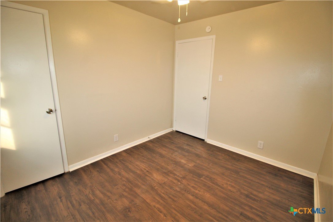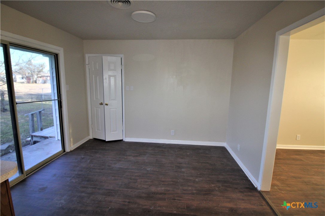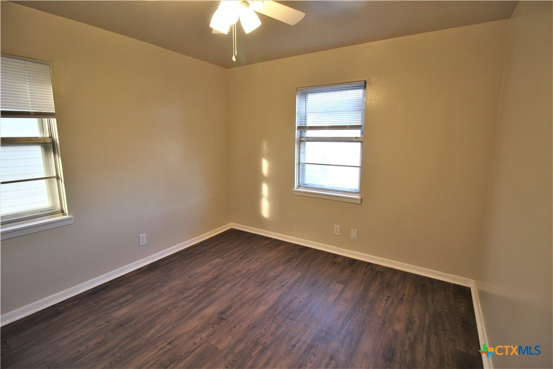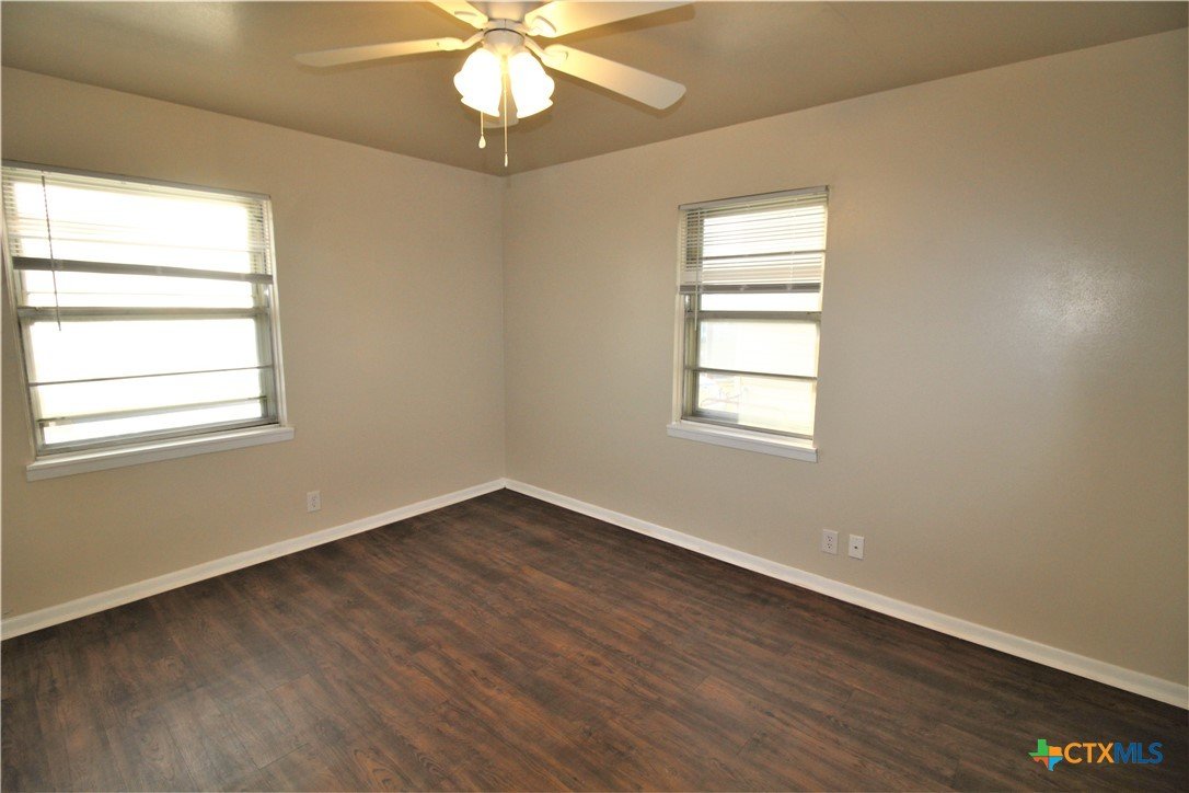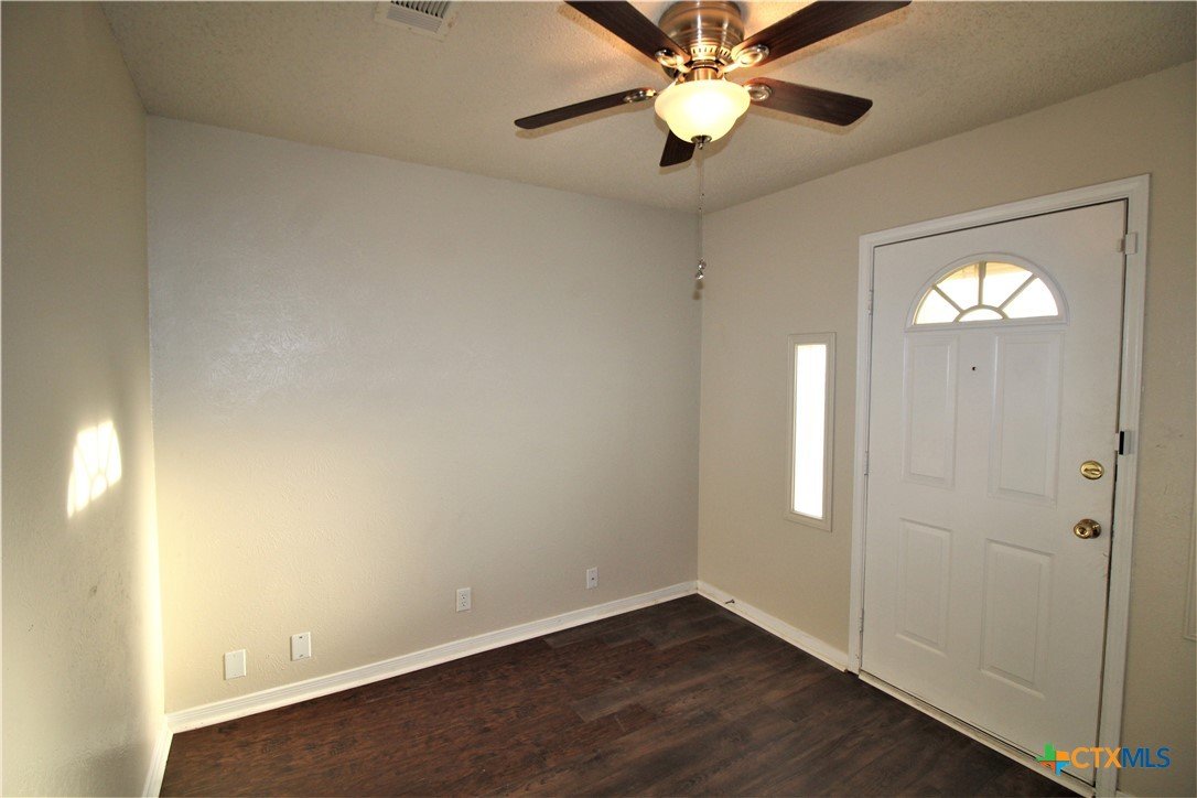 This is a charming 3 bedroom, 2 bath home with a flex room. The home has luxury vinyl plank flooring throughout, kitchen counter tops and backsplash resurfaced, and other noticeable renovations throughout. Upon entering the home you will walk into a small flex room that can be an office/ play room / cozy reading room. The next room is the main living area that also has an exterior door to the front yard. Adjacent to this room is the kitchen and dining. The kitchen has black and stainless appliances to include fridge and GAS stove. The dining area is shared with the kitchen but offers a great view into the backyard through the sliding glass door and is spacious for a large table setting. Through the double doors in the kitchen/dining is the utility room and a full bathroom. Convenient so guests do not have to go down the hall by the bedrooms. This bathroom has a double sink vanity, a vast amount of storage, shower/tub surround, and a privacy area for the toilet. Not to mention full size washer and dryer connections with additional cabinet space and there is an exterior door to the backyard in this area as well. Through the main living area is a door that leads to all of the bedrooms, the other full bathroom, and a large linen/storage closet. The 3 large bedrooms have ample closet space in each as well as ceiling fans. The full bathroom is shared but has a single sink and shower/tub surround. At the end of the hall is additional cabinet storage. This home is not going to last long, schedule your showing while you can!