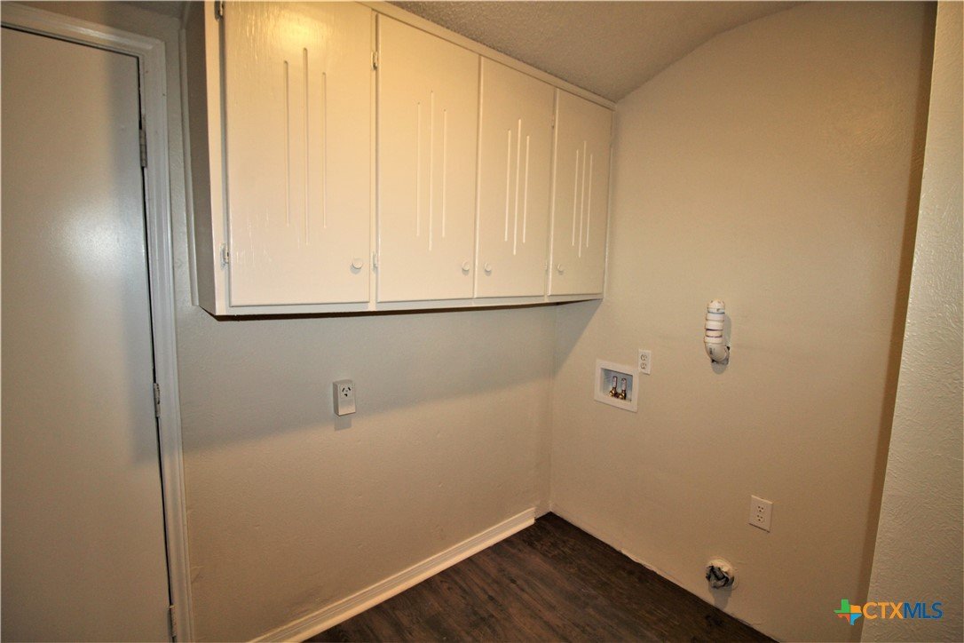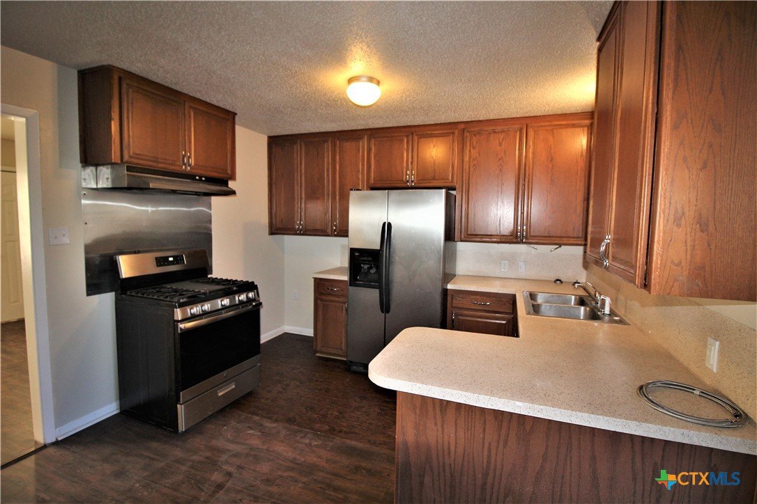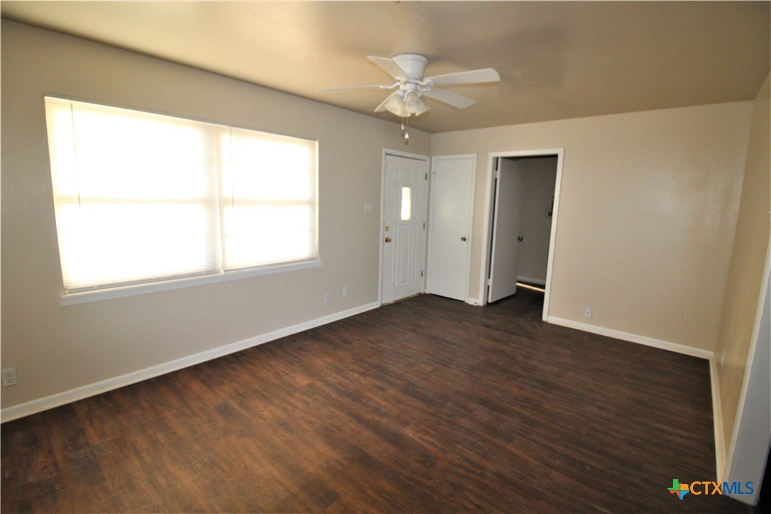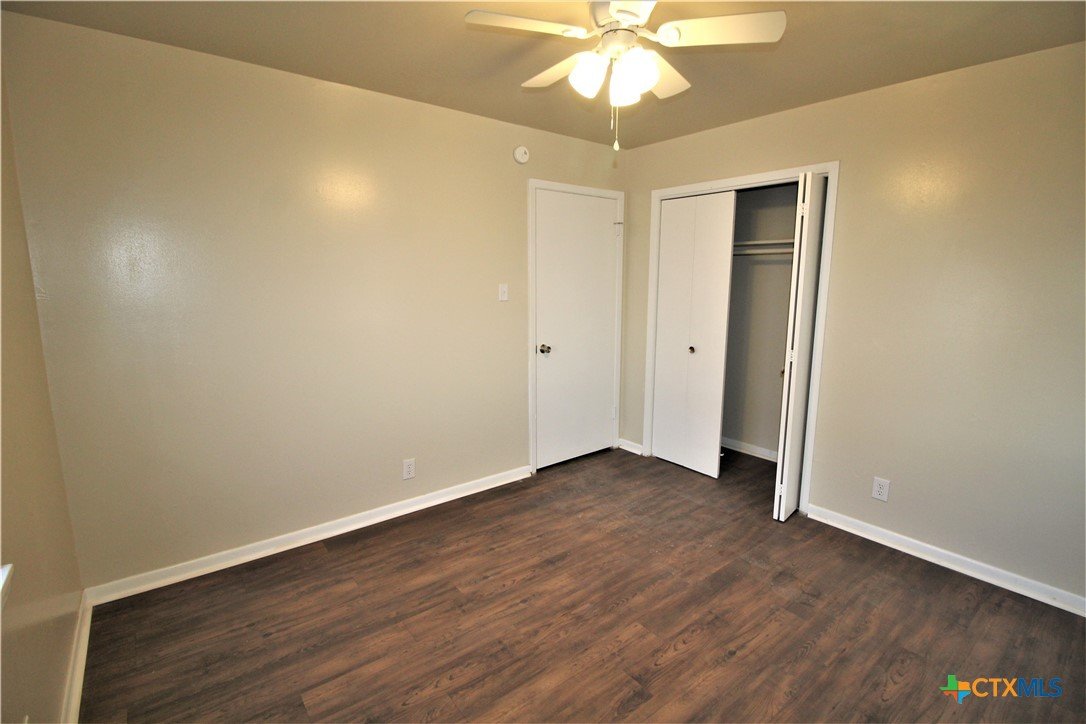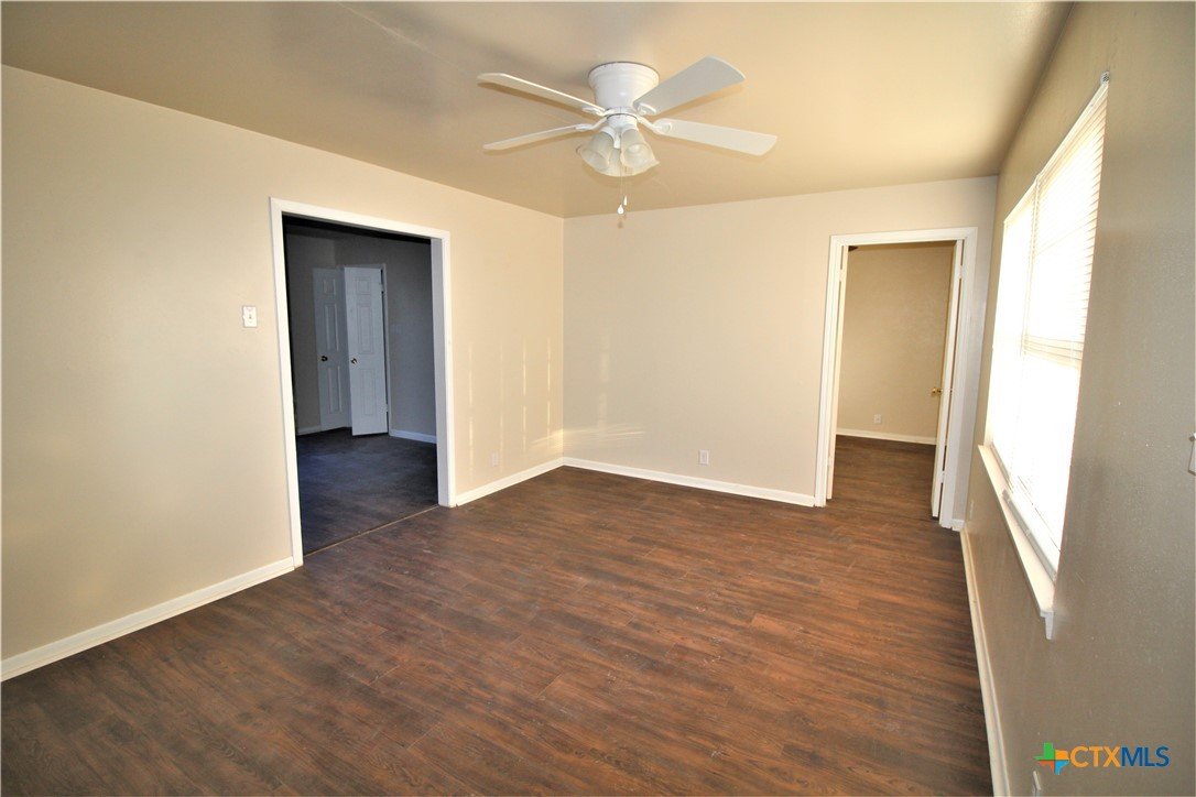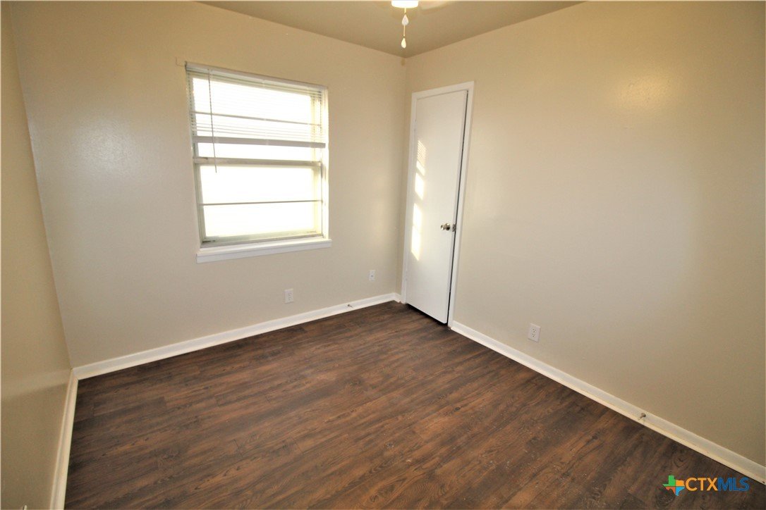This is a charming 3 bedroom, 2 bath home with a flex room. The home has luxury vinyl plank flooring throughout, kitchen counter tops and backsplash resurfaced, and other noticeable renovations throughout. Upon entering the home you will walk into a small flex room that can be an office/ play room / cozy reading room. The next room is the main living area that also has an exterior door to the front yard. Adjacent to this room is the kitchen and dining. The kitchen has black and stainless appliances to include fridge and GAS stove. The dining area is shared with the kitchen but offers a great view into the backyard through the sliding glass door and is spacious for a large table setting. Through the double doors in the kitchen/dining is the utility room and a full bathroom. Convenient so guests do not have to go down the hall by the bedrooms. This bathroom has a double sink vanity, a vast amount of storage, shower/tub surround, and a privacy area for the toilet. Not to mention full size washer and dryer connections with additional cabinet space and there is an exterior door to the backyard in this area as well. Through the main living area is a door that leads to all of the bedrooms, the other full bathroom, and a large linen/storage closet. The 3 large bedrooms have ample closet space in each as well as ceiling fans. The full bathroom is shared but has a single sink and shower/tub surround. At the end of the hall is additional cabinet storage. This home is not going to last long, schedule your showing while you can!