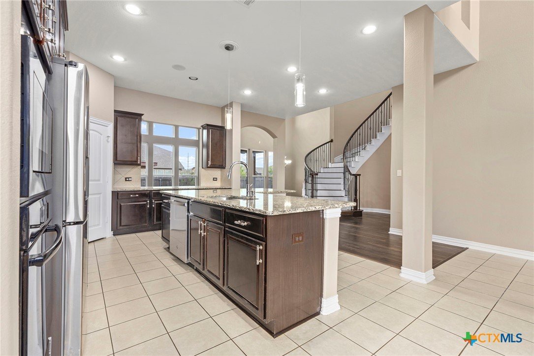 Lowest Price per square foot in the neighborhood! Way under county assessed value! Add your personal touch, priced accordingly. Main Bedroom downstairs. Three bedrooms upstairs, including one with an ensuite allowing multigenerational possibilities. Spacious home with grand staircase, large family room, media room, office and three car garage. Custom outdoor kitchen under covered pavilion. Kitchen refrigerator, hot tub, and pavilion appliances convey.