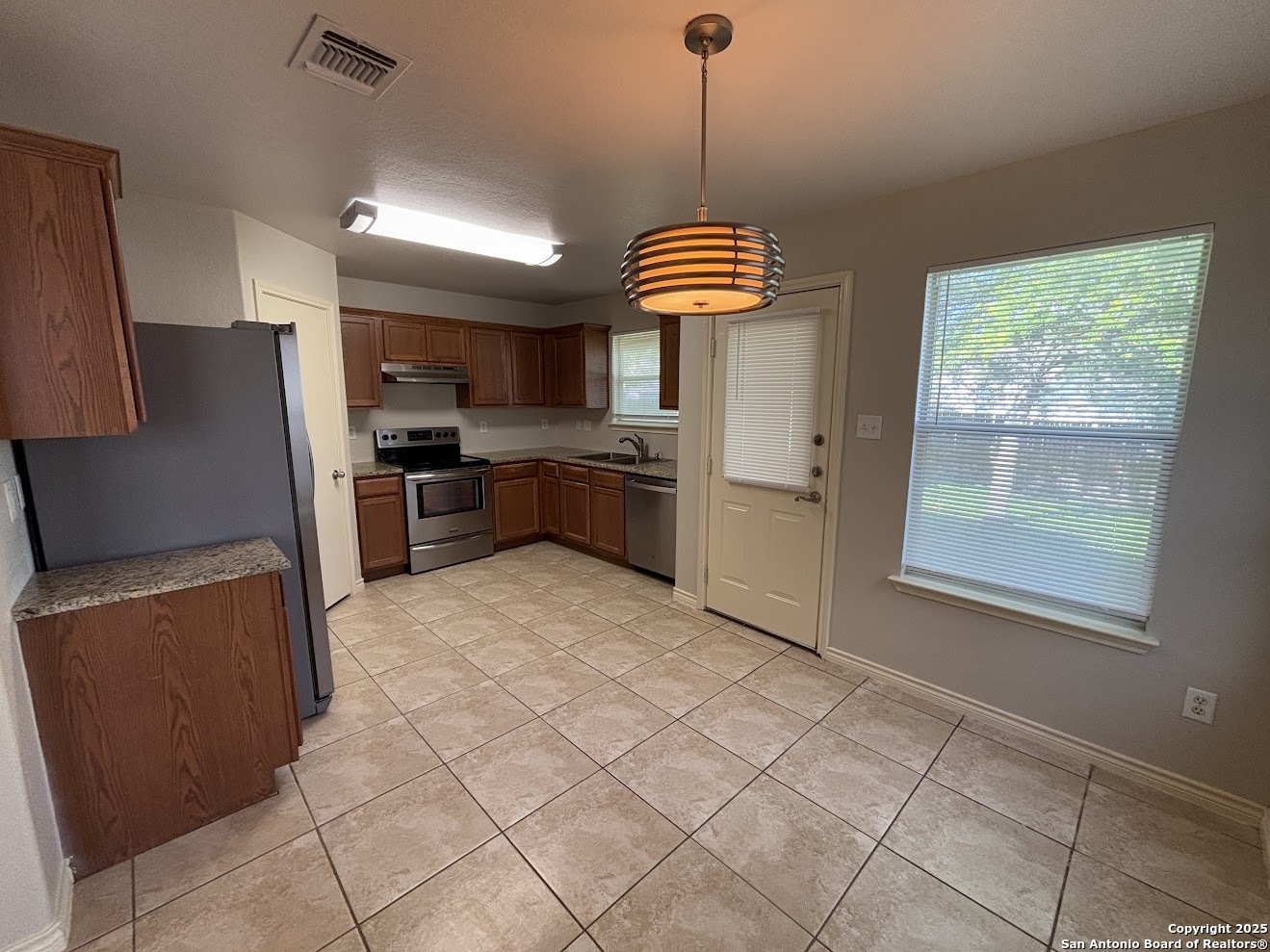 This charming home features ceramic tile flooring throughout the common areas and cozy carpet in each bedroom. The kitchen is equipped with all stainless steel appliances, granite countertops, and includes a refrigerator. Enjoy a spacious backyard with ample shade provided by mature trees. Prime Location: Conveniently located with easy access to Loop 1604, Highway 151, Lackland Air Force Base, Wells Fargo, Northwest Vista College, SeaWorld, and more! Rental Requirements: Monthly gross income equal to at least 3 times the monthly rent. Rental history must not include broken leases or evictions. 600 Credit score. Income and Background check. $75 application fee for each occupant over 18 years of age. $1,445 security deposit. Pet deposit of $400 per approved pet.