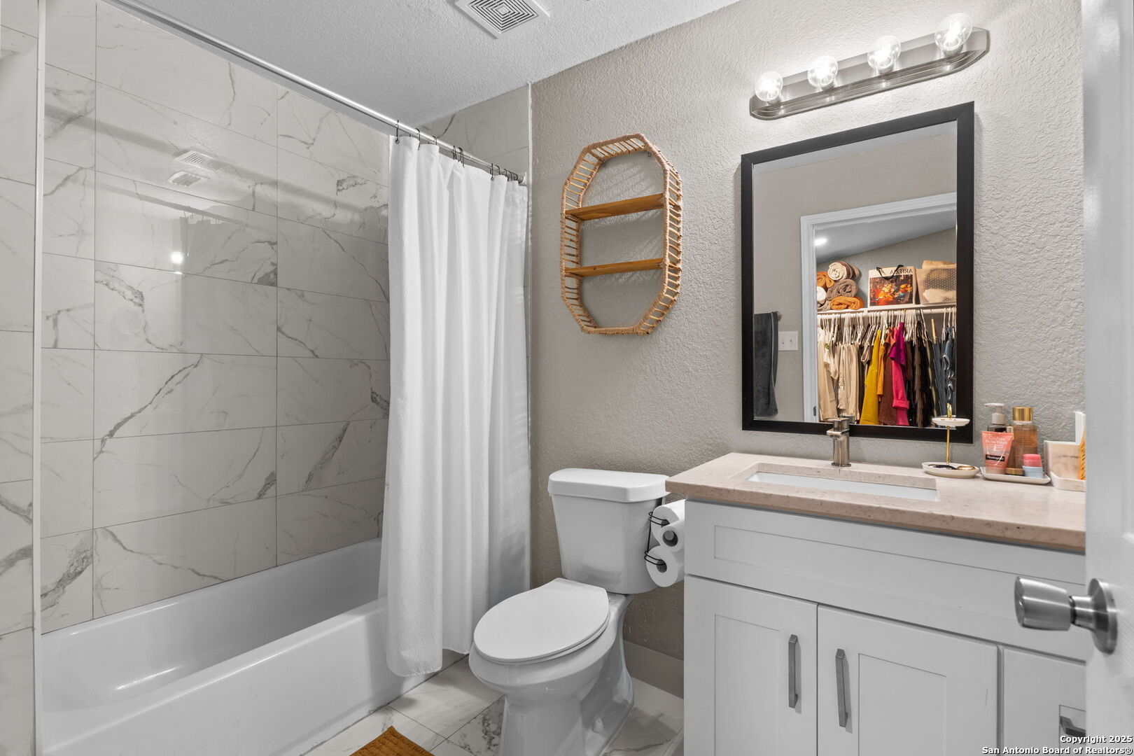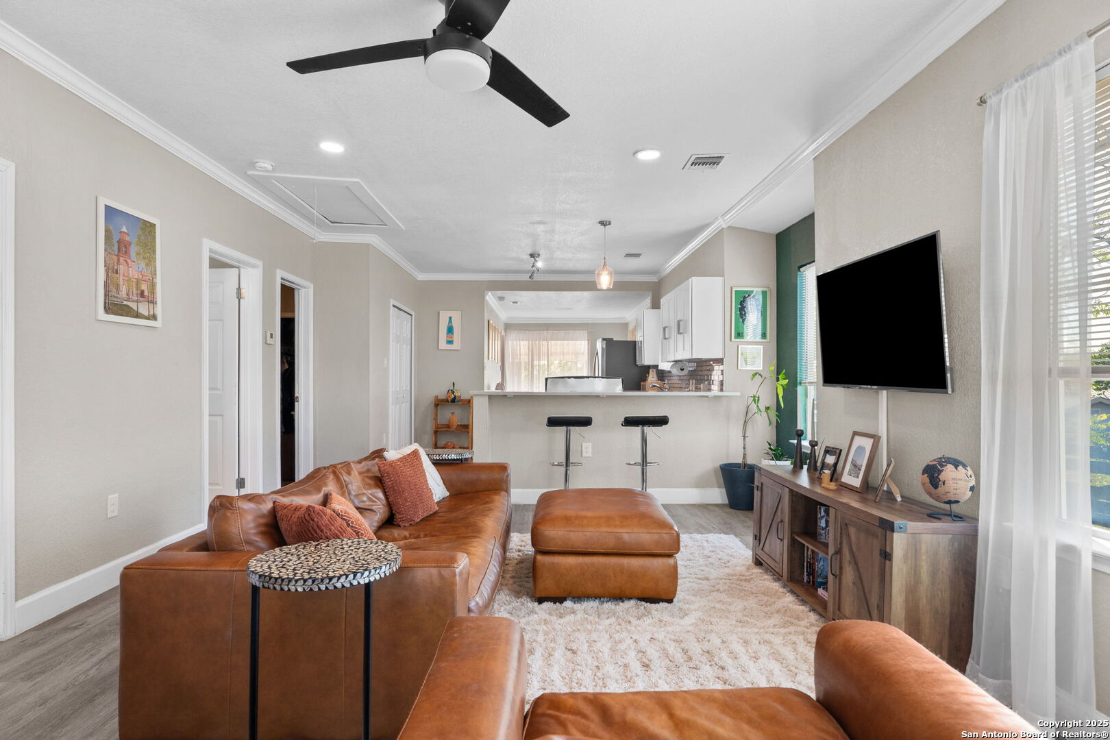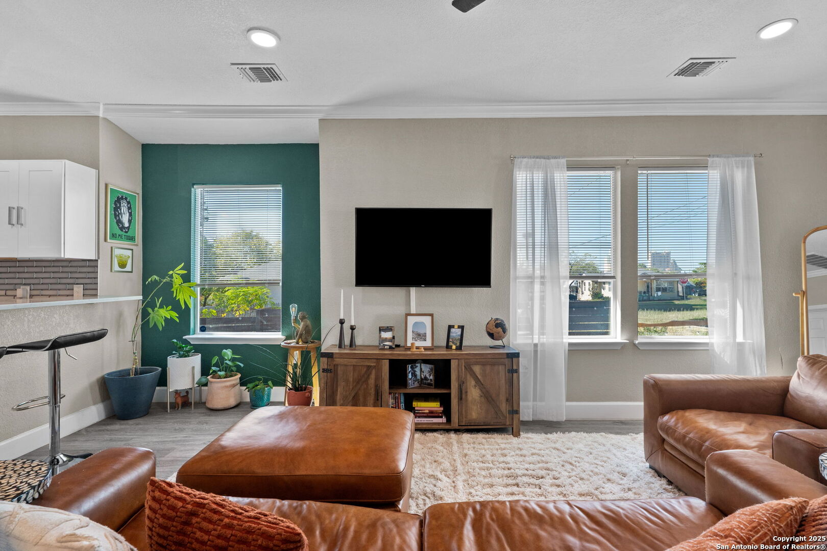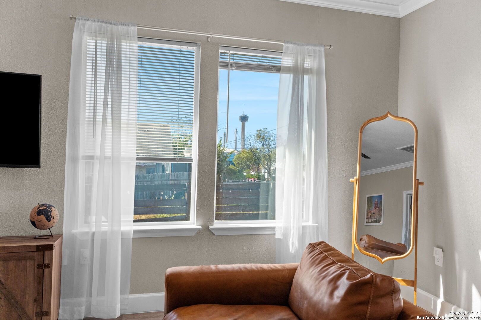 Close to Riverwalk and the Alamodome. This charming home has a lot to offer and is a must see! The exterior and interior has an added modern touch. This open floorplan is nice for entertaining and equipped with stainless steel appliances. The main bathroom as a walk-in shower with a glass door. Enjoy the peaceful view of the city lights and Alamodome from the living room.