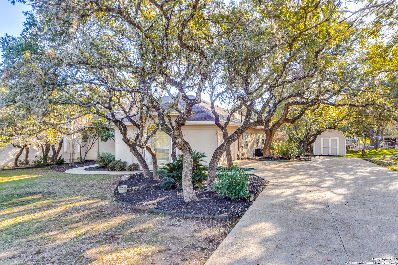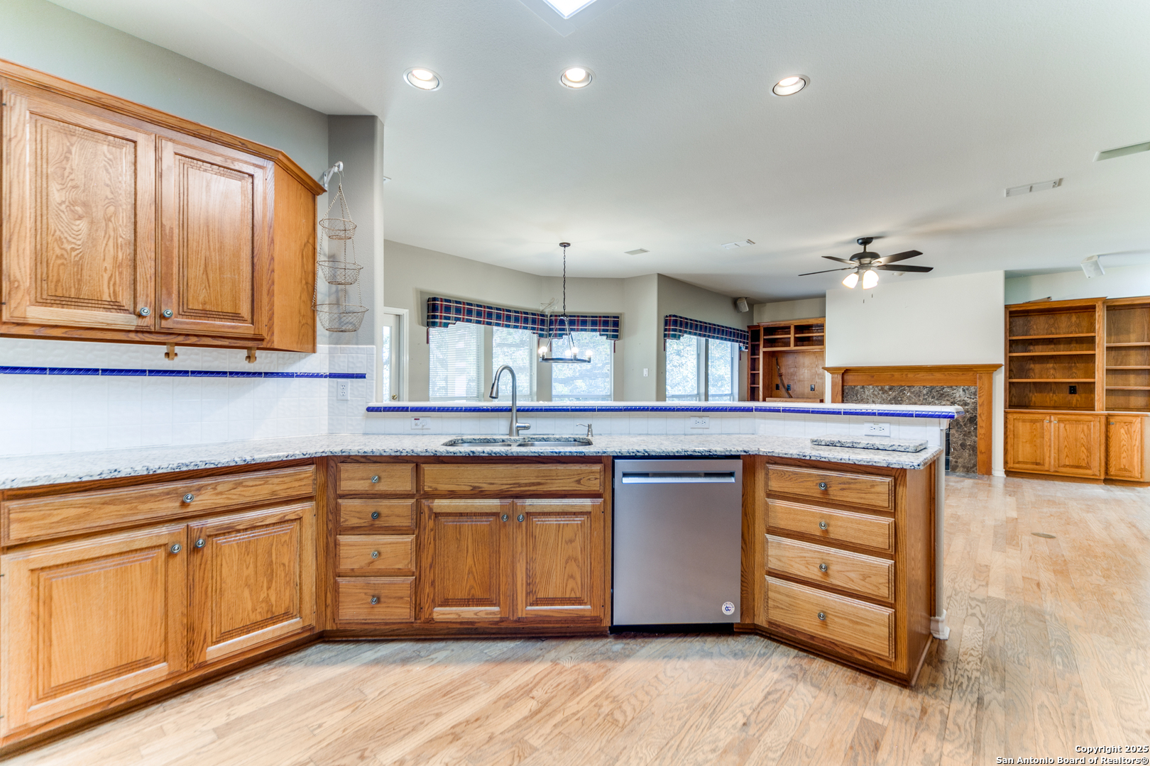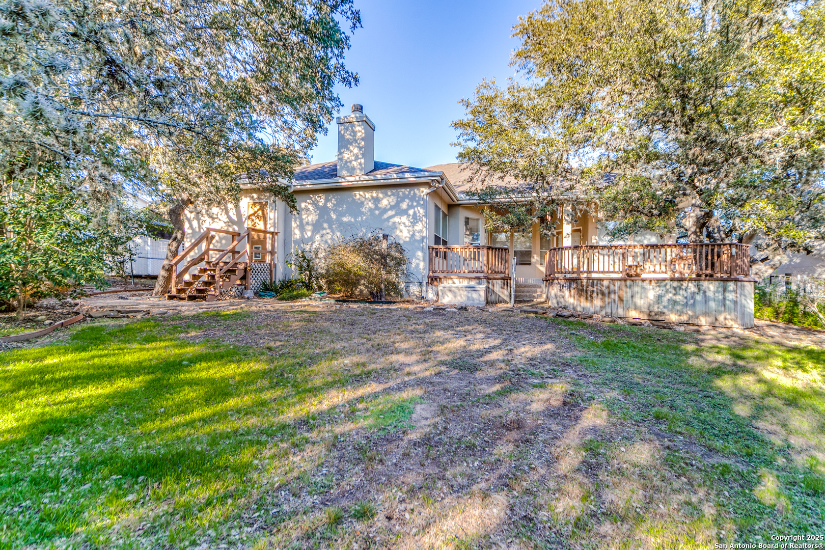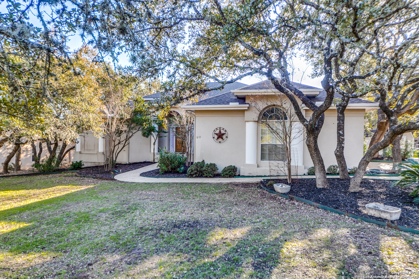 Welcome to this 1-story home located in the highly sought-after Timberwood Park neighborhood. Boasting 4 spacious bedrooms and 3 full bathrooms, this home offers an ideal layout for both family living and entertaining. As you enter, you're greeted by a cozy sitting area and a formal dining room. The heart of the home is the open-concept kitchen, which features double ovens, a walk-in pantry, and granite countertops. The adjacent breakfast room offers a casual dining space, seamlessly connecting to the kitchen. The expansive living room, with its wood-burning fireplace, serves as a focal point of the home, providing a comfortable and relaxing space for family gatherings or quiet evenings. The private primary suite is complete with direct access to the back patio, an en-suite bathroom with a separate tub and walk-in shower, dual vanities, and a large walk-in closet. The second bedroom features its own full bathroom, while the 3rd and 4th bedrooms share a well-appointed bathroom. Step outside to enjoy the covered patio and additional decking, perfect for outdoor dining, relaxation, or entertaining. This home has been thoughtfully updated with a brand new HVAC system, roof, gutters, water heater, and carpeting, all replaced at the end of 2023 or in 2024. In addition, there is a separate laundry room and an attached 2-car garage. This home combines comfort, style, and functionality in one of the most desirable areas of Timberwood Park.