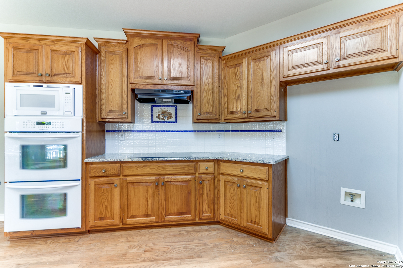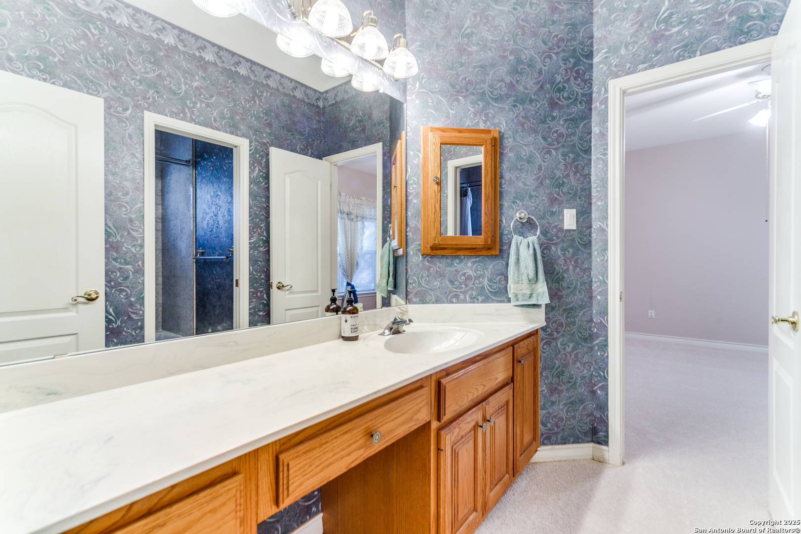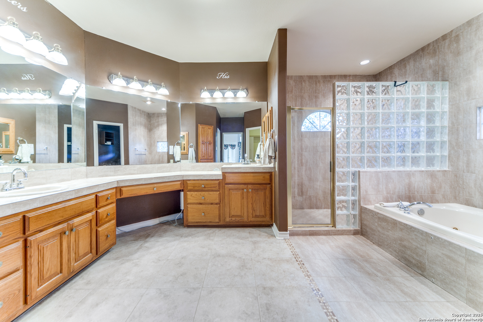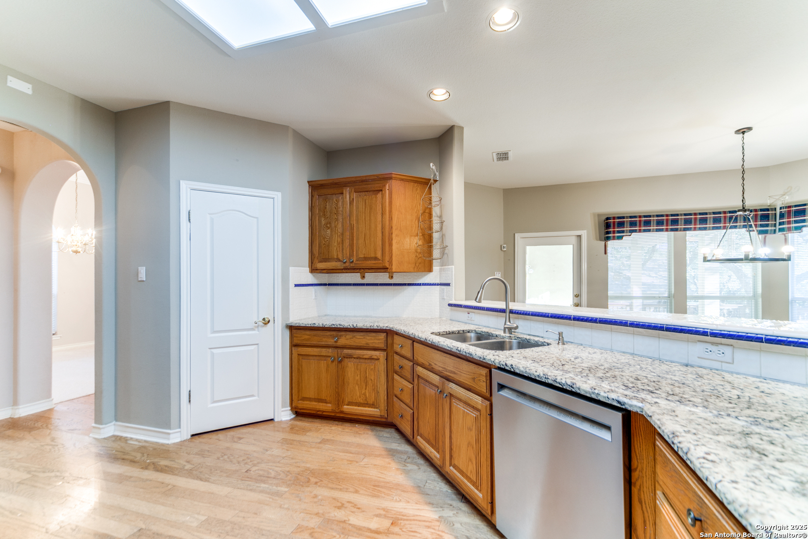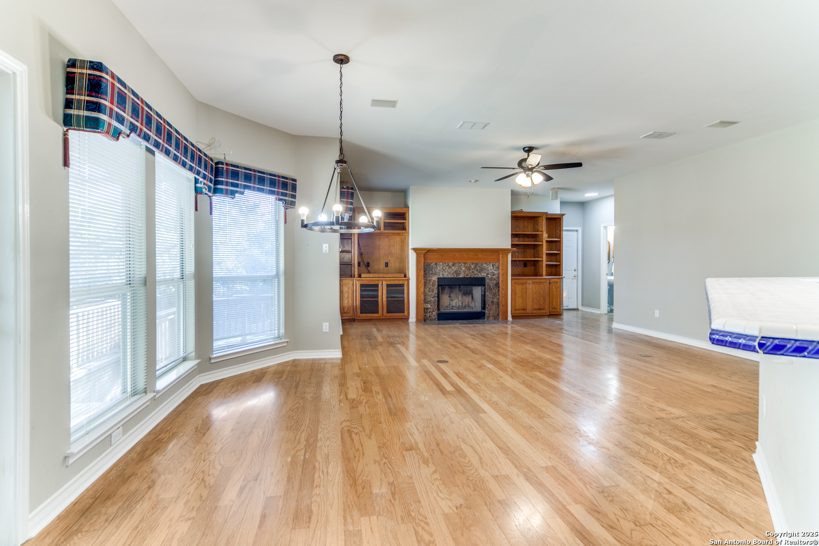 Welcome to this 1-story home located in the highly sought-after Timberwood Park neighborhood. Boasting 4 spacious bedrooms and 3 full bathrooms, this home offers an ideal layout for both family living and entertaining. As you enter, you're greeted by a cozy sitting area and a formal dining room. The heart of the home is the open-concept kitchen, which features double ovens, a walk-in pantry, and granite countertops. The adjacent breakfast room offers a casual dining space, seamlessly connecting to the kitchen. The expansive living room, with its wood-burning fireplace, serves as a focal point of the home, providing a comfortable and relaxing space for family gatherings or quiet evenings. The private primary suite is complete with direct access to the back patio, an en-suite bathroom with a separate tub and walk-in shower, dual vanities, and a large walk-in closet. The second bedroom features its own full bathroom, while the 3rd and 4th bedrooms share a well-appointed bathroom. Step outside to enjoy the covered patio and additional decking, perfect for outdoor dining, relaxation, or entertaining. This home has been thoughtfully updated with a brand new HVAC system, roof, gutters, water heater, and carpeting, all replaced at the end of 2023 or in 2024. In addition, there is a separate laundry room and an attached 2-car garage. This home combines comfort, style, and functionality in one of the most desirable areas of Timberwood Park.