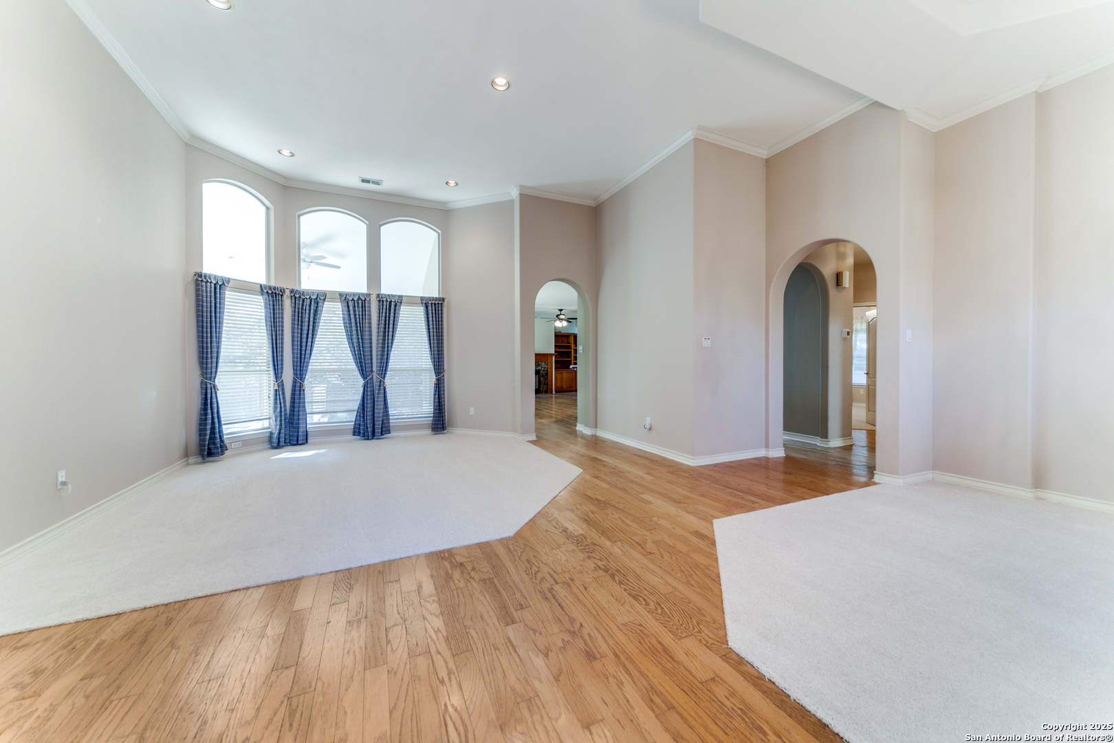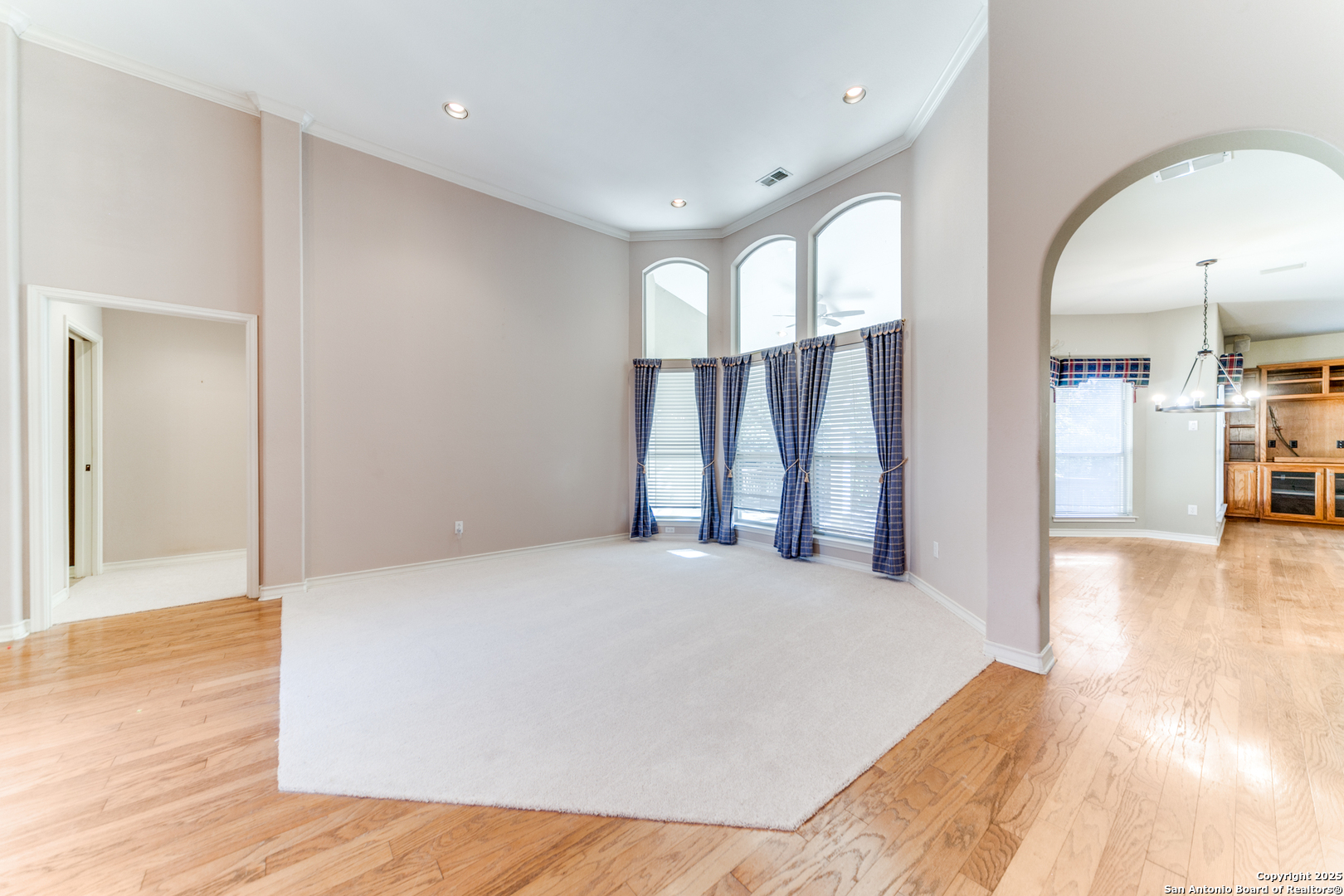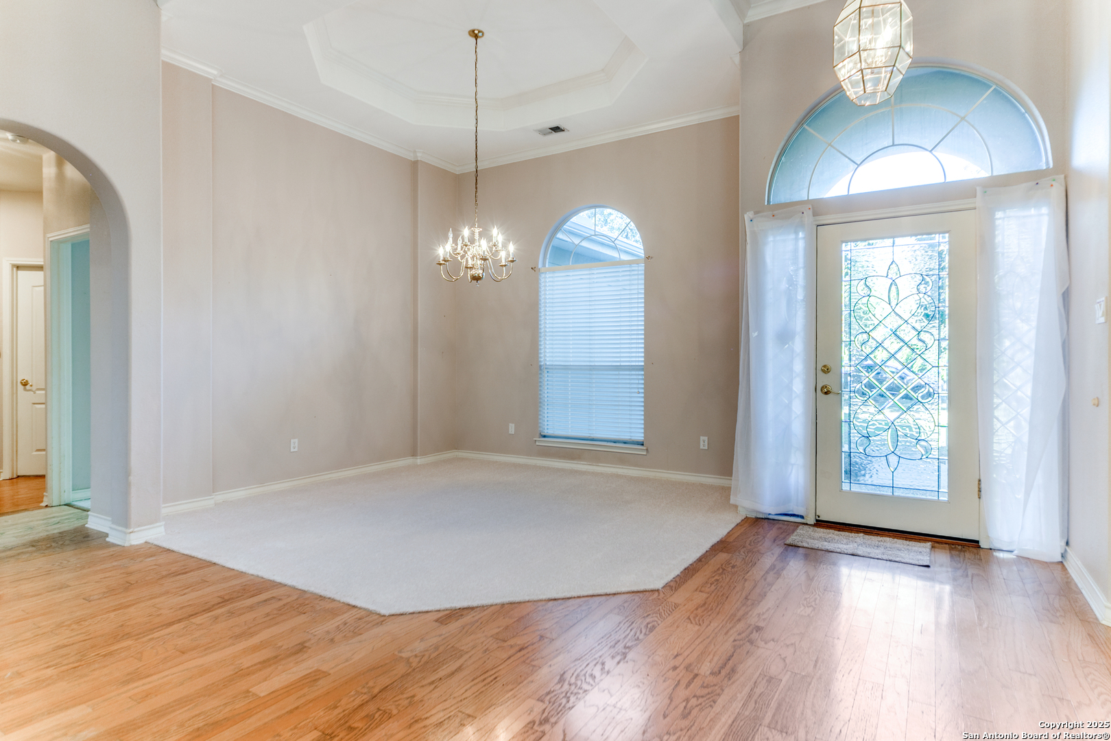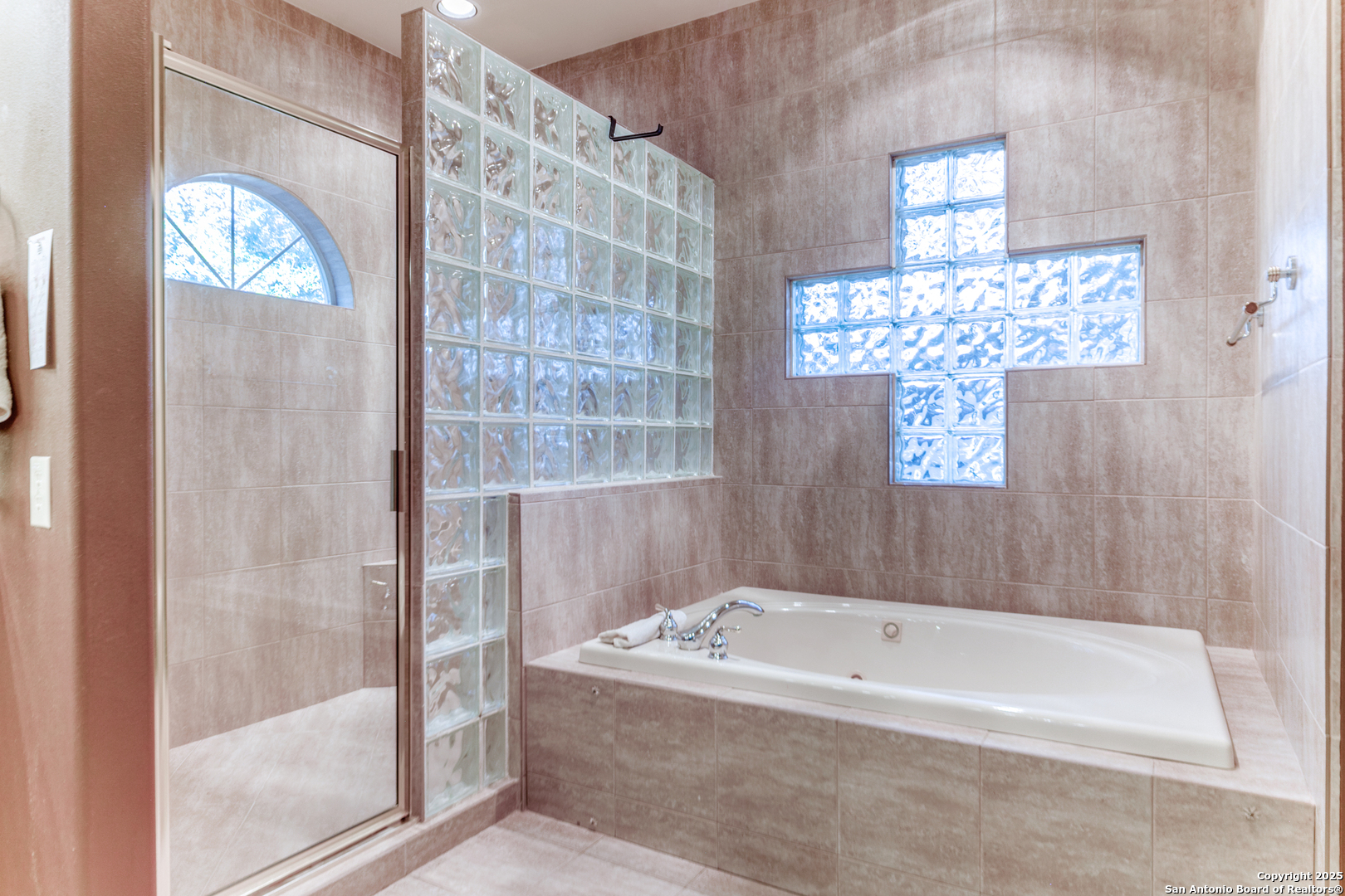 Welcome to this 1-story home located in the highly sought-after Timberwood Park neighborhood. Boasting 4 spacious bedrooms and 3 full bathrooms, this home offers an ideal layout for both family living and entertaining. As you enter, you're greeted by a cozy sitting area and a formal dining room. The heart of the home is the open-concept kitchen, which features double ovens, a walk-in pantry, and granite countertops. The adjacent breakfast room offers a casual dining space, seamlessly connecting to the kitchen. The expansive living room, with its wood-burning fireplace, serves as a focal point of the home, providing a comfortable and relaxing space for family gatherings or quiet evenings. The private primary suite is complete with direct access to the back patio, an en-suite bathroom with a separate tub and walk-in shower, dual vanities, and a large walk-in closet. The second bedroom features its own full bathroom, while the 3rd and 4th bedrooms share a well-appointed bathroom. Step outside to enjoy the covered patio and additional decking, perfect for outdoor dining, relaxation, or entertaining. This home has been thoughtfully updated with a brand new HVAC system, roof, gutters, water heater, and carpeting, all replaced at the end of 2023 or in 2024. In addition, there is a separate laundry room and an attached 2-car garage. This home combines comfort, style, and functionality in one of the most desirable areas of Timberwood Park.
