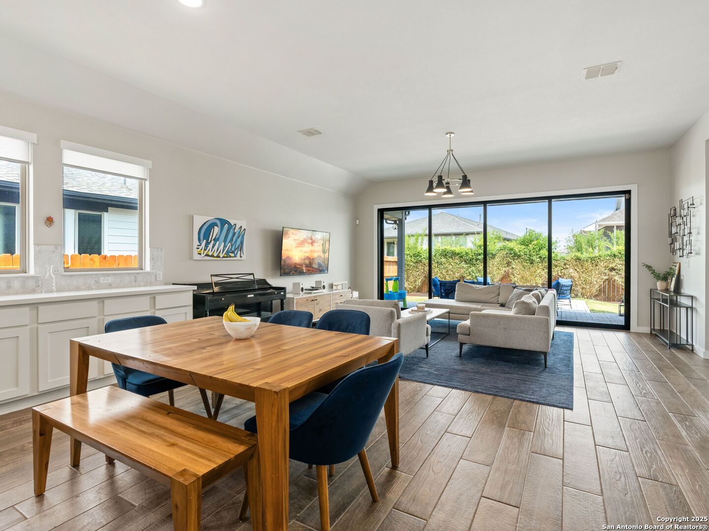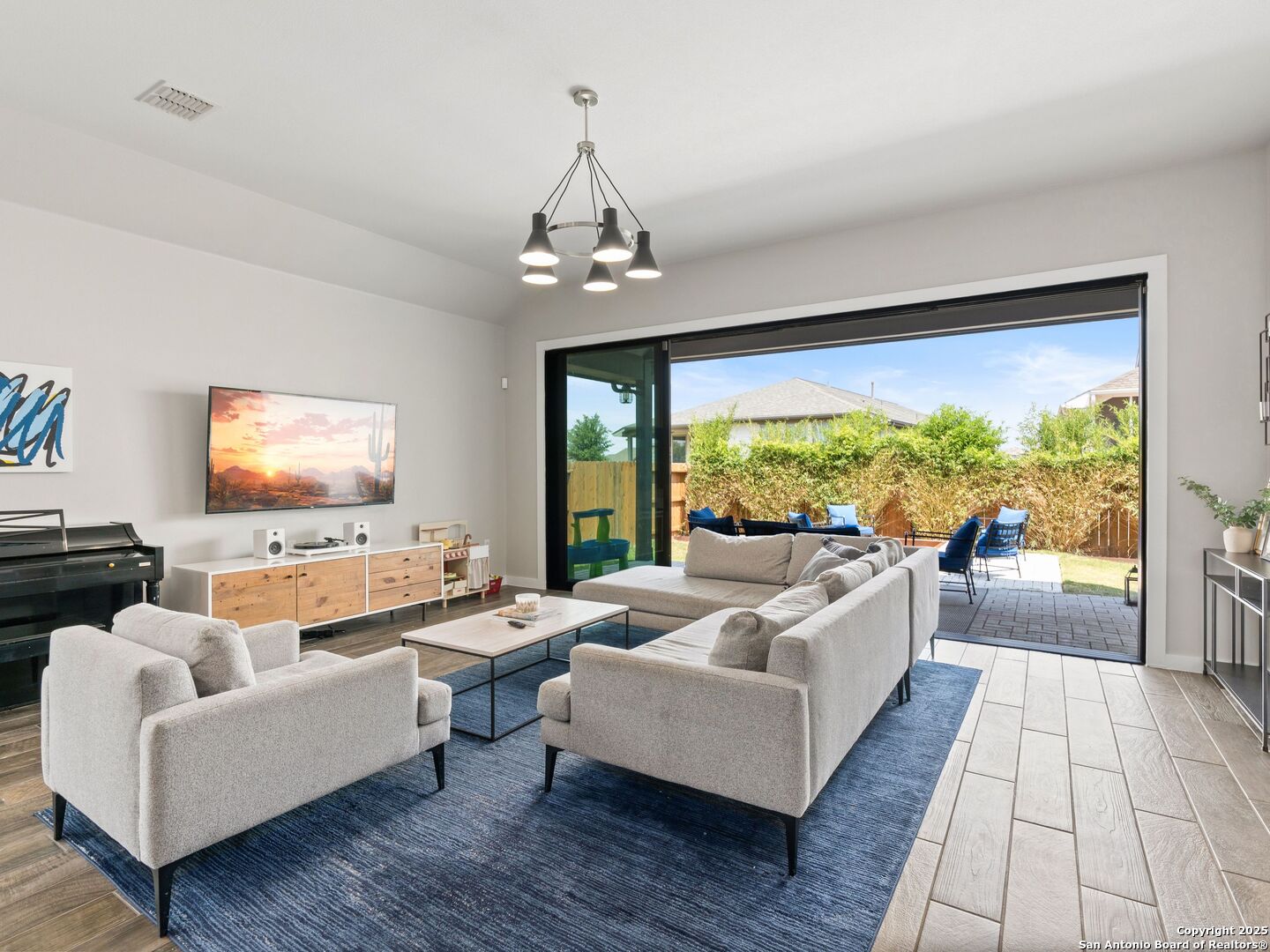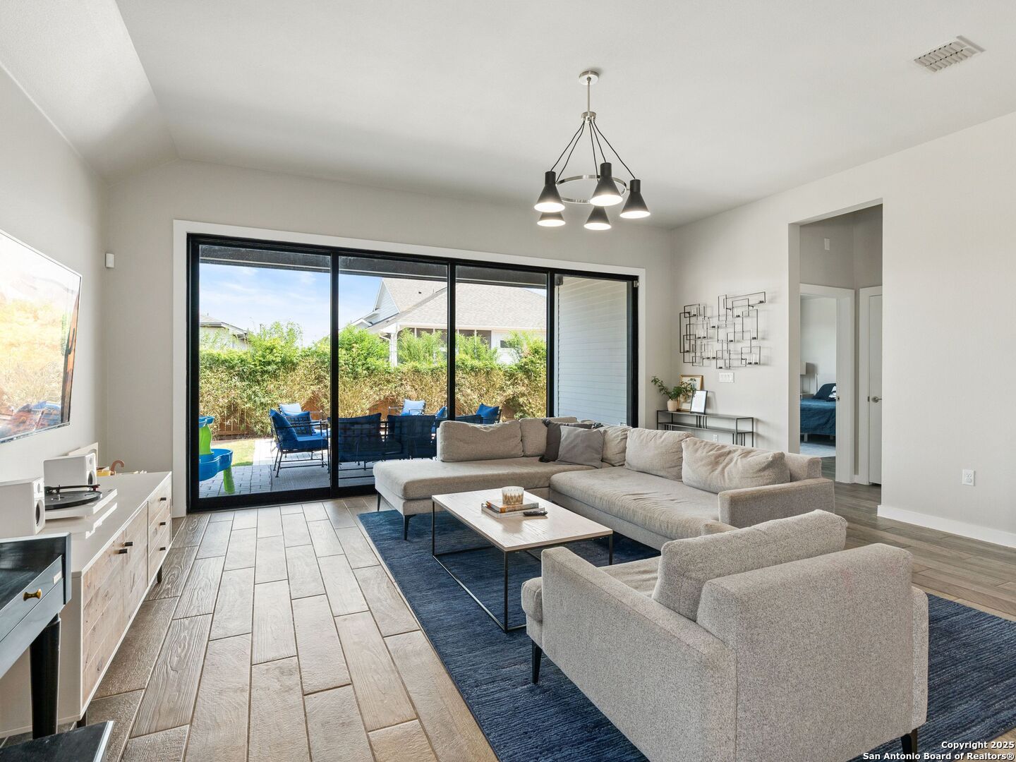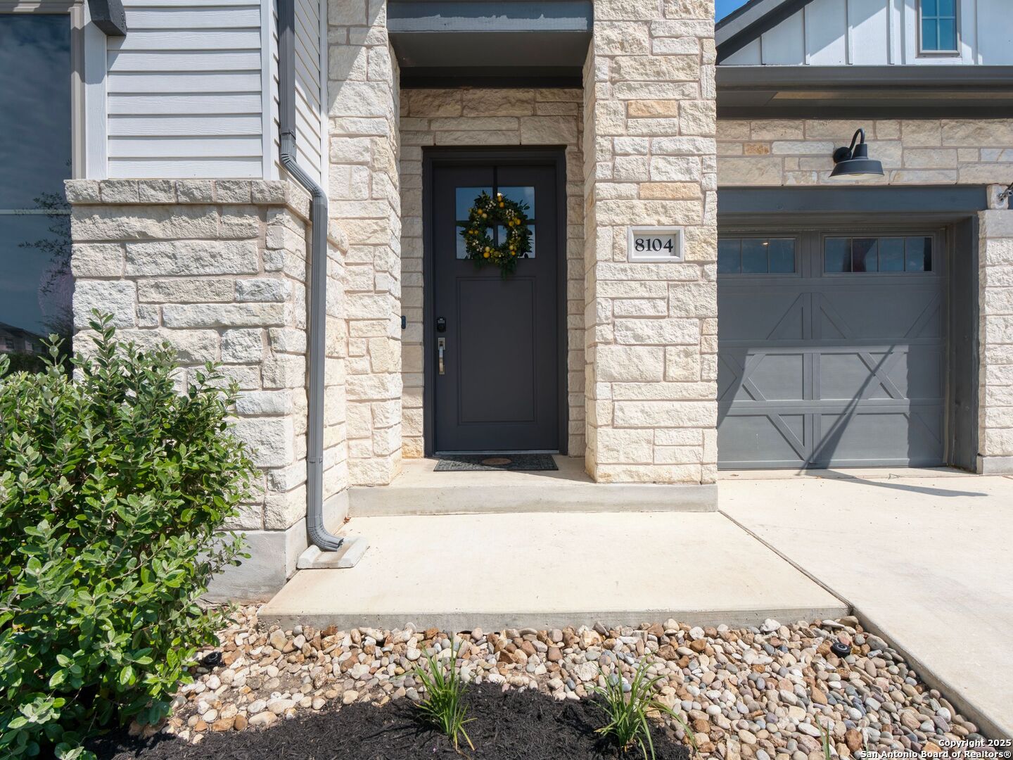 Welcome to 8104 Silhouette St in Easton Park, a vibrant master planned community approximately 12.0 miles southeast of Downtown Austin. This thoughtfully designed two story home, built in 2020, provides four bedrooms, three full baths and approximately 2,427 sq ft of living space on a generous lot. A dedicated office with French doors and a soaring twelve foot entry ceiling greet guests; the open concept island kitchen includes a corner walk-in pantry and overlooks the dining area and family room, all illuminated by an eye-catching folding glass door to the covered patio. The primary suite features a wall of windows, dual vanities, a garden tub, a separate glass enclosed shower, and two walk-in closets. A guest suite with private bath, a mud room off the two car garage, and ample storage complete the practical layout. Community amenities place residents steps from The Union community center with resort style pool, fitness center, event lawn, and over 13 miles of walking trails. This home blends stylish design with everyday function, offering the best of Austin living in a connected and welcoming neighborhood.