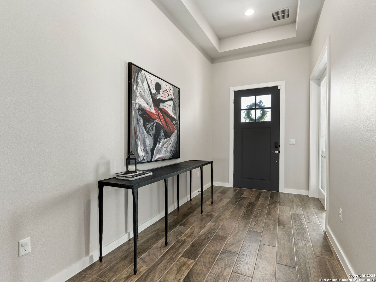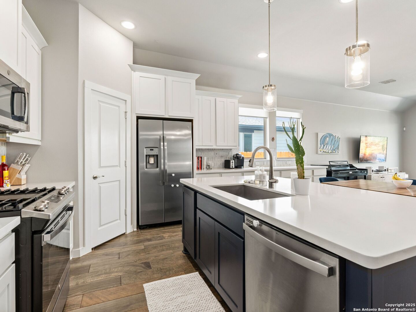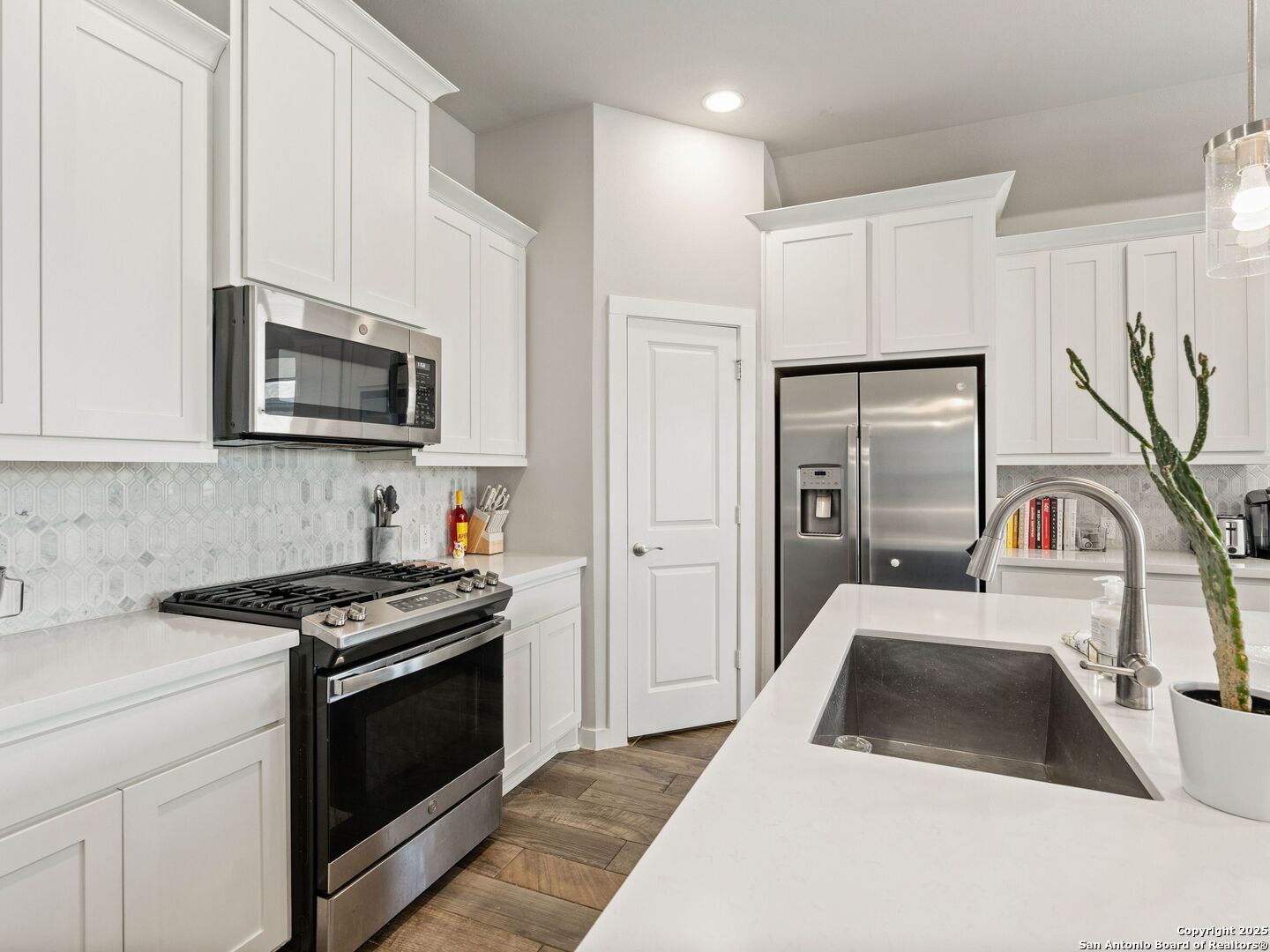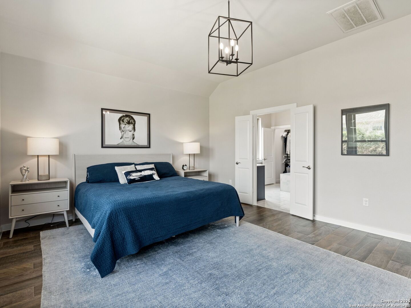 Welcome to 8104 Silhouette St in Easton Park, a vibrant master planned community approximately 12.0 miles southeast of Downtown Austin. This thoughtfully designed two story home, built in 2020, provides four bedrooms, three full baths and approximately 2,427 sq ft of living space on a generous lot. A dedicated office with French doors and a soaring twelve foot entry ceiling greet guests; the open concept island kitchen includes a corner walk-in pantry and overlooks the dining area and family room, all illuminated by an eye-catching folding glass door to the covered patio. The primary suite features a wall of windows, dual vanities, a garden tub, a separate glass enclosed shower, and two walk-in closets. A guest suite with private bath, a mud room off the two car garage, and ample storage complete the practical layout. Community amenities place residents steps from The Union community center with resort style pool, fitness center, event lawn, and over 13 miles of walking trails. This home blends stylish design with everyday function, offering the best of Austin living in a connected and welcoming neighborhood.
