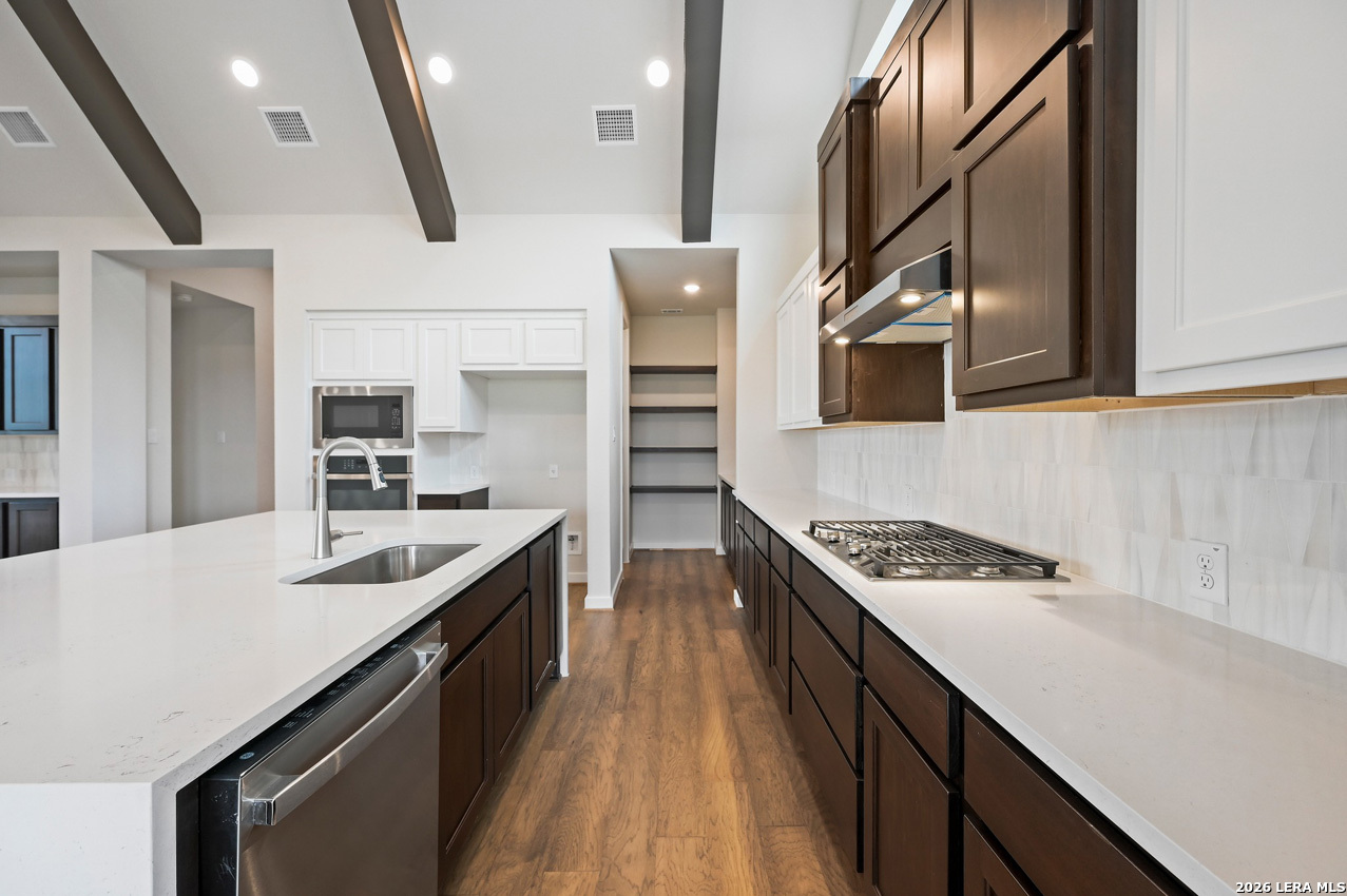 Step into this beautifully crafted 4-bedroom, 3.5-bath home featuring custom finishes and thoughtful design throughout. A private study offers the perfect retreat for work or quiet time, while high ceilings and expansive living areas create an open, airy ambiance. The interior showcases exquisite custom cabinetry that blends style with practicality in every room. The oversized 2-car garage provides generous storage, and the home's prime corner lot location backs to a permanent green space-offering serene views and enhanced privacy. Whether you're hosting guests or enjoying a quiet evening in, this residence delivers comfort, sophistication, and a connection to nature.