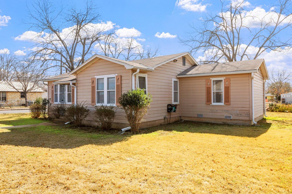 An interesting property that can have multiple uses and opportunities. GCAD states it was built in 1950, likely that is for what is the majority of the pier/beam part of the home. Apparently the southern end of the home was built prior to that and consisted of a kitchen, bath and a bedroom using brick construction and is now adjoined to the main home via a breezeway. Home needs remodeling, would be easy to reconfigure into a 2/2 by utilizing one bedroom as a bath/closet conversion. Bedrooms & living area have beautiful oak flooring. Has central heat, just needs compressor for AC. Corner location and 2 lots allow it to be redeveloped, add another home and since it is R-2 zoning you could live in one and STR the other or sell the lot you didn't want to utilize. There is no historical significance rating by City so demo is not an issue. Potential is here, bring your vision and re-imagine this long time family home. Location is just south of the area where the re-development of Navajo Grill complex is.