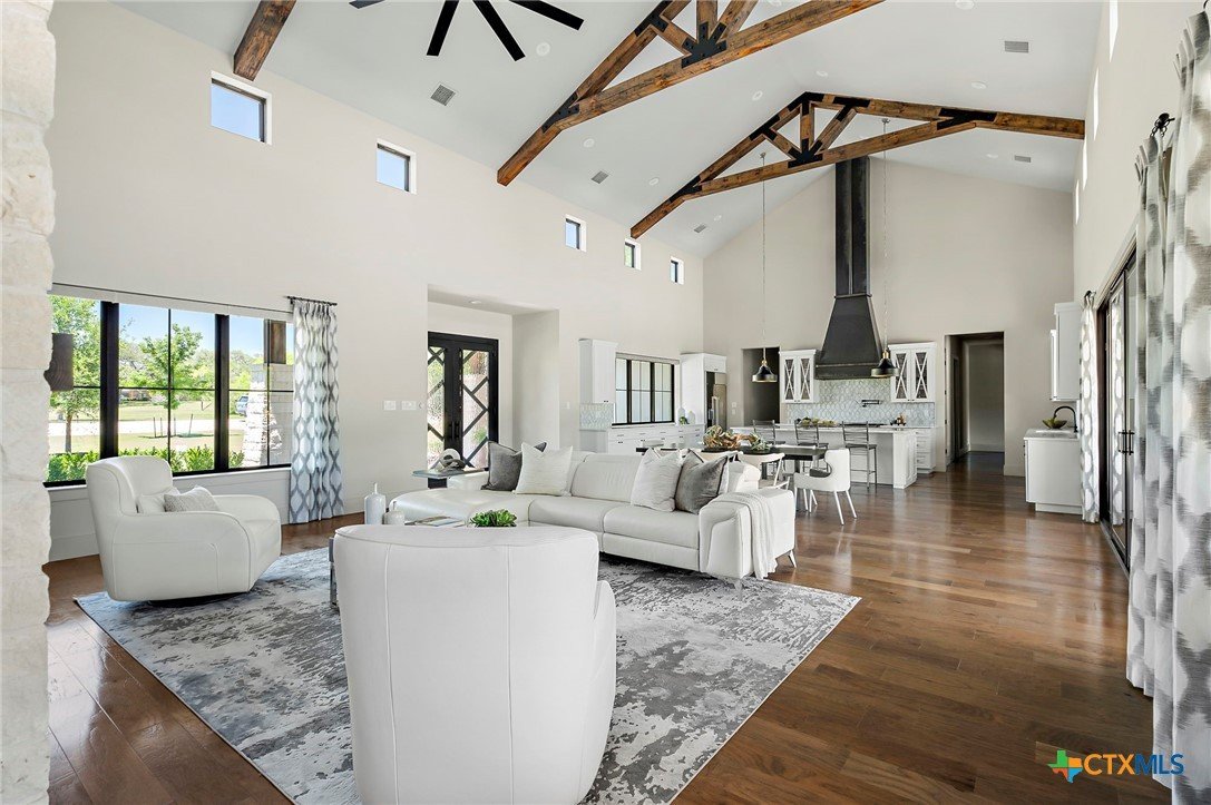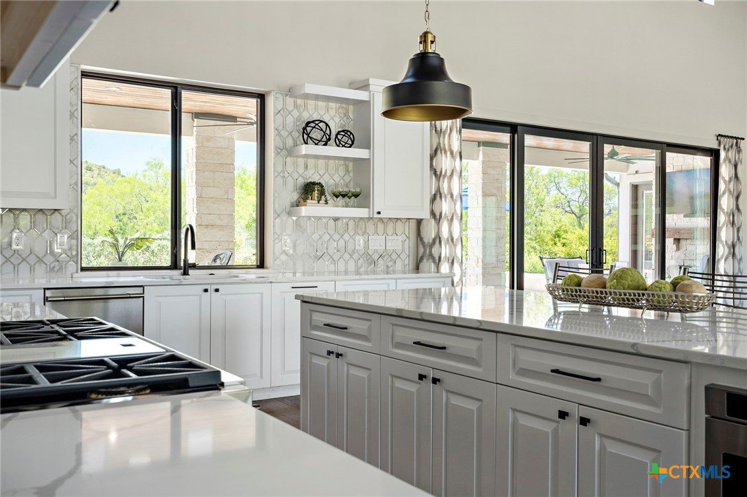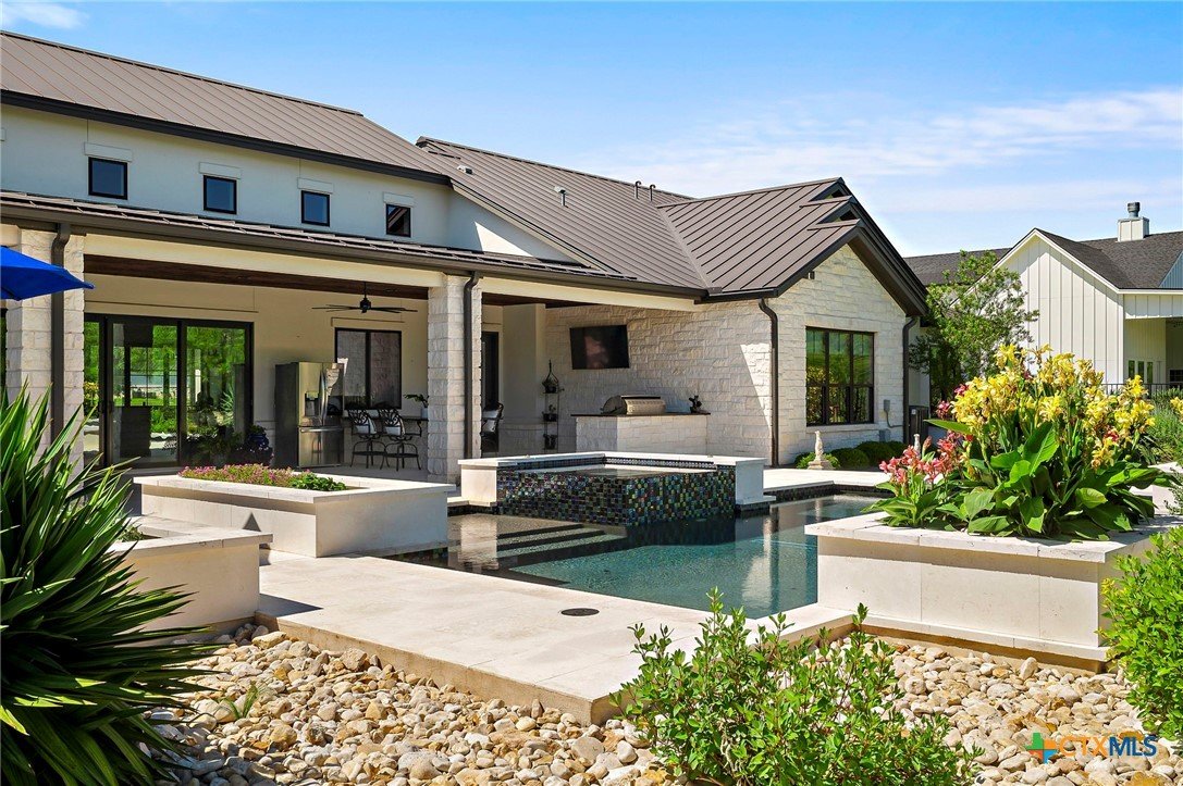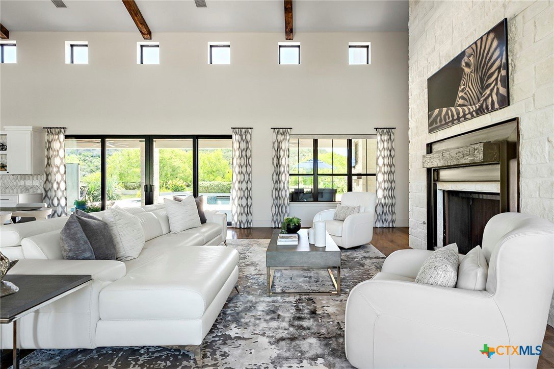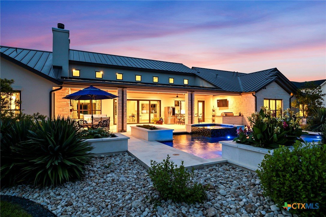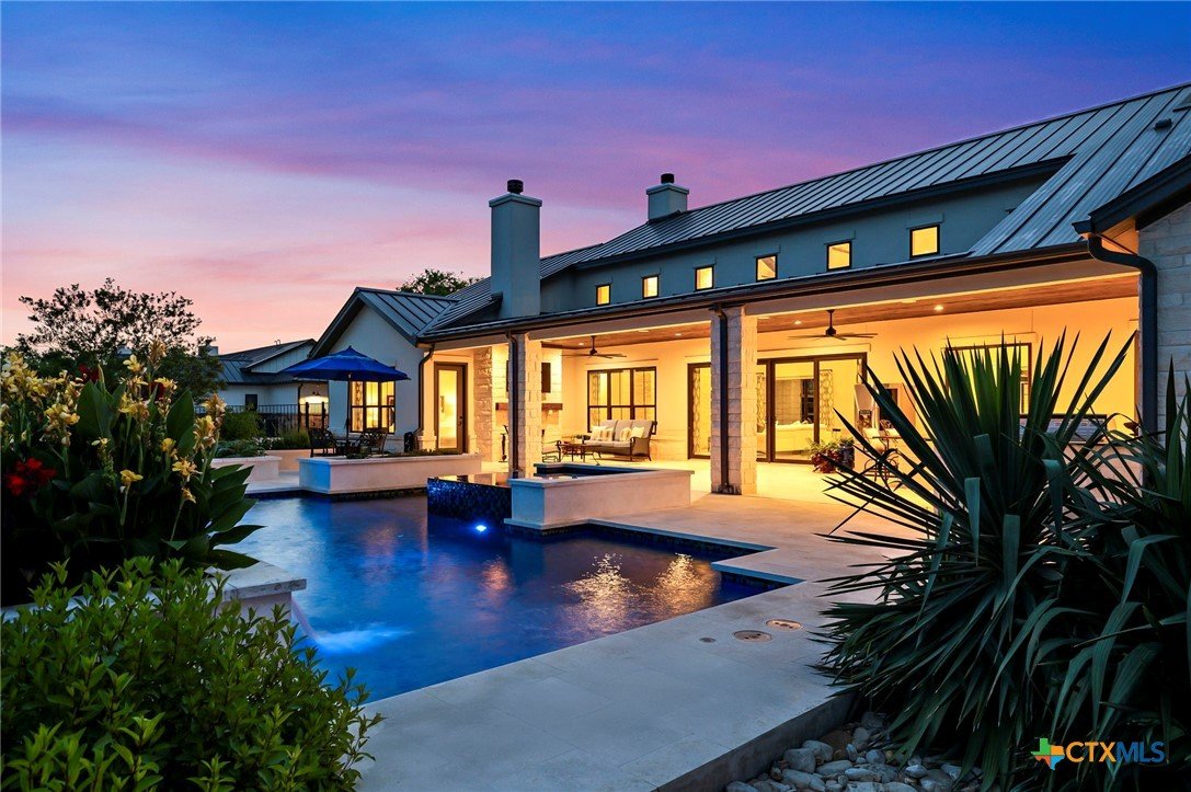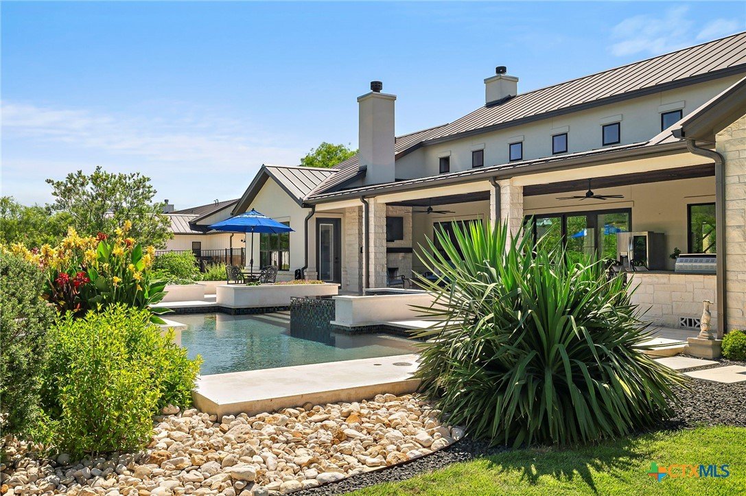 Situated in the prestigious Oxbow on the Guadalupe, 811 Wade Road is tucked away in one of New Braunfels' most coveted enclaves. The home is set on a lot spanning over an acre. With 4 beds/4.5 baths, this stunning single-level home offers more than 3,700 sqft of space, thoughtfully designed for comfortable living and entertaining. Soaring, vaulted ceilings and expansive windows let the light in, creating a seamless connection between the indoors and the landscape beyond. Boasting breathtaking bluff views, this home offers an unmatched, serene setting. Take in the beautiful surroundings with a lush landscape that graces a sparkling, modern Keith Zars pool and infinity-edge spa. Elegant water features and lighting create beautiful ambiance in the sprawling outdoor living area complete with an outdoor kitchen, bar and fireplace. This home offers an open-concept layout designed with the primary suite separate from the other bedrooms which all include ensuite baths. Beautiful quartz countertops and high-end, stainless-steel appliances with a double cooktop and ovens create a true chef’s kitchen. The spacious primary suite has a spa-like bath with double vanities, a sleek glass shower and a free-standing soaking tub.The sizable, walk-in closet is generous in both space and design with ample storage and a large window for natural light. The home includes a 3-car garage and drop zone. With exclusive access to the Guadalupe River, this home offers stylish living, unmatched amenities and some of Texas’ most coveted entertainment and enjoyment. Oxbow on the Guadalupe boasts private access to a community clubhouse with a riverfront, pool and entertaining area. Named as one of Texas’ finest trophy fishing areas, this section of the river has incredible opportunities for fishing and outdoor enthusiasts! Located minutes from Canyon Lake, historic Gruene, Texas and downtown New Braunfels, this home is situated for easy access to entertainment, dining, shopping, live music and more!