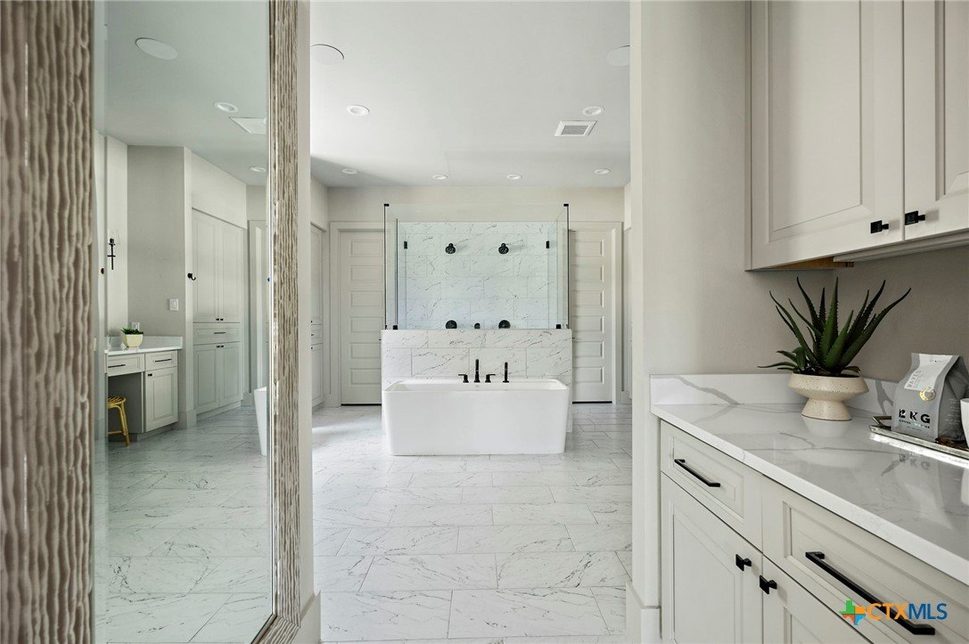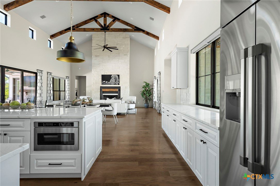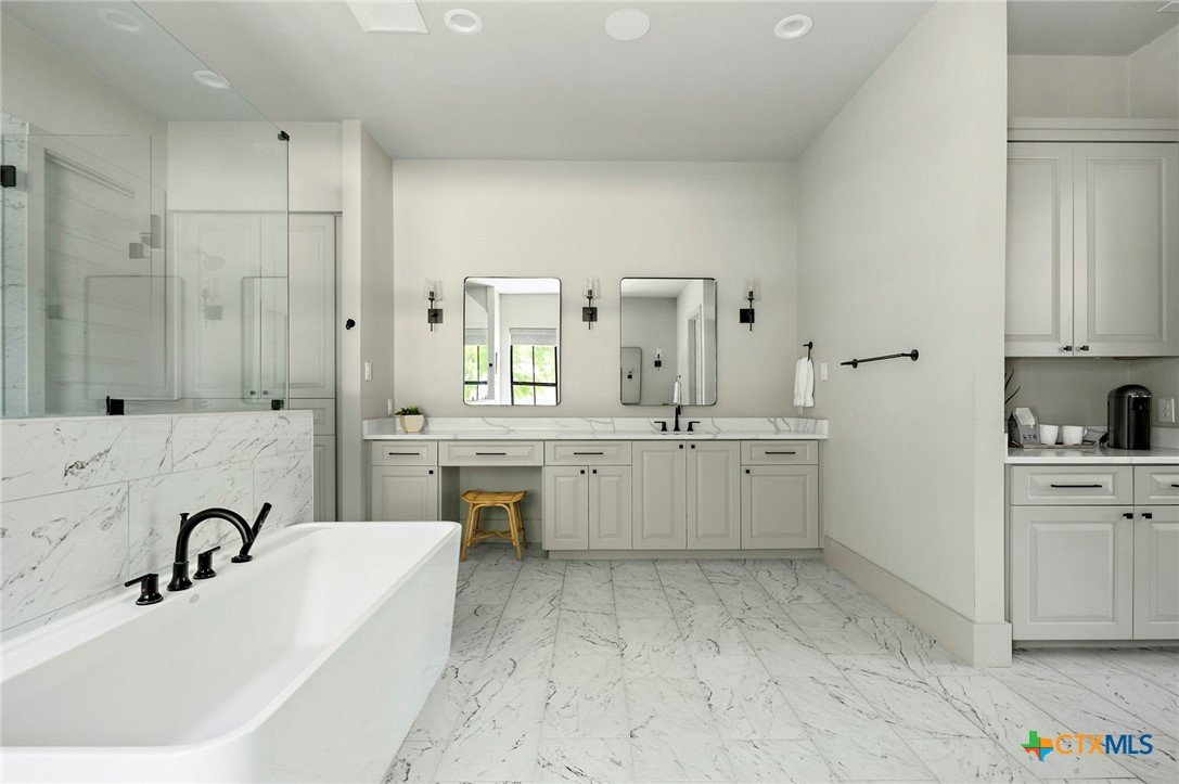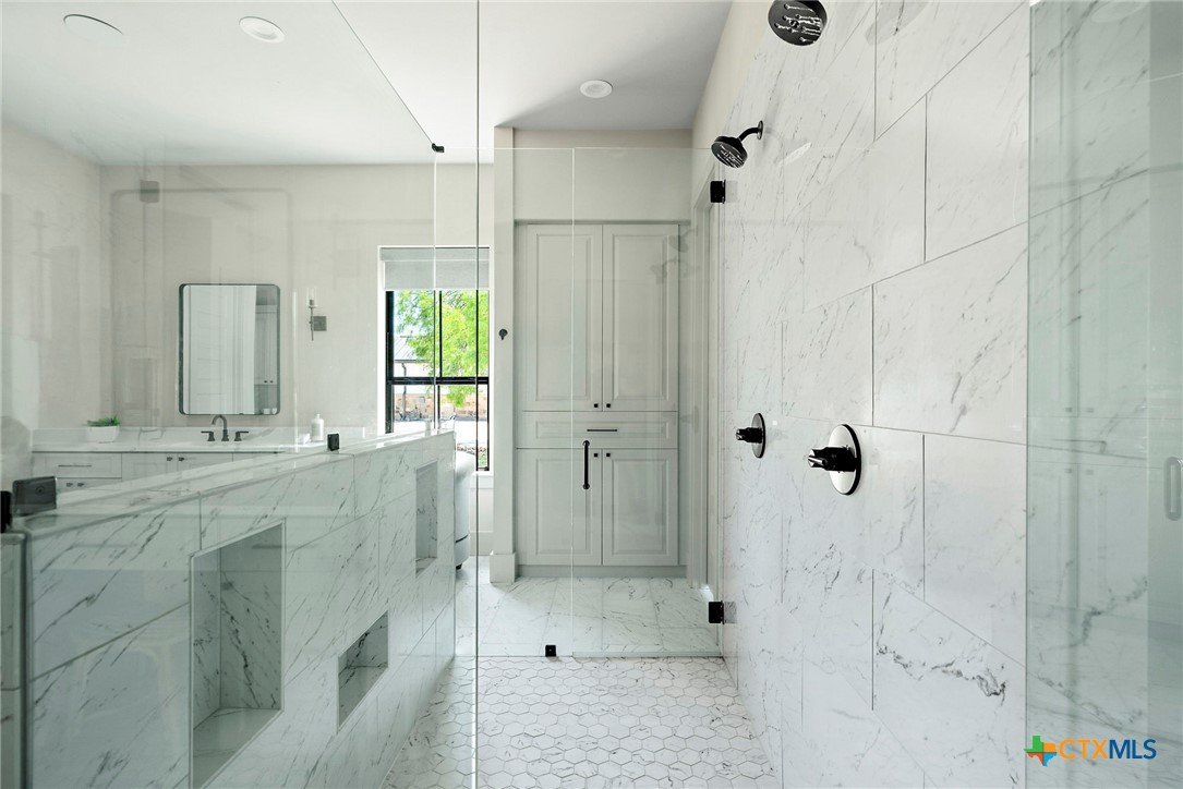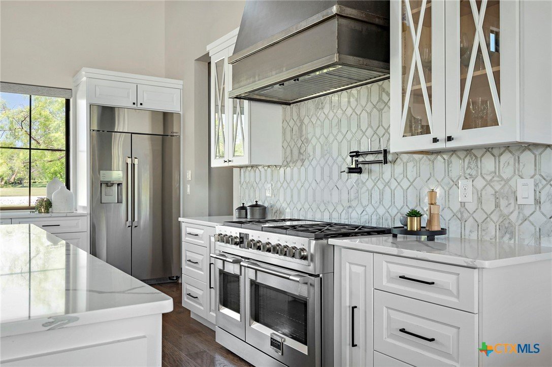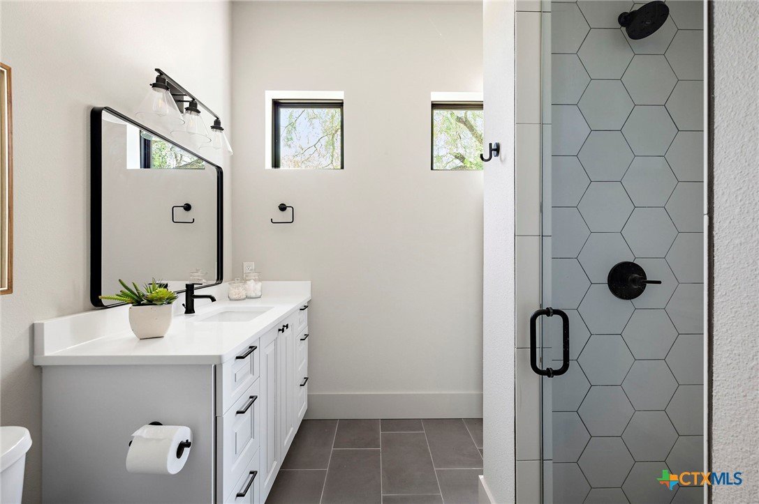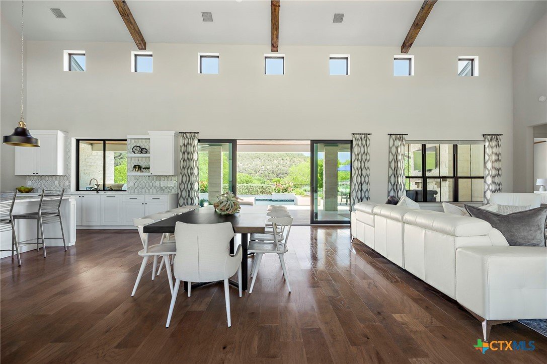 Situated in the prestigious Oxbow on the Guadalupe, 811 Wade Road is tucked away in one of New Braunfels' most coveted enclaves. The home is set on a lot spanning over an acre. With 4 beds/4.5 baths, this stunning single-level home offers more than 3,700 sqft of space, thoughtfully designed for comfortable living and entertaining. Soaring, vaulted ceilings and expansive windows let the light in, creating a seamless connection between the indoors and the landscape beyond. Boasting breathtaking bluff views, this home offers an unmatched, serene setting. Take in the beautiful surroundings with a lush landscape that graces a sparkling, modern Keith Zars pool and infinity-edge spa. Elegant water features and lighting create beautiful ambiance in the sprawling outdoor living area complete with an outdoor kitchen, bar and fireplace. This home offers an open-concept layout designed with the primary suite separate from the other bedrooms which all include ensuite baths. Beautiful quartz countertops and high-end, stainless-steel appliances with a double cooktop and ovens create a true chef’s kitchen. The spacious primary suite has a spa-like bath with double vanities, a sleek glass shower and a free-standing soaking tub.The sizable, walk-in closet is generous in both space and design with ample storage and a large window for natural light. The home includes a 3-car garage and drop zone. With exclusive access to the Guadalupe River, this home offers stylish living, unmatched amenities and some of Texas’ most coveted entertainment and enjoyment. Oxbow on the Guadalupe boasts private access to a community clubhouse with a riverfront, pool and entertaining area. Named as one of Texas’ finest trophy fishing areas, this section of the river has incredible opportunities for fishing and outdoor enthusiasts! Located minutes from Canyon Lake, historic Gruene, Texas and downtown New Braunfels, this home is situated for easy access to entertainment, dining, shopping, live music and more!