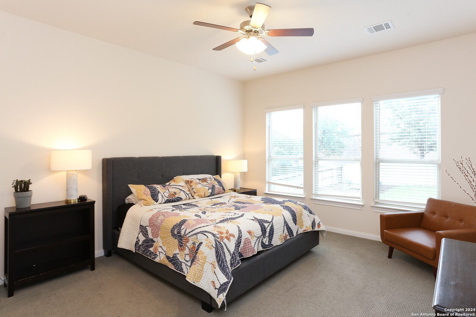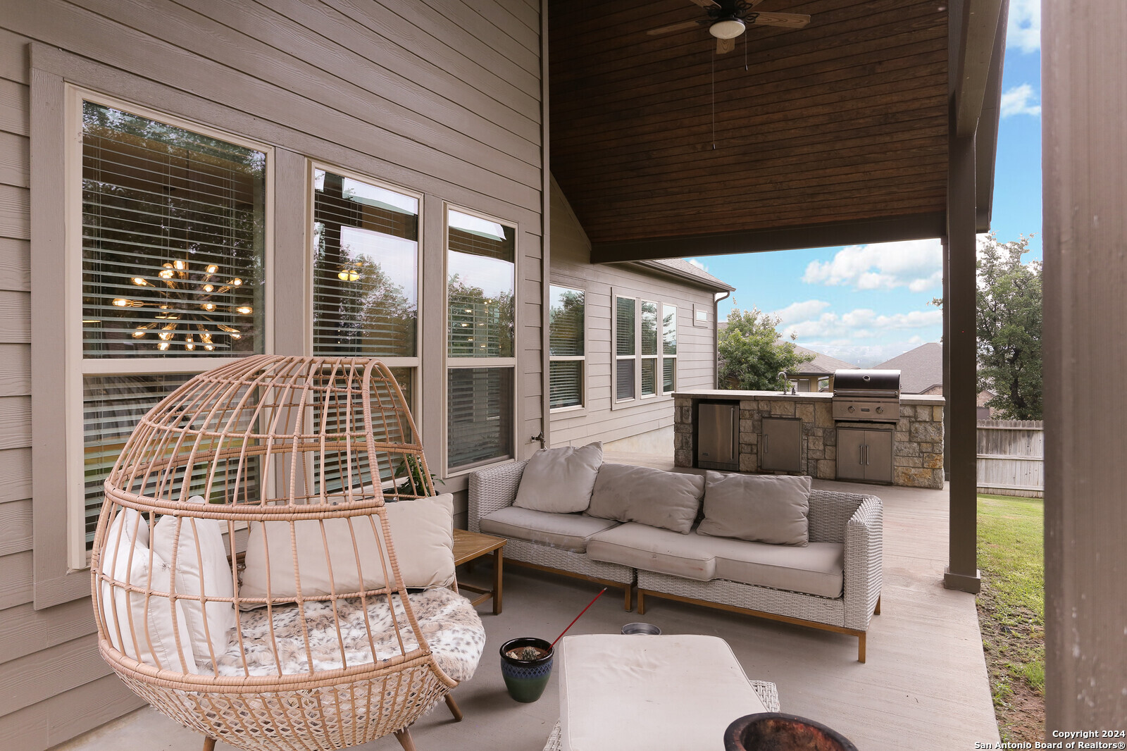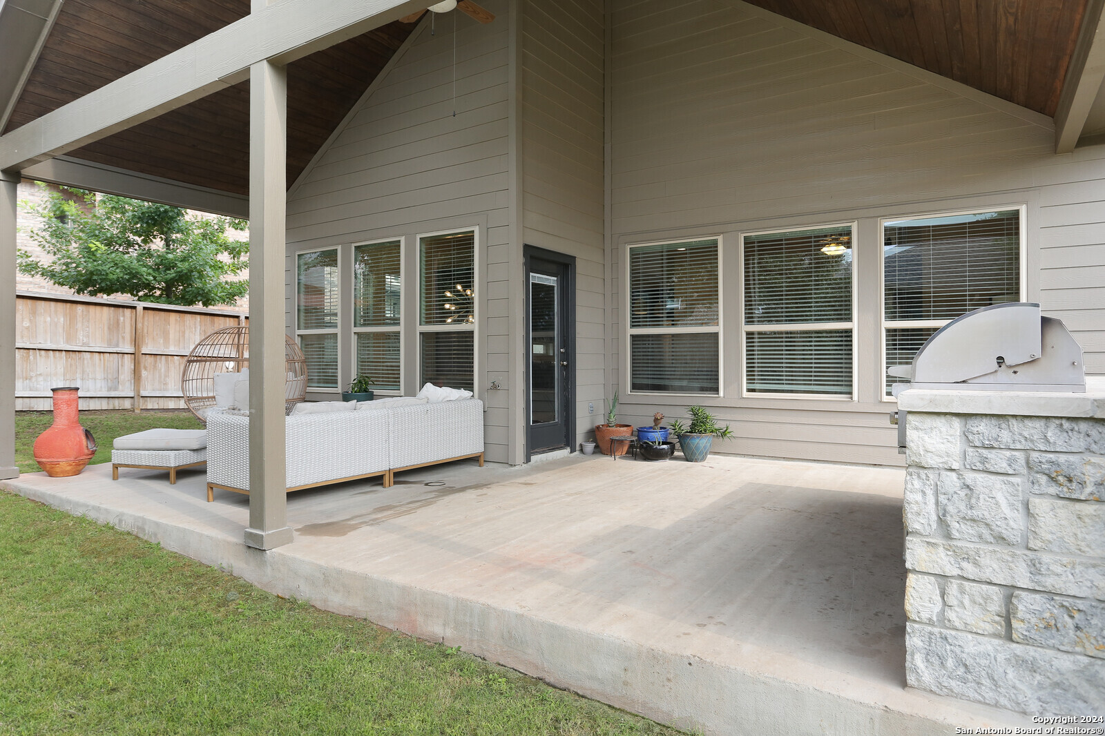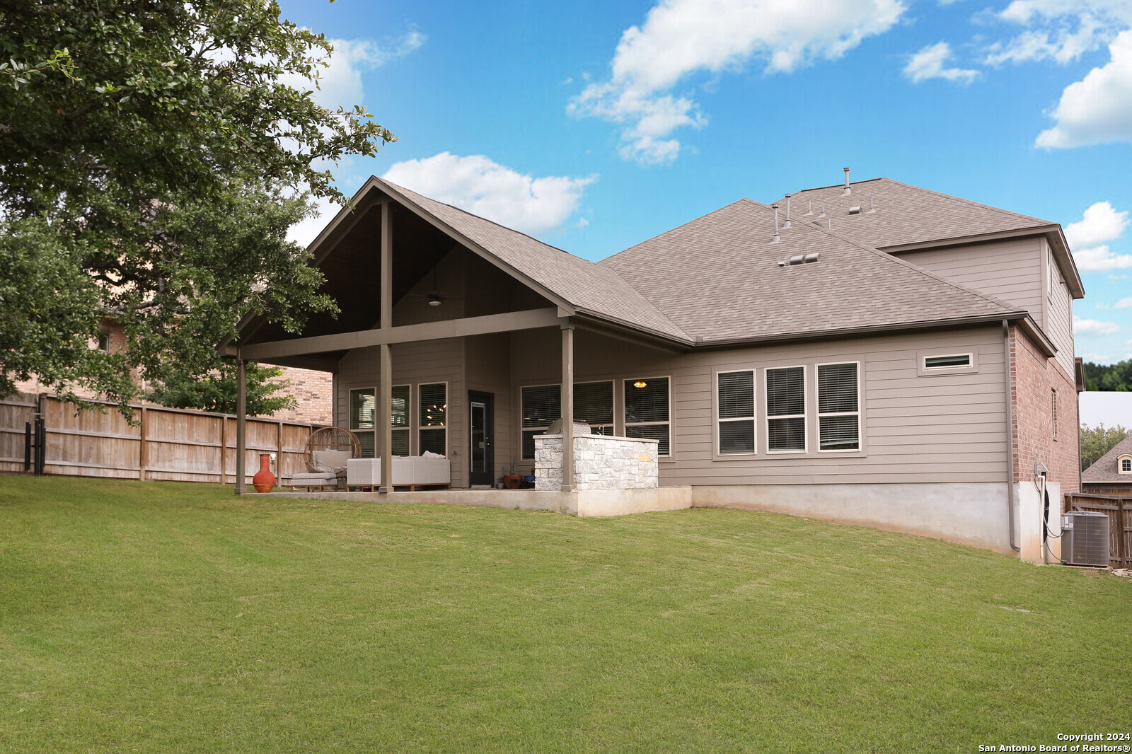 This one is a show stopper! Built in 2018, this 4 bed/ 3 bath +/- 3193 sqft home sits on a cul-de-sac with an oversized lot in the gated Two Creeks community! The home welcomes you to its spacious living room with natural light from the large airy windows. Architectural detail and high ceilings provide unique character. The kitchen features a huge island, lots of cabinets for storage and granite countertops. The primary bedroom downstairs has a walk-in closet and full bath with a separate tub & shower and double vanities. Also on the first floor, you will find an office, a bonus space, and a secondary bedroom suite. Upstairs is complete with the additional bedrooms and a huge loft that can flex for a playroom, media space, or anything you may need! Relax on the large, covered vaulted patio - complete with an outdoor kitchen. Mature trees provide privacy while the hilltop offers long-range views. Northside ISD. Welcome Home!