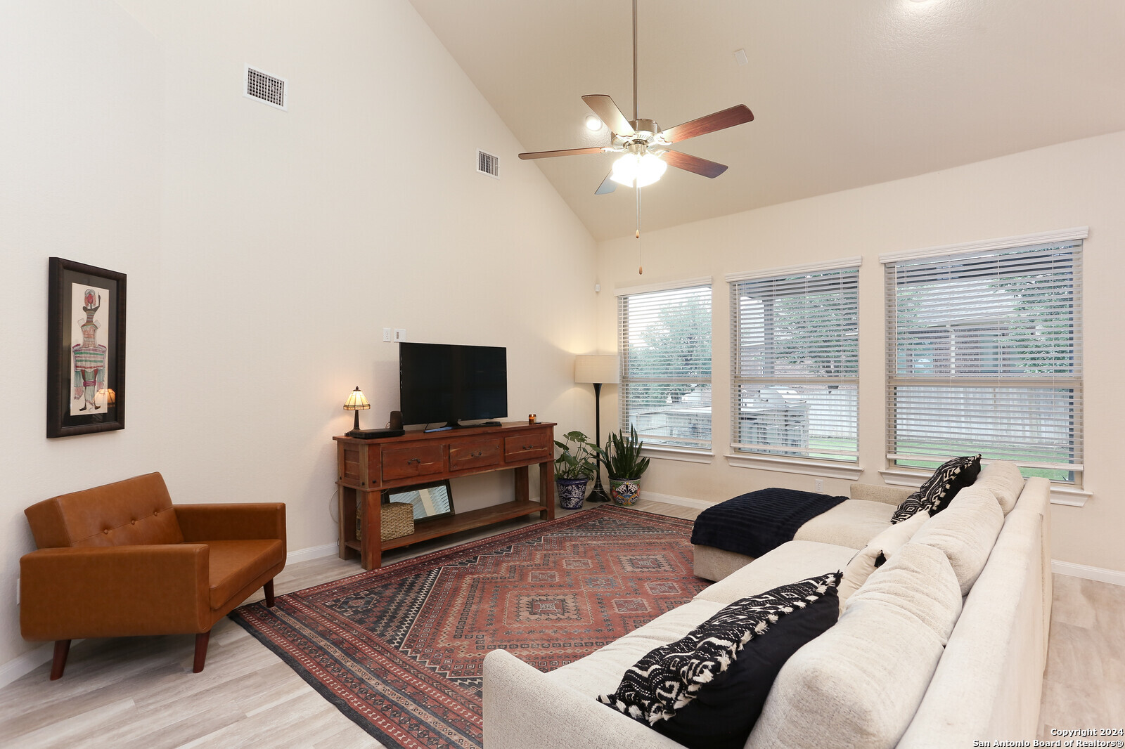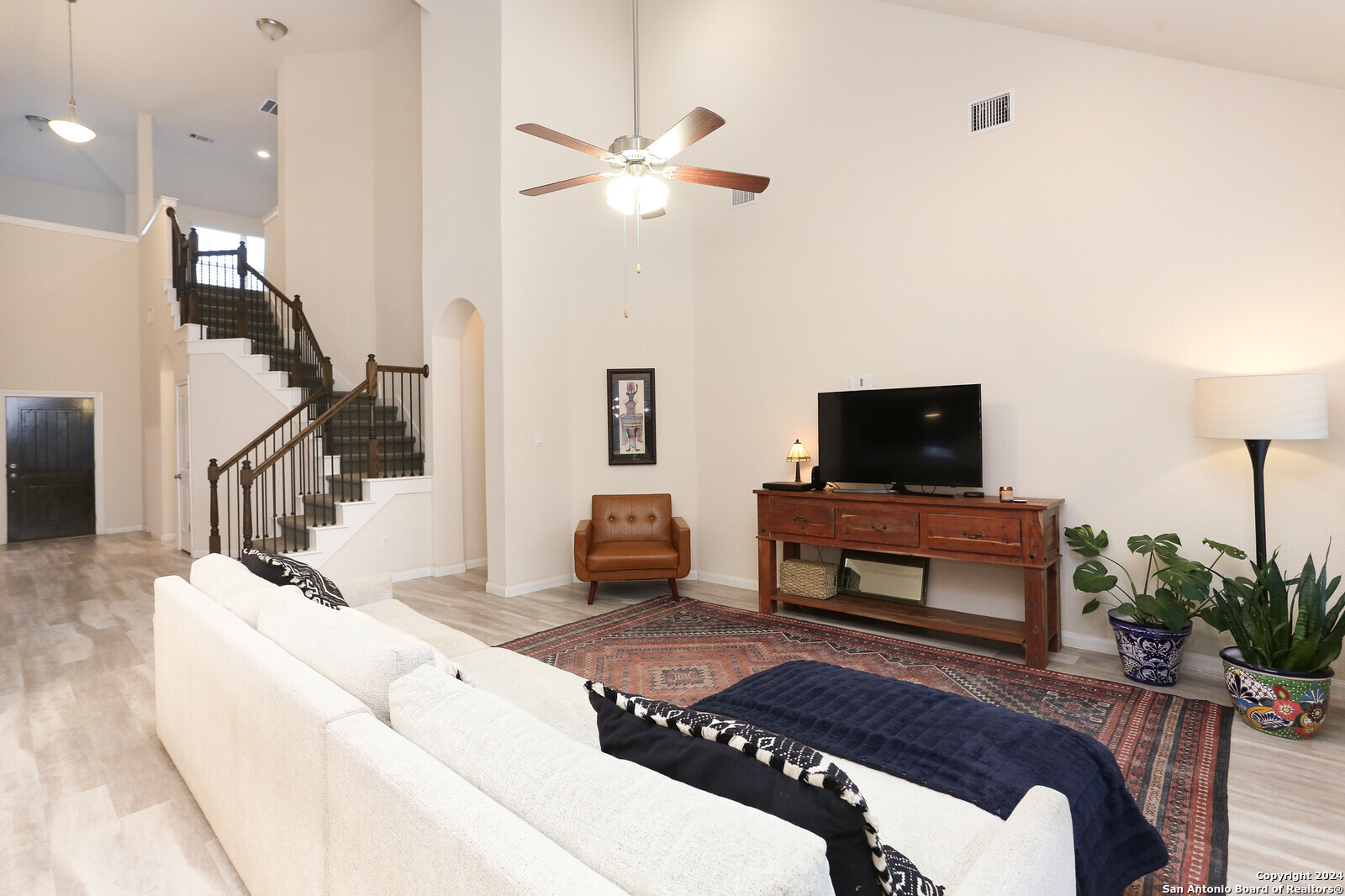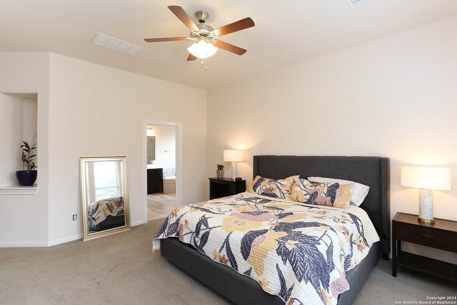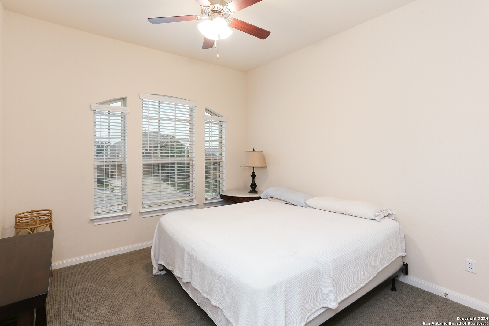This one is a show stopper! Built in 2018, this 4 bed/ 3 bath +/- 3193 sqft home sits on a cul-de-sac with an oversized lot in the gated Two Creeks community! The home welcomes you to its spacious living room with natural light from the large airy windows. Architectural detail and high ceilings provide unique character. The kitchen features a huge island, lots of cabinets for storage and granite countertops. The primary bedroom downstairs has a walk-in closet and full bath with a separate tub & shower and double vanities. Also on the first floor, you will find an office, a bonus space, and a secondary bedroom suite. Upstairs is complete with the additional bedrooms and a huge loft that can flex for a playroom, media space, or anything you may need! Relax on the large, covered vaulted patio - complete with an outdoor kitchen. Mature trees provide privacy while the hilltop offers long-range views. Northside ISD. Welcome Home!