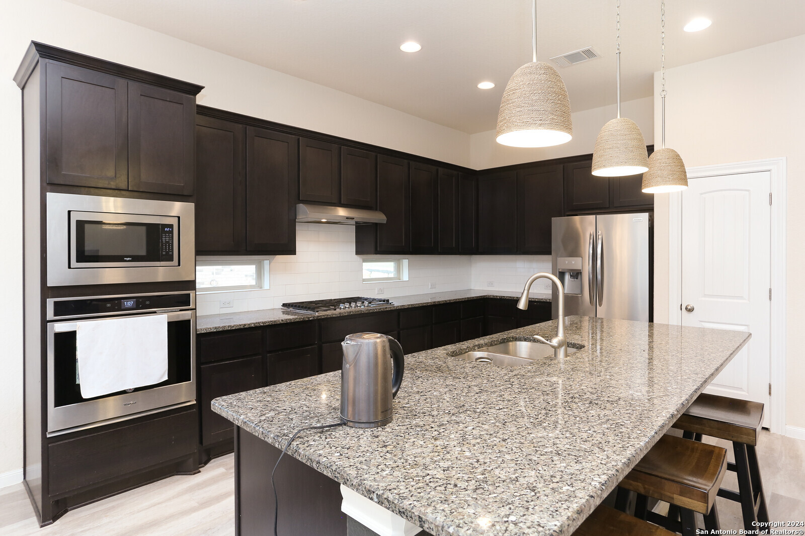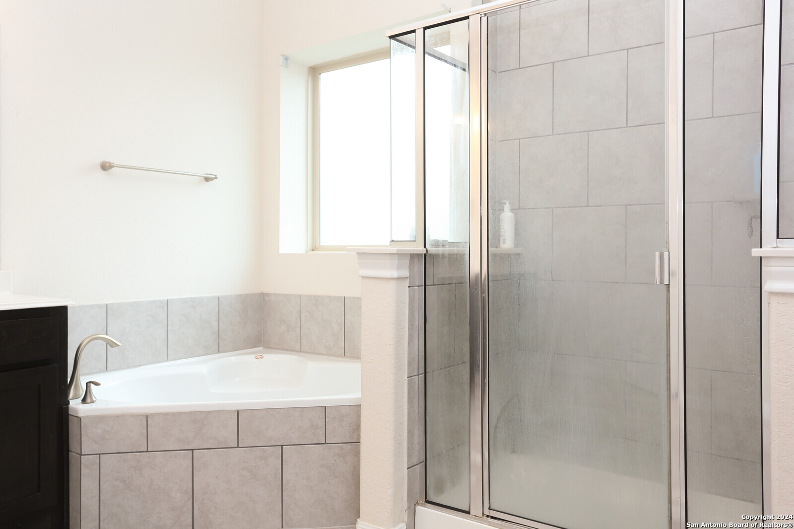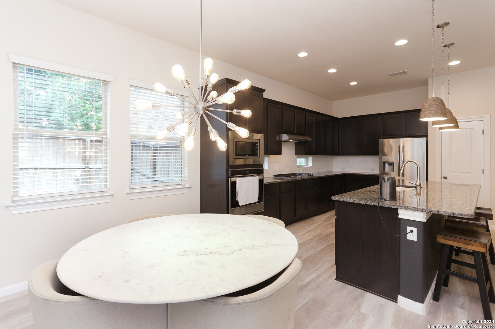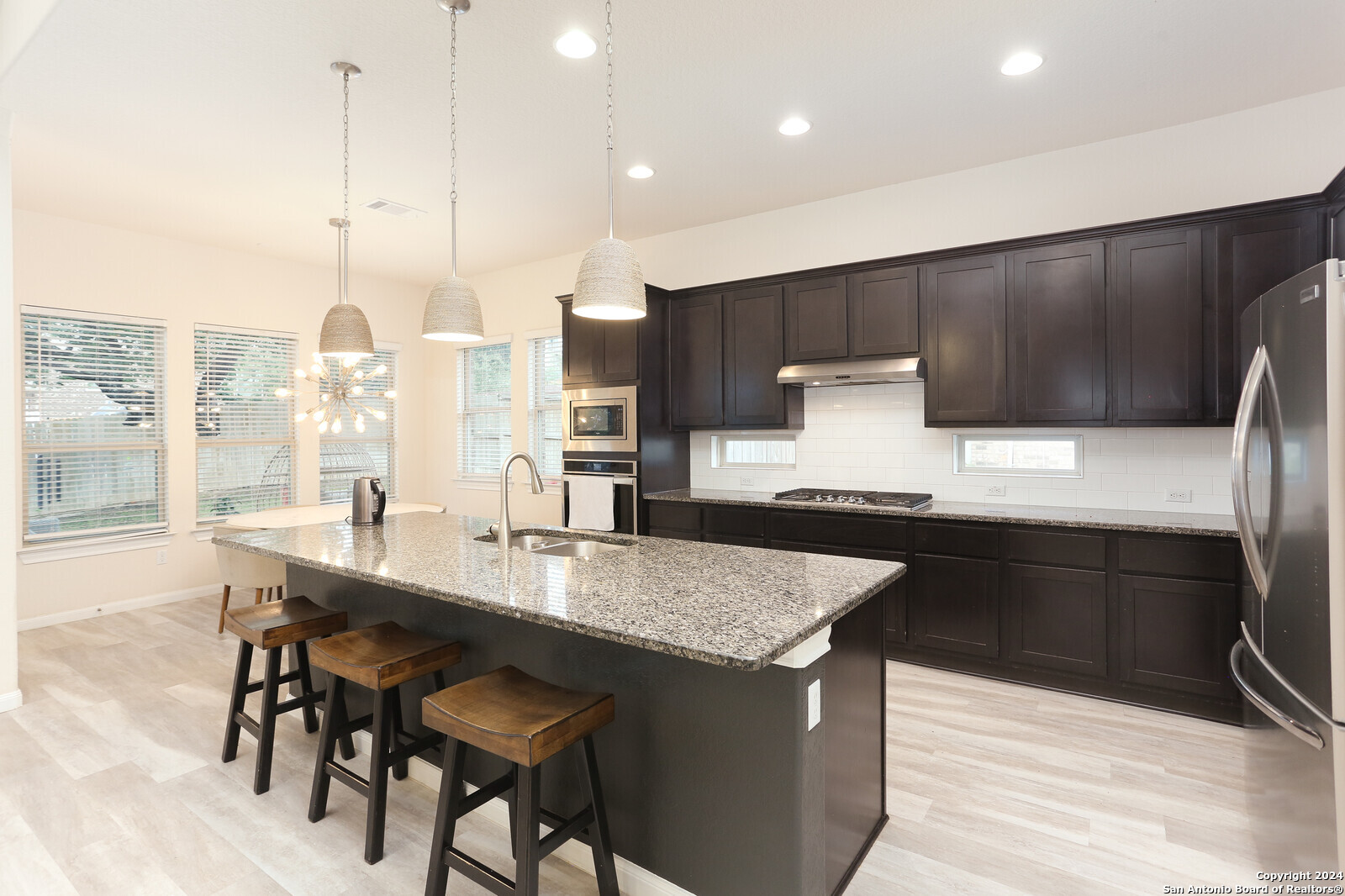 This one is a show stopper! Built in 2018, this 4 bed/ 3 bath +/- 3193 sqft home sits on a cul-de-sac with an oversized lot in the gated Two Creeks community! The home welcomes you to its spacious living room with natural light from the large airy windows. Architectural detail and high ceilings provide unique character. The kitchen features a huge island, lots of cabinets for storage and granite countertops. The primary bedroom downstairs has a walk-in closet and full bath with a separate tub & shower and double vanities. Also on the first floor, you will find an office, a bonus space, and a secondary bedroom suite. Upstairs is complete with the additional bedrooms and a huge loft that can flex for a playroom, media space, or anything you may need! Relax on the large, covered vaulted patio - complete with an outdoor kitchen. Mature trees provide privacy while the hilltop offers long-range views. Northside ISD. Welcome Home!