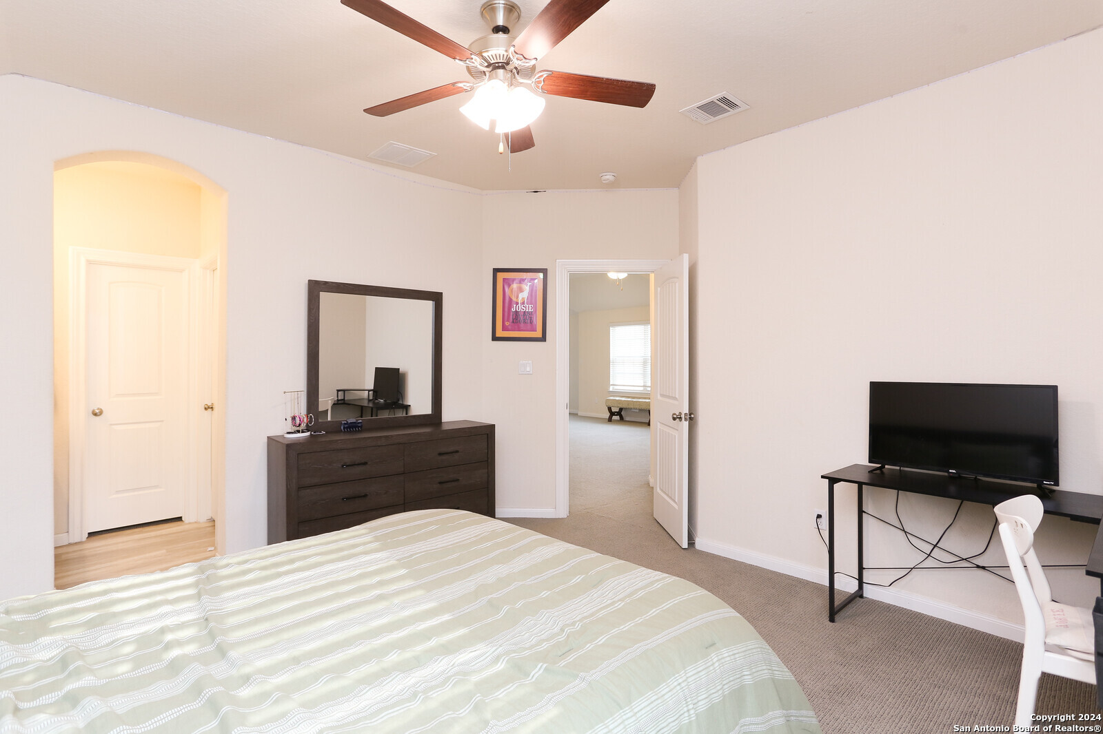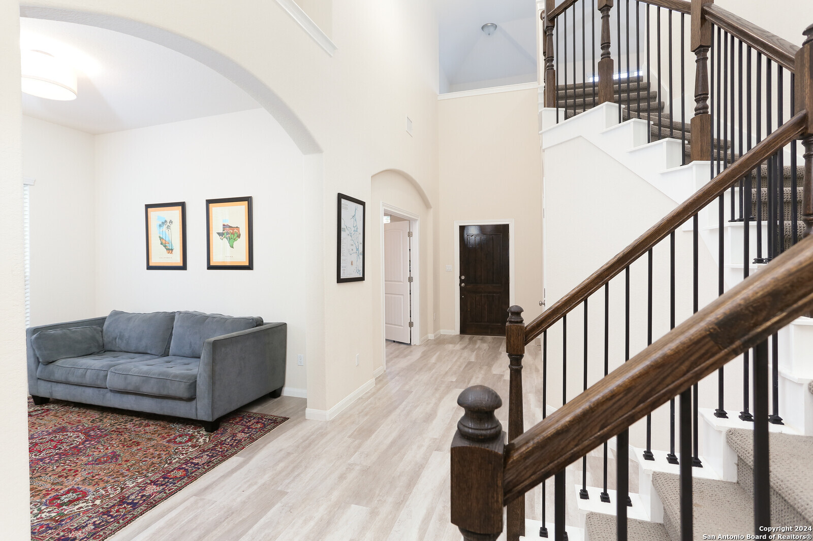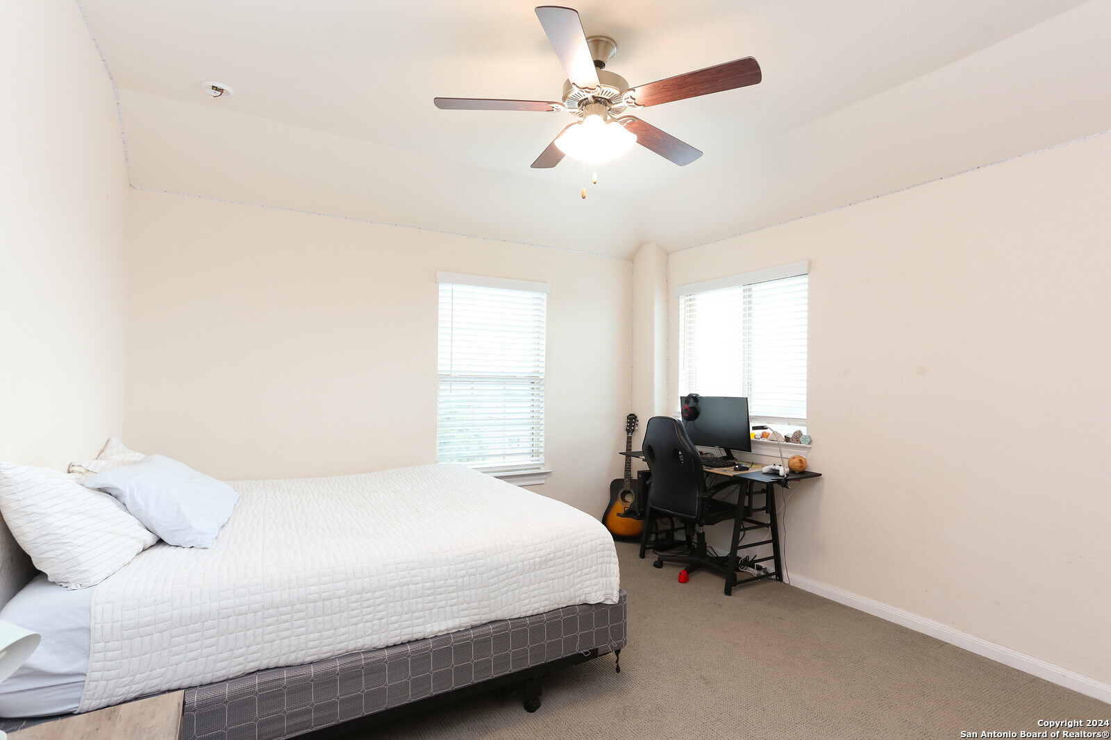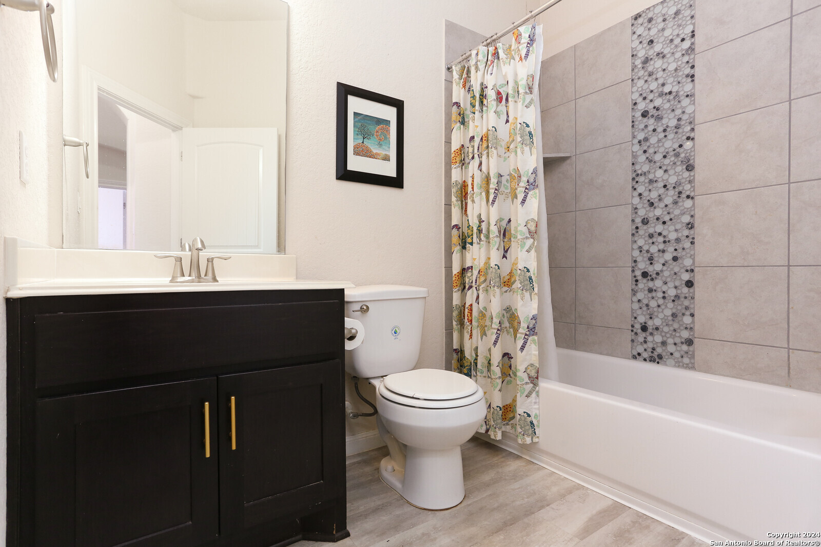 This one is a show stopper! Built in 2018, this 4 bed/ 3 bath +/- 3193 sqft home sits on a cul-de-sac with an oversized lot in the gated Two Creeks community! The home welcomes you to its spacious living room with natural light from the large airy windows. Architectural detail and high ceilings provide unique character. The kitchen features a huge island, lots of cabinets for storage and granite countertops. The primary bedroom downstairs has a walk-in closet and full bath with a separate tub & shower and double vanities. Also on the first floor, you will find an office, a bonus space, and a secondary bedroom suite. Upstairs is complete with the additional bedrooms and a huge loft that can flex for a playroom, media space, or anything you may need! Relax on the large, covered vaulted patio - complete with an outdoor kitchen. Mature trees provide privacy while the hilltop offers long-range views. Northside ISD. Welcome Home!