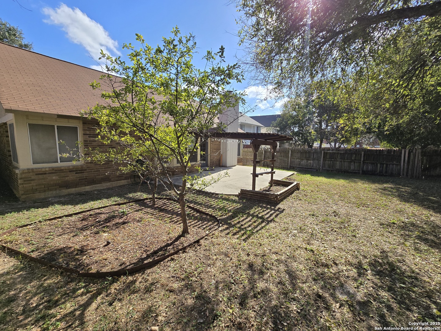 This residence is located within the New Territories subdivision, on a cul-de-sac surrounded by mature trees providing plenty of shade. This single-story home features four bedrooms and two bathrooms with a two car garage. Other great features include an eat-in kitchen bar, breakfast nook, spacious living room with vaulted ceilings, a fireplace that creates a warm inviting atmosphere, no carpet throughout the entire home and last but not least, the master suite is completely separate from the other bedrooms providing enough space and privacy for everyone. The spacious backyard features a pergola and storage unit and is ready for the summer barbeques with friends and family. You don't want to miss this opportunity, schedule your showing today!