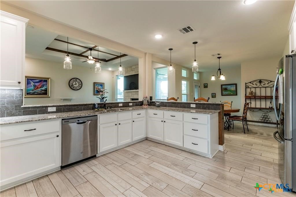 Welcome to this spacious and elegant home nestled in the serene beauty of Salado. Situated on a sprawling half-acre lot, this three-bedroom, 2 1/2 bath residence boasts a thoughtful open floor plan that seamlessly blends functionality with comfort. Plus, with no carpet throughout, maintenance is a breeze, allowing you to spend more time enjoying the comforts of home. As you enter, you’re greeted by an inviting atmosphere accentuated by the abundance of natural light flooding through the large windows. The heart of the home is the expansive kitchen, perfect for culinary enthusiasts, featuring ample counter space, modern appliances, and two dining areas ideal for entertaining guests or enjoying family meals. The primary bedroom is a luxurious retreat, offering generous space and tranquility. Pamper yourself in the en-suite primary bath, complete with a spacious walk-in shower, indulgent garden tub, and dual sinks, creating a spa-like experience right at home. With a three-car garage, there’s plenty of room for parking and storage. Step outside to discover the enchanting outdoor space, complete with an outdoor kitchen, perfect for alfresco dining and enjoying the mild Salado evenings. Conveniently located close to downtown Salado and I-35, this home offers easy access to shopping, dining, and entertainment while still maintaining a peaceful and quiet neighborhood ambiance. Don’t miss your chance to experience the epitome of suburban luxury living in the charming Salado area.