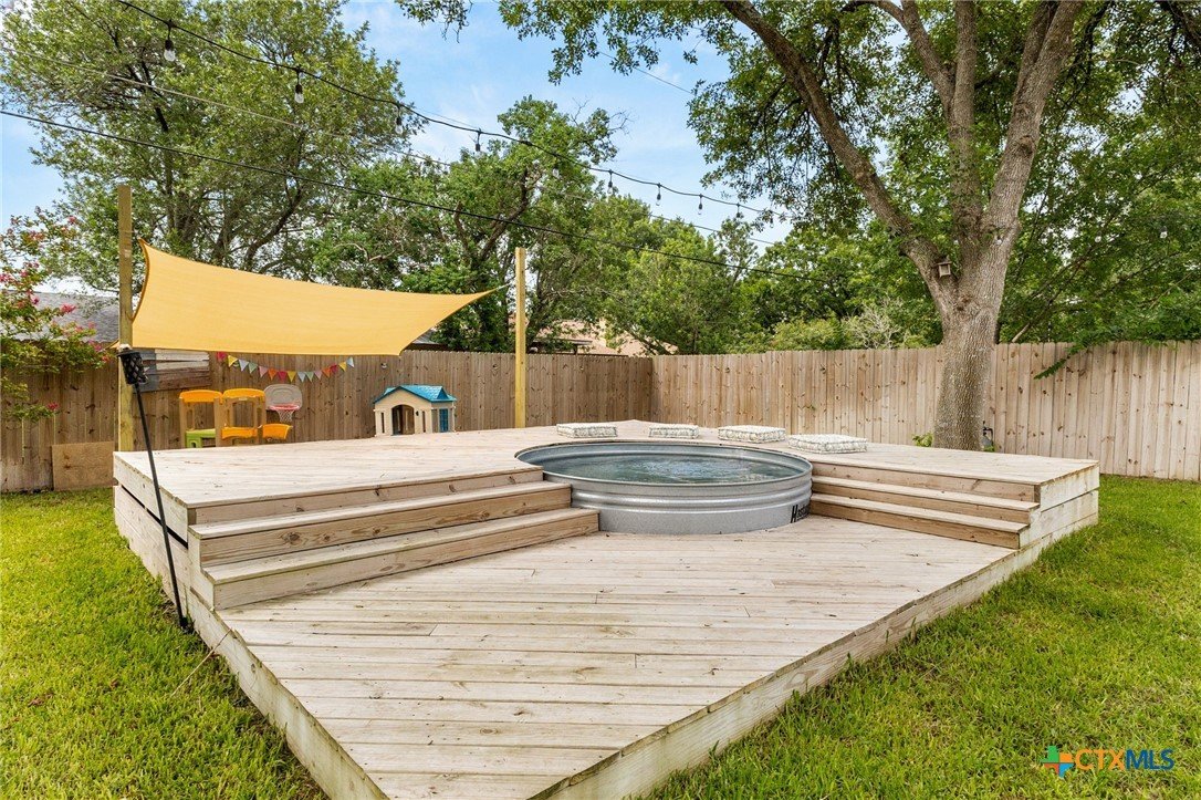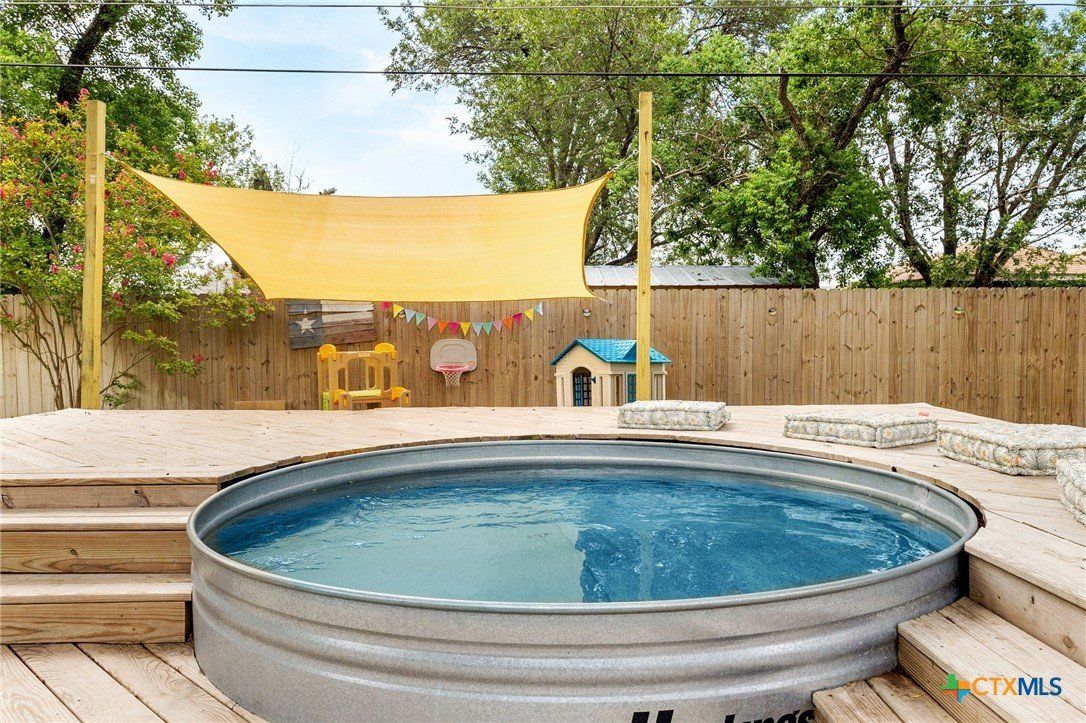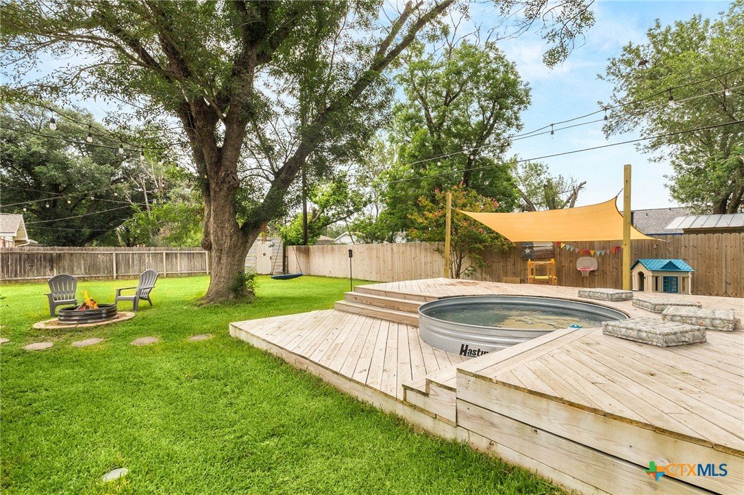 Welcome to 812 Merritt Dr—an updated 3-bedroom, 2-bath home nestled in a well-established neighborhood filled with mature shade trees. Offering the perfect mix of comfort, convenience, and outdoor living, this home is ready to impress. Inside, enjoy a warm and functional layout featuring custom accent walls, wood-style flooring, and a spacious primary suite with a walk-in closet and private bath. The bright kitchen boasts open shelving and a cozy dining area bathed in natural light. Step out back to your very own retreat—complete with a stock tank pool, expansive wood deck, fire pit, covered patio, and a turf play zone for both fun and relaxation. Added value: This home has both city water and a private water well. The front and backyard sprinkler system runs off the well, helping you save on utilities while keeping the lawn lush. Ideally located near Lockhart High School, Navarro Elementary, and Clear Fork Elementary, this property blends small-town charm with modern comfort. Schedule your private showing today—this one won’t last!