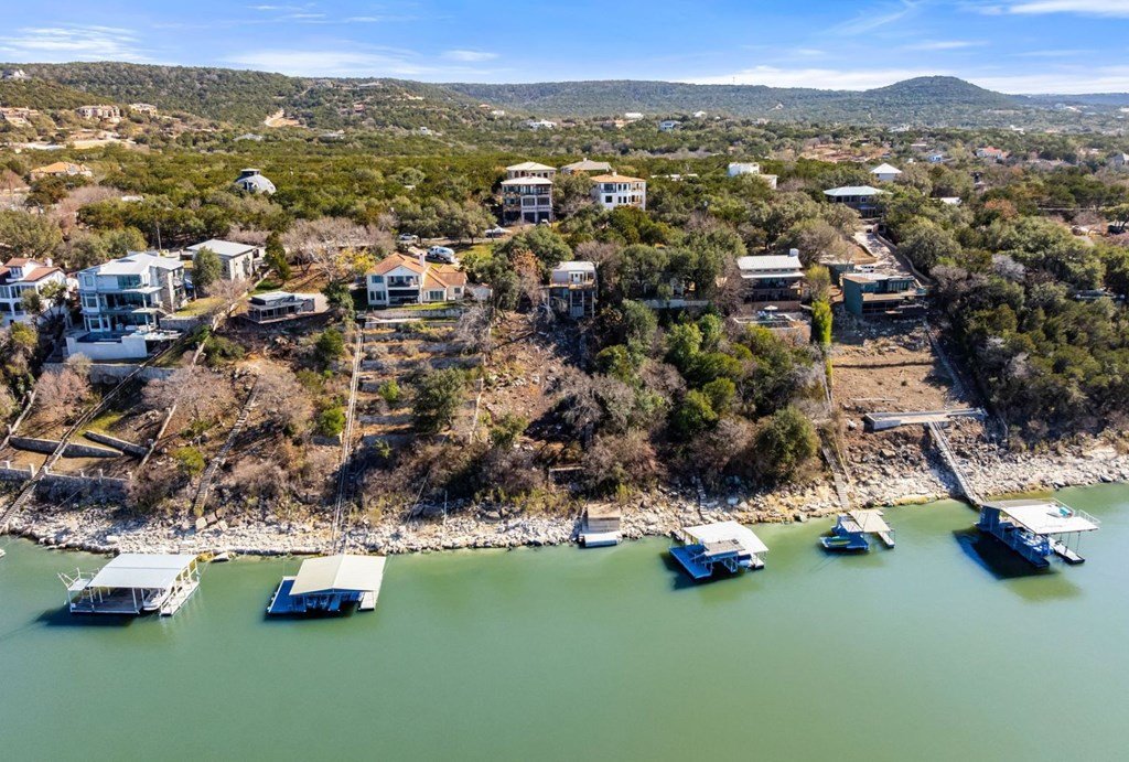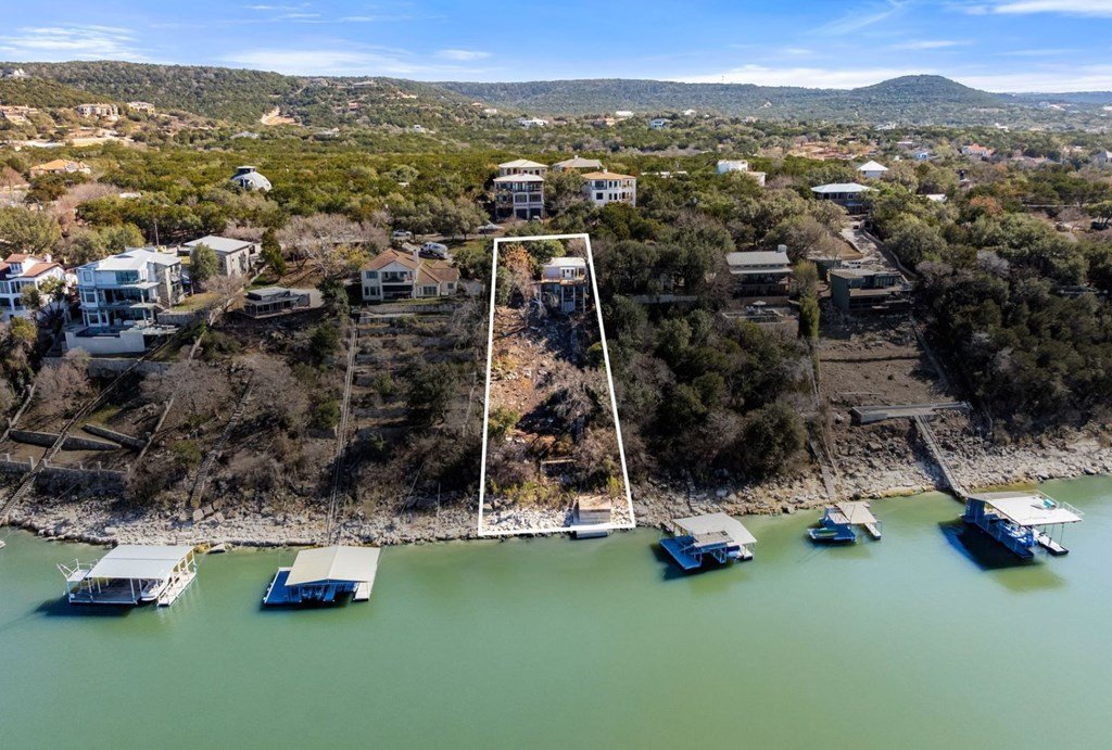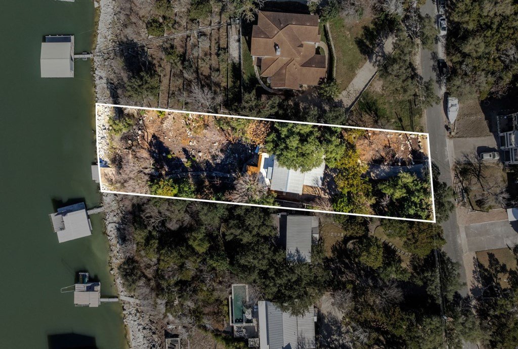 This deep-water Lake Travis property in Volente offers main-body waterfront, incredible lake views, and one of the best values currently available at its price point. With deep-water frontage, the property is well positioned for a future dock while already providing shoreline access. Elevated above the lake, the home captures sweeping lake views and year-round usability. The home will convey with newly purchased furnishings, allowing buyers to enjoy the property immediately or update at their own pace. Well suited for use as a private lake house or potential for short-term rental with approval from Village of Volente. The floor plan includes three bedrooms and two and a half bathrooms, with an open main level featuring a spacious kitchen, dining area, multiple living spaces and access to two expansive decks that extend the living space outdoors. The upper-level bedroom enjoys stunning lake views, private deck access, and a dedicated bath and study. Located in a quiet waterfront neighborhood with a single point of entry, the setting feels private while remaining highly convenient—just 10 minutes to Four Points (620 & 2222) for shopping, dining, and entertainment, and approximately 30 minutes to downtown Austin. The property is zoned to highly rated schools, including Grandview Hills, Four Points Middle, and Vandegrift High School, and is close to local favorites such as Volente Beach Club, Beachside Billy's, Shack 512, Stiechen Park, and a nearby fire station. Offering deep water, main-lake access, panoramic views, and immediate usability, this property stands out as a rare opportunity on Lake Travis—priced at lot value and ready to enjoy from day one.
