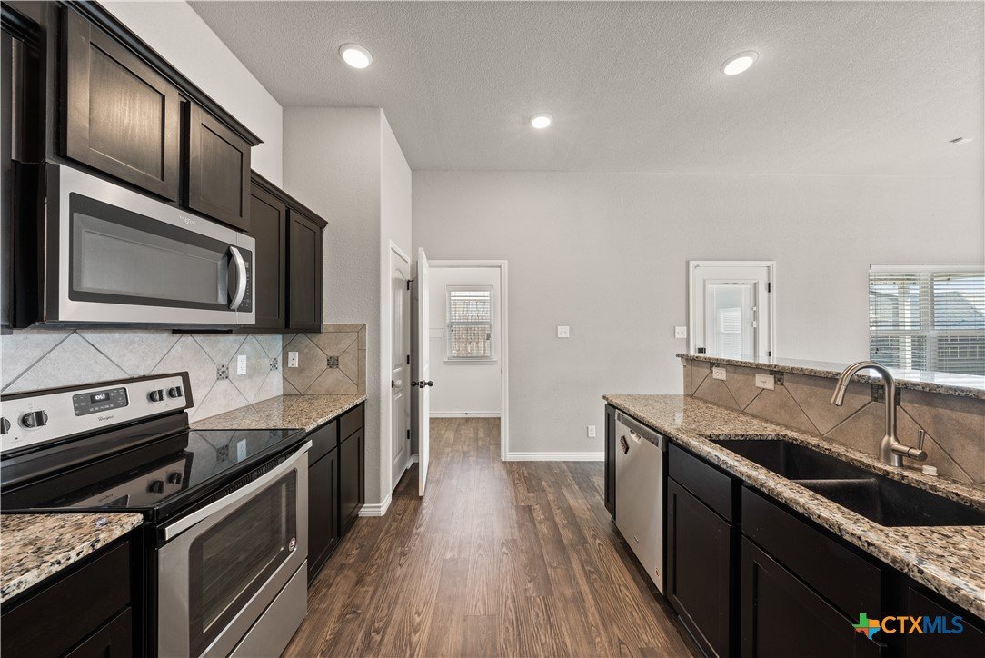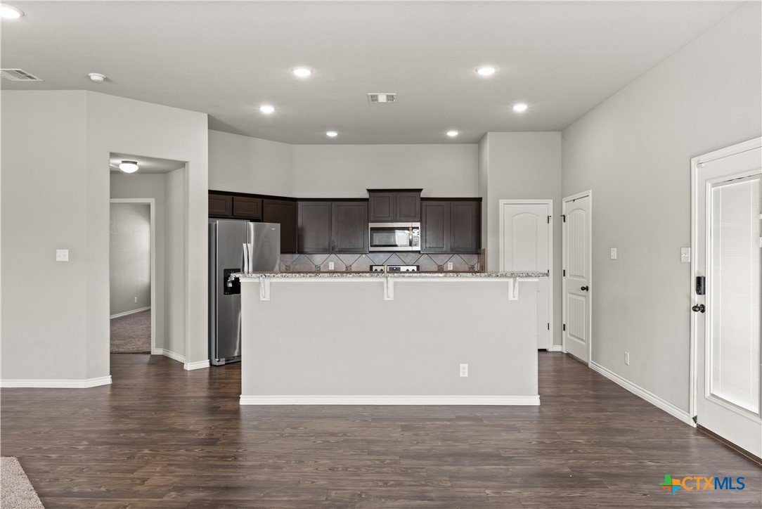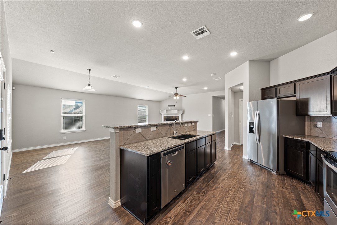 This open floor plan 4-bedroom, 3-bathroom home In a peaceful neighborhood is wonderfully designed, with wood-looking vinyl tile and a charming wood-burning fireplace creating a peaceful and inviting atmosphere. Enjoy your mornings on the island bar or more formal meals in the dining area. This home offers plenty of space for family and visiting guests. This home is conveniently located, near Scott & White Hospital as well as all of South Temple’s shopping and dining. This home has a NEW ROOF replaced in July 2024!
