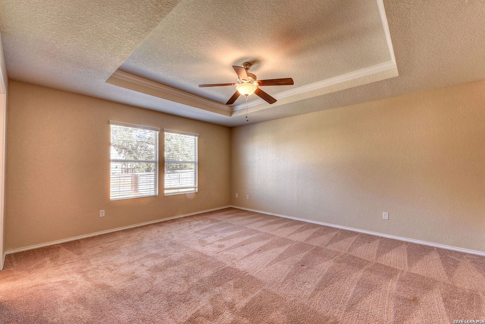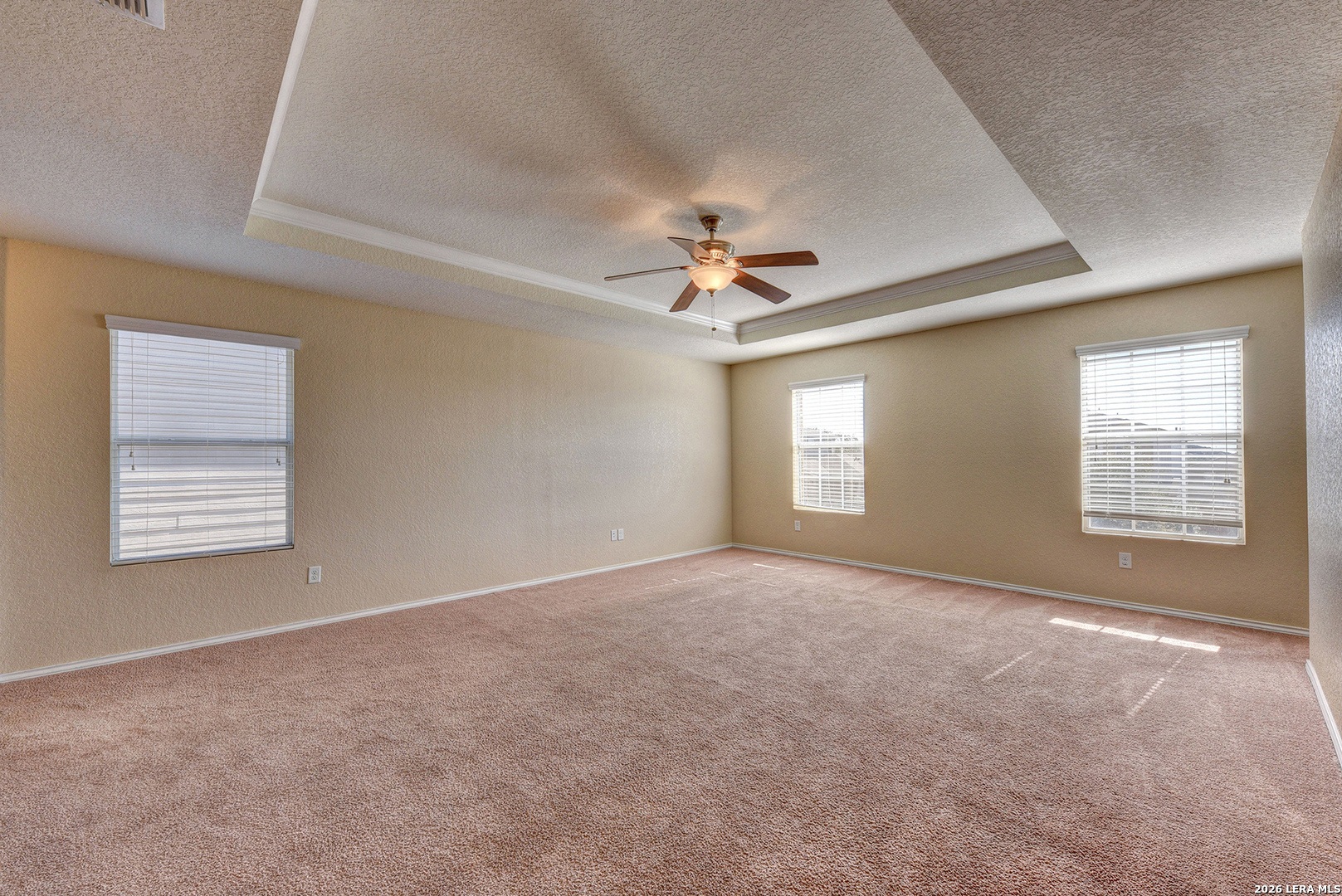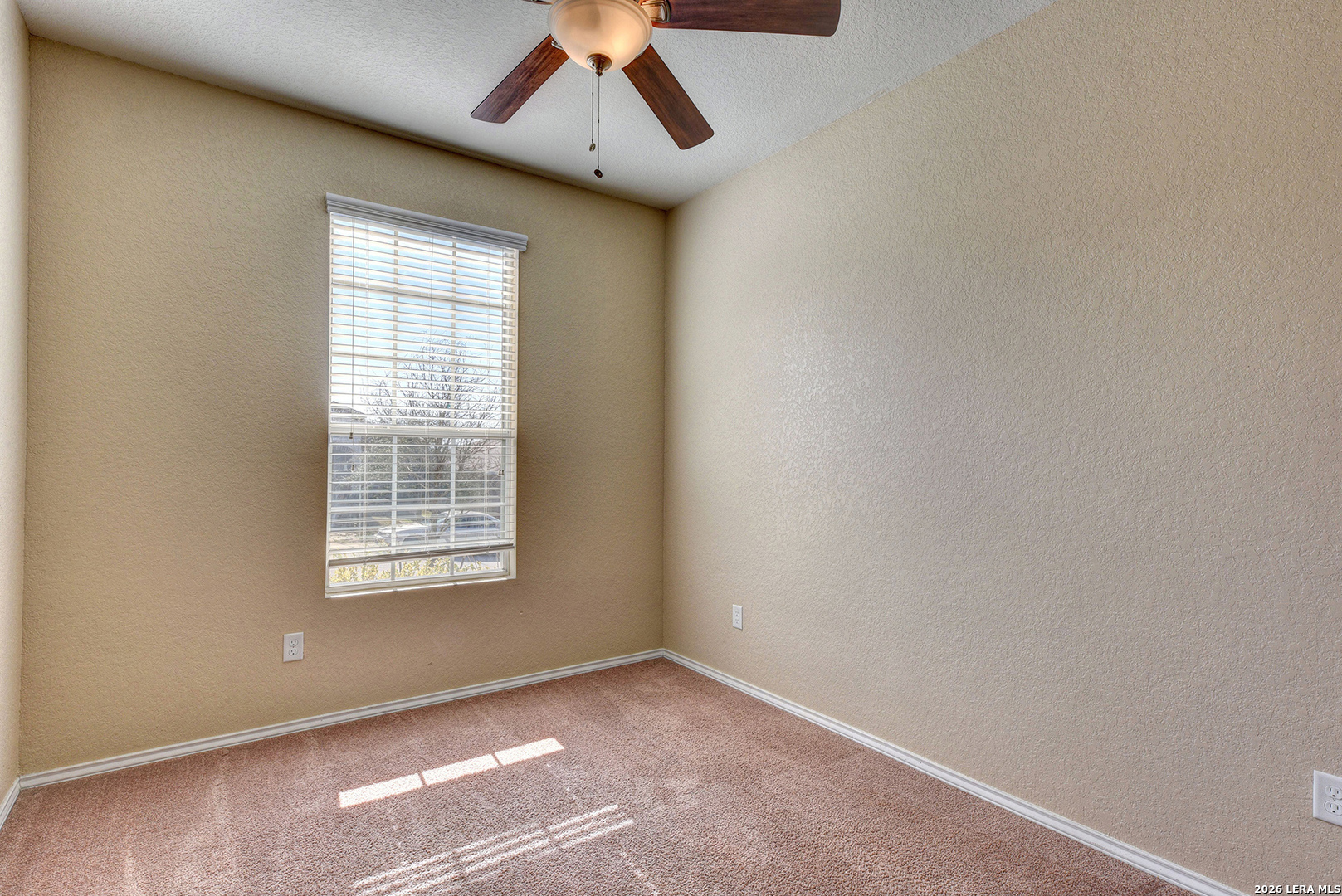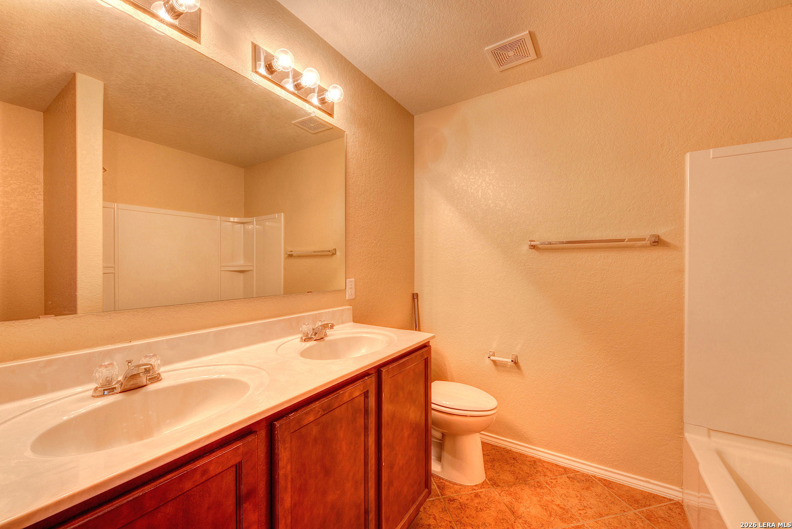 Spacious two-story home in the desirable Ridge of Silverado Hills subdivision, ready for move-in. Step inside to an open and inviting layout where the living area flows seamlessly into the kitchen, making it easy to gather with family and friends. The kitchen features granite countertops, a tile backsplash, a center island for extra prep space, and plenty of cabinetry to keep everything organized. A secondary bedroom and full bath on the first floor provide a great option for guests or a private mother-in-law suite. Upstairs, you'll find new carpeting throughout and an oversized game room that offers the perfect spot for movie nights, a playroom, or a second living space. The spacious primary suite features a recessed ceiling, ceiling fan, and a relaxing bathroom with a double vanity, garden tub, separate stand-up shower, and a large walk-in closet. The laundry room is conveniently located upstairs near the bedrooms. Step outside to an oversized backyard with a privacy fence and patio slab-ideal for weekend barbecues or simply enjoying the outdoors. Conveniently located near major highways, shopping, and dining, this home offers both comfort and accessibility.
