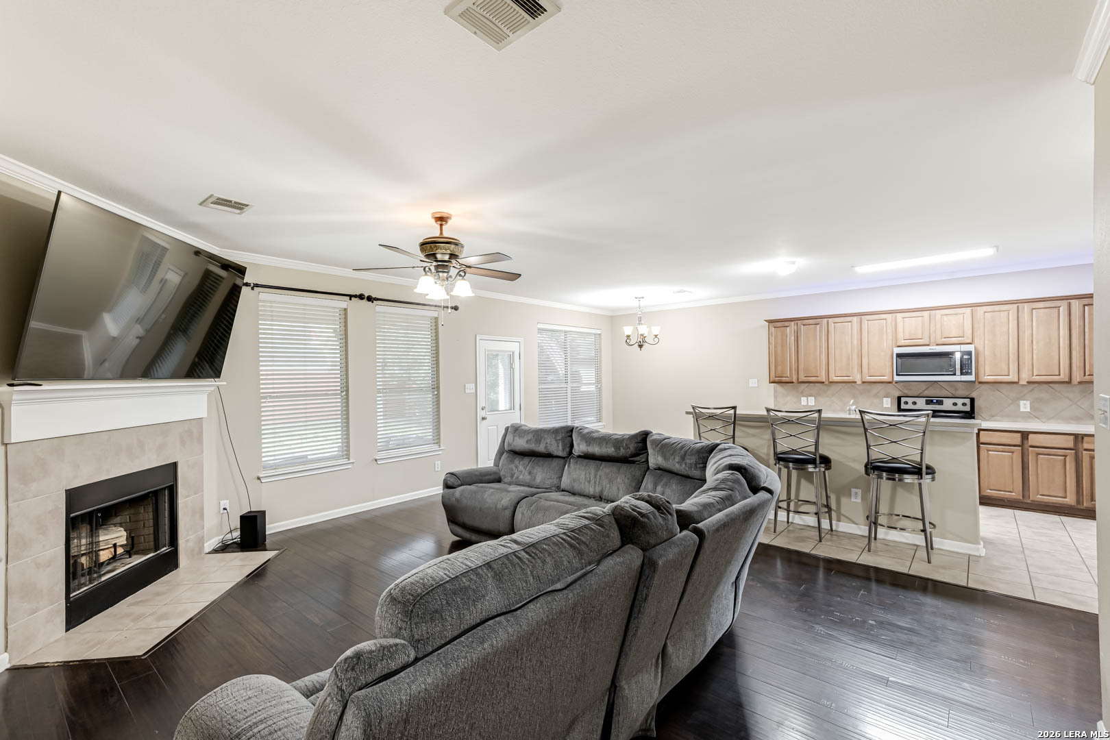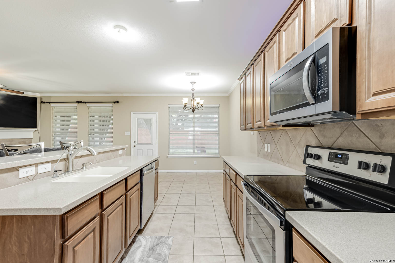 Welcome home to this perfectly priced 4-bedroom, 3-bath residence located on a spacious corner lot in the highly sought-after NISD school district, just minutes from shopping, dining, and everyday conveniences. Step inside to find no carpet downstairs and a private in-law suite with direct access to a full walk-in shower, ideal for guests or multigenerational living. Elegant crown molding throughout and updated light fixtures add a polished touch. Upstairs features a versatile loft that can easily convert into a 5th bedroom, along with a fully remodeled second-floor bathroom showcasing modern finishes. Enjoy outdoor living on the finished back porch-nearly the size of the home itself-perfect for entertaining or relaxing. Additional upgrades include a 4-year-old roof, HVAC condenser and fan replaced in 09/22 (receipts available), a sealed garage floor, refreshed front door paint, and a recently resealed back patio. This move-in-ready home offers space, flexibility, and exceptional value.
