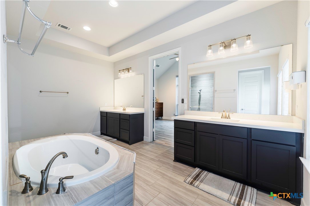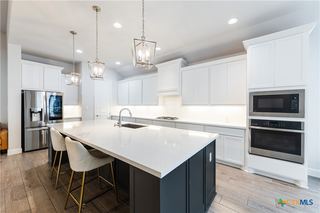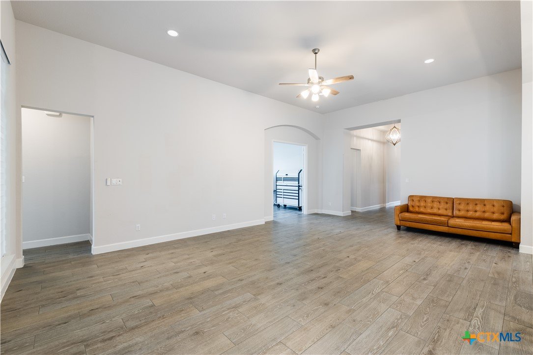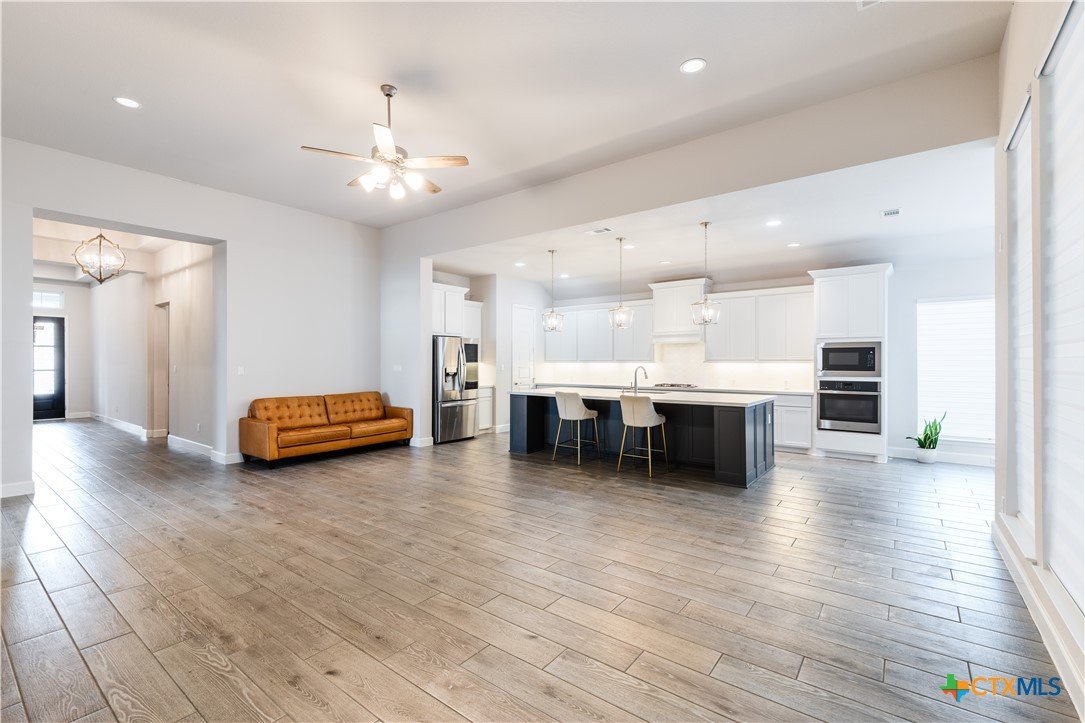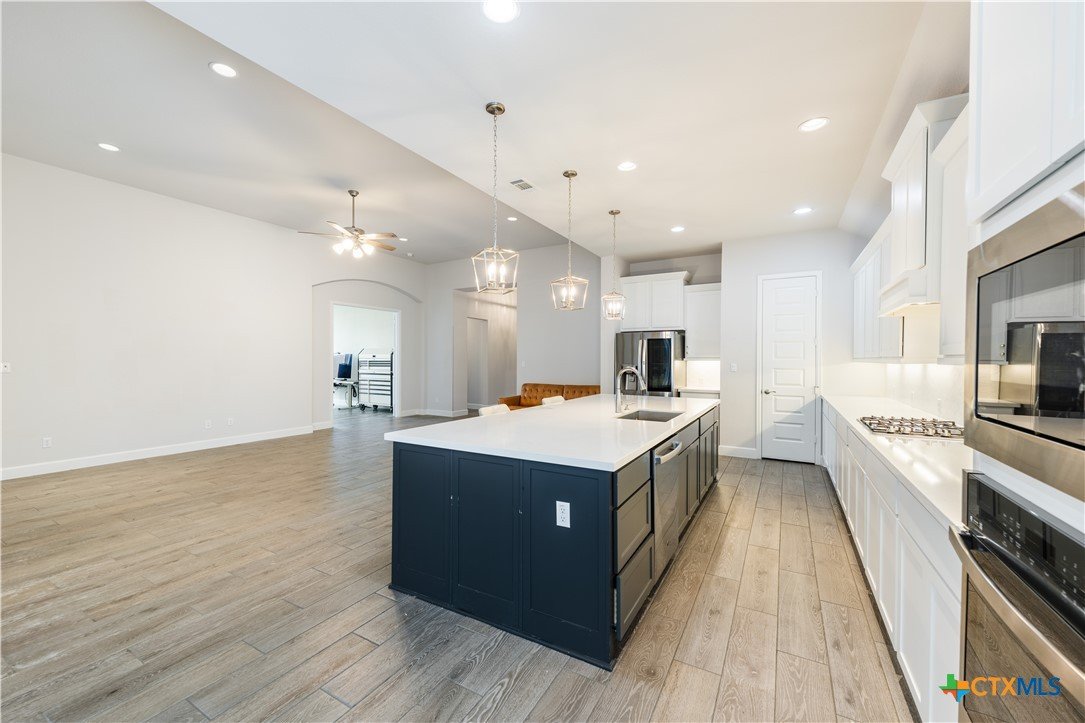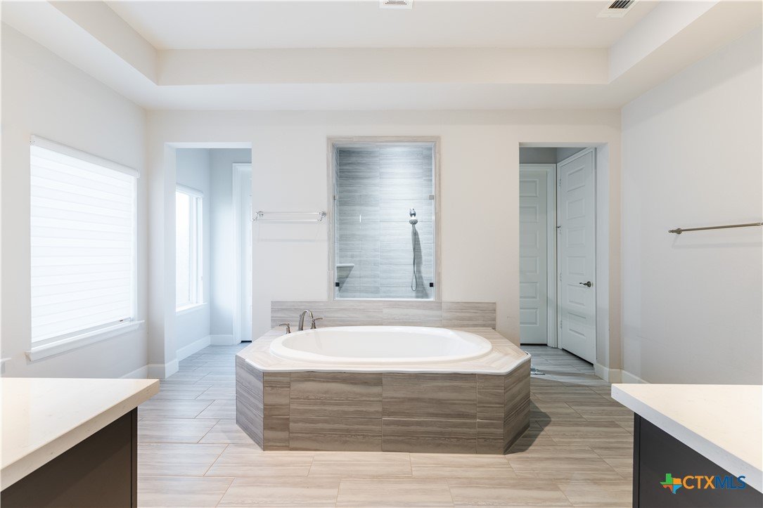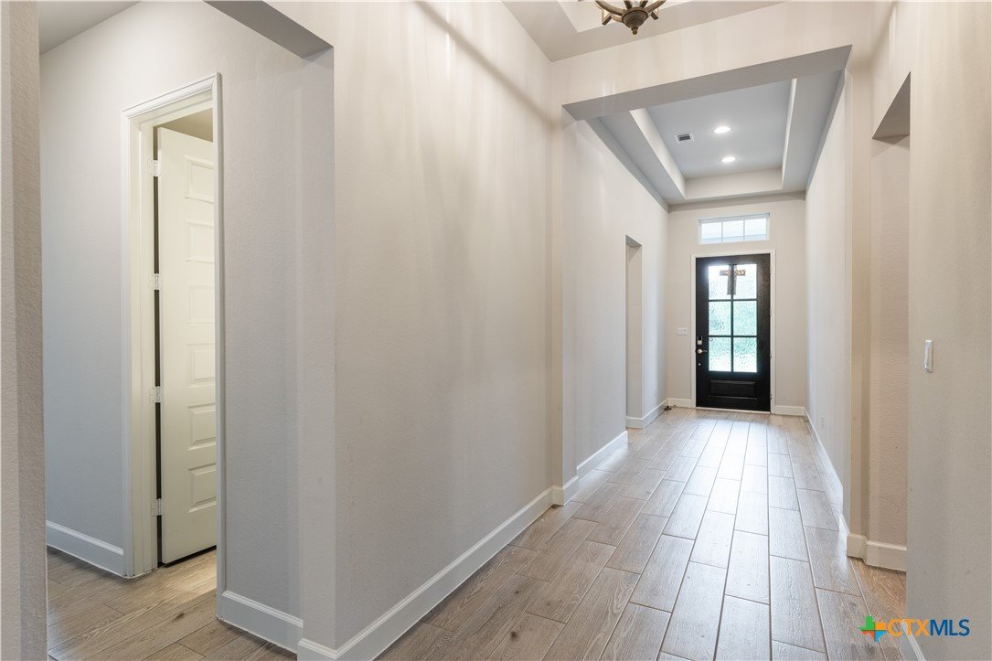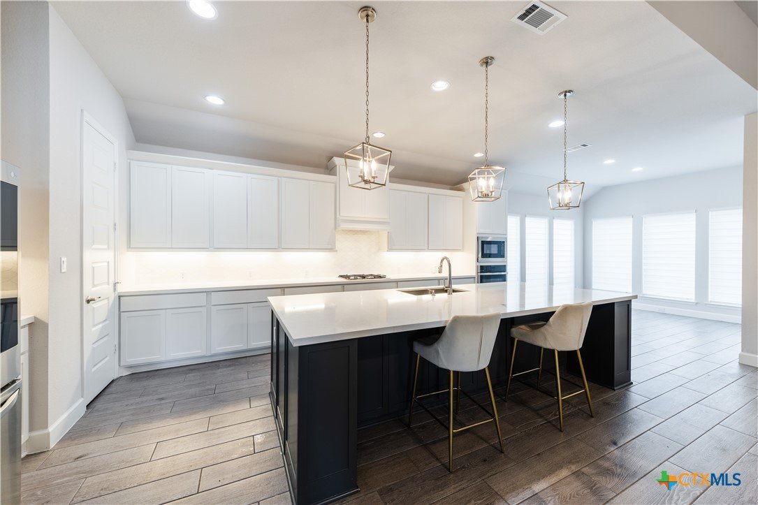 Welcome to 817 Craven Hill Lane, a beautifully designed single-story home with over 2,900 square feet of living space, located in the award-winning Bryson community in Leander. Offering the perfect blend of comfort, space, and style, this 4-bedroom, 3.5-bathroom home is ideal for those seeking upscale one-level living in a vibrant neighborhood. From the moment you step inside, you’ll be greeted by an open and airy floor plan featuring high ceilings, abundant natural light, and elegant finishes throughout. The spacious living room seamlessly flows into a gourmet kitchen equipped with stainless steel appliances, an oversized island, sleek countertops, and ample cabinetry—perfect for entertaining or daily living. The private primary suite is a true retreat, boasting a spa-like en-suite bathroom with dual vanities, a soaking tub, walk-in shower, and a generous walk-in closet. Three additional bedrooms offer plenty of space for guests, family, or a home office, with one secondary bedroom featuring its own en-suite bath—ideal for multi-generational living or visiting guests. Enjoy evenings on your covered patio in the private backyard, or take advantage of all the resort-style amenities Bryson has to offer—including a community pool, parks, trails, catch-and-release fishing pond, and planned resident events.