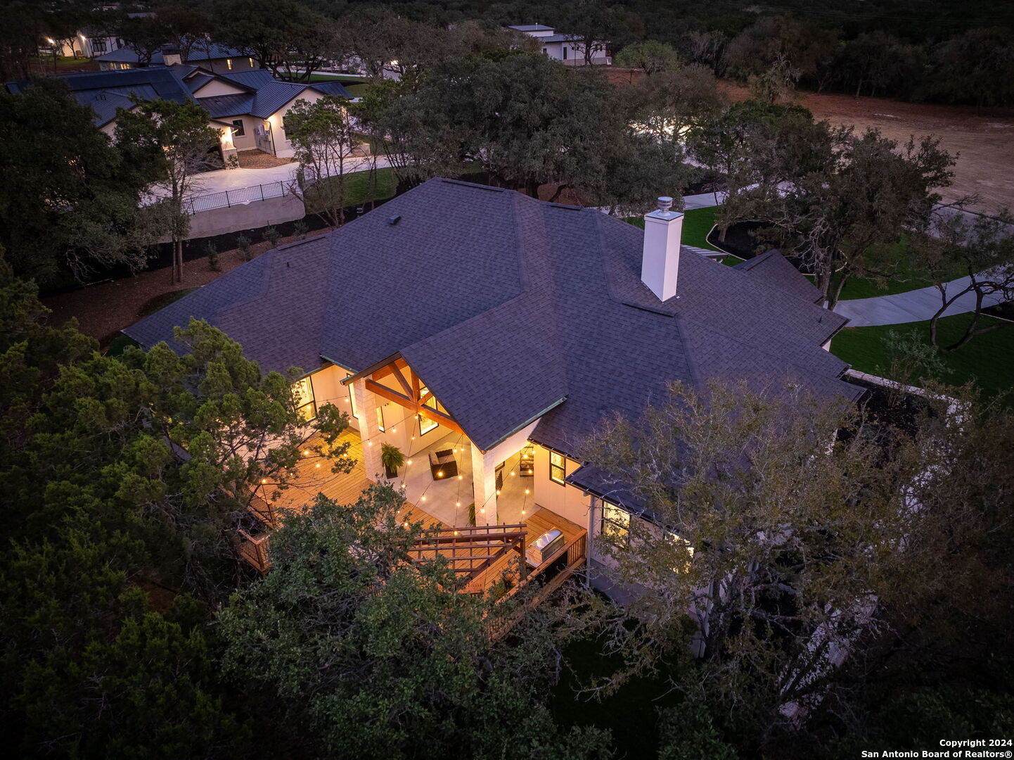 Presenting a Parade of Homes 2024 Most Creative winner in the gated Enchanted Bluff community in Garden Ridge, Texas! This 4-bedroom, 3.5-bathroom home combines comfortable luxury living with a layout designed for ease and elegance. Enjoy an open-concept living area featuring an cozy wood burning fireplace with gas log lighter and large oversized sliding glass patio doors that lead to a covered patio and deck, complete with a BBQ grill stub-out, surrounded by mature trees for a secluded setting. The spacious kitchen boasts custom cabinetry, quartz countertops, stainless steel appliances, butler's pantry, beverage bar, and stunning custom lighting. The privately located master suite offers a retreat on one side of the home, while three additional bedrooms, including a Jack-and-Jill bath, are situated on the opposite wing. Additional highlights include tankless water heater, an oversized 3-car garage, and office space, all crafted to elevate daily living and entertaining.