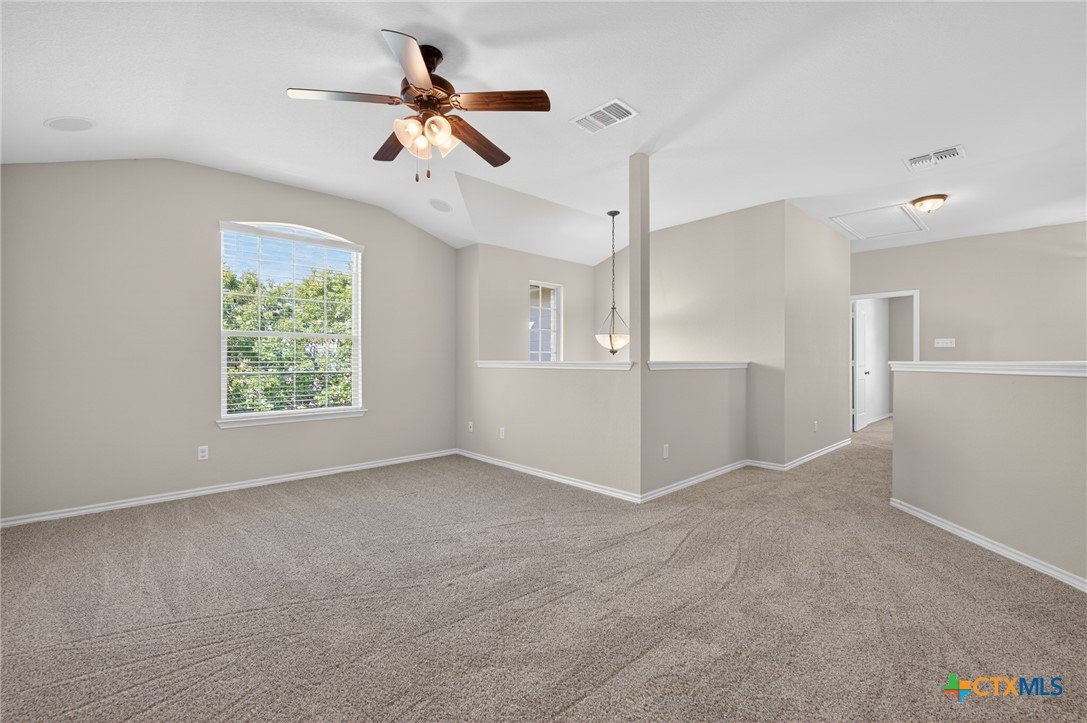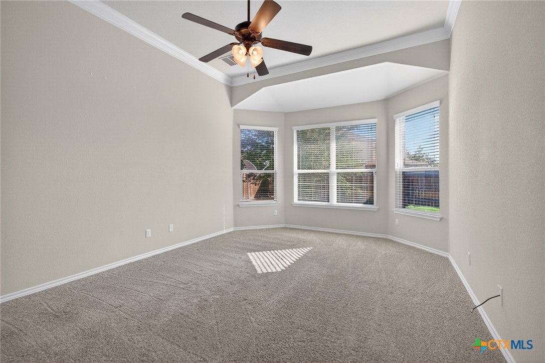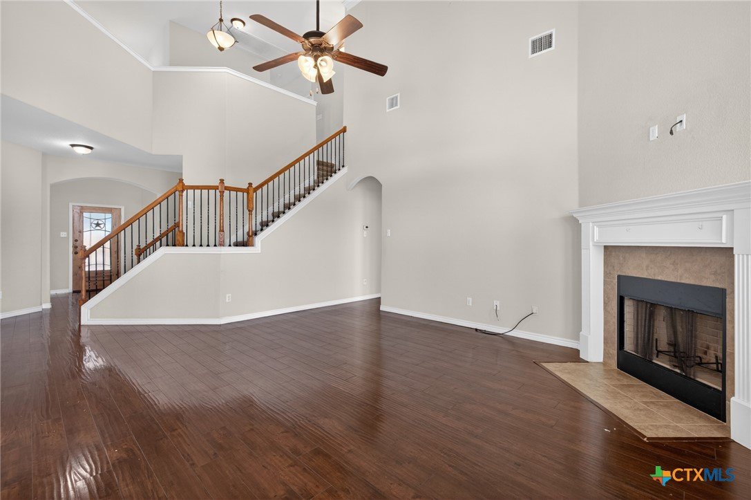 Fully loaded, spacious 2-story home with 4 bedrooms and 2.5 bathrooms, located on a cul-de-sac in the desirable Tuscany Meadows subdivision. Just minutes from community parks, Stillhouse Hollow Lake, top-rated schools, shopping, and dining. This home offers both privacy and convenience in a prime Central Texas location. Gorgeous wood-laminate flooring leads to arched entries and crown molding. An office/study sits off to one side, with large windows that bring in plenty of natural light and flow into the open-concept, high-ceiling family room with a corner fireplace. The gourmet kitchen features granite counters, modern stainless-steel appliances, and abundant cabinet space. The owner’s suite is located on the main floor and includes a charming bay window, jetted tub, separate shower, double vanity, and a spacious walk-in closet. Head upstairs to a beautiful staircase that opens to a large loft with wet bar, along with three additional comfortably sized bedrooms. Schedule a private showing today and take advantage of this opportunity to make this beautiful, move-in-ready home yours!