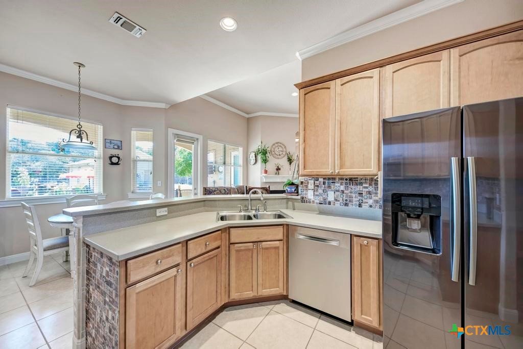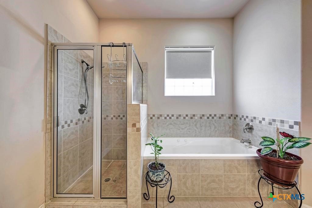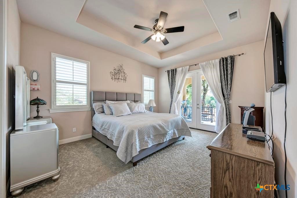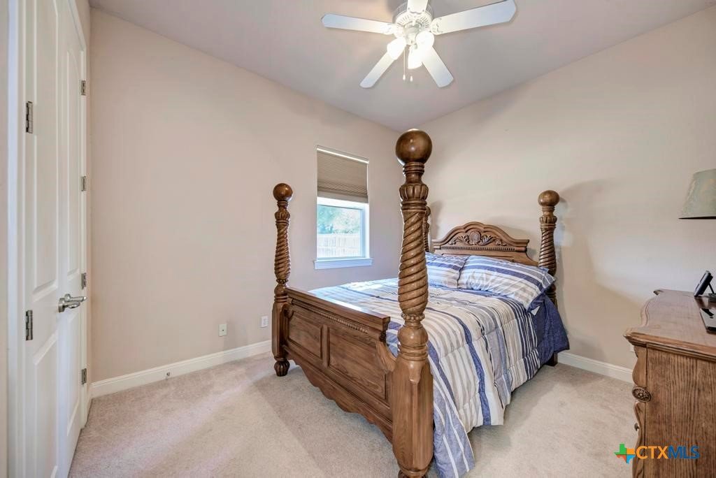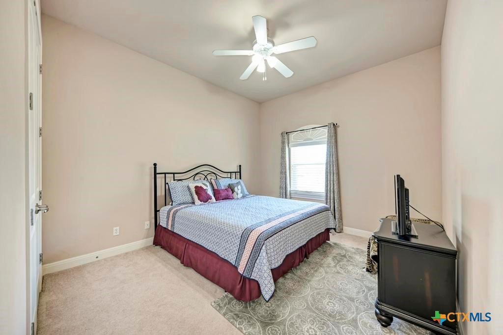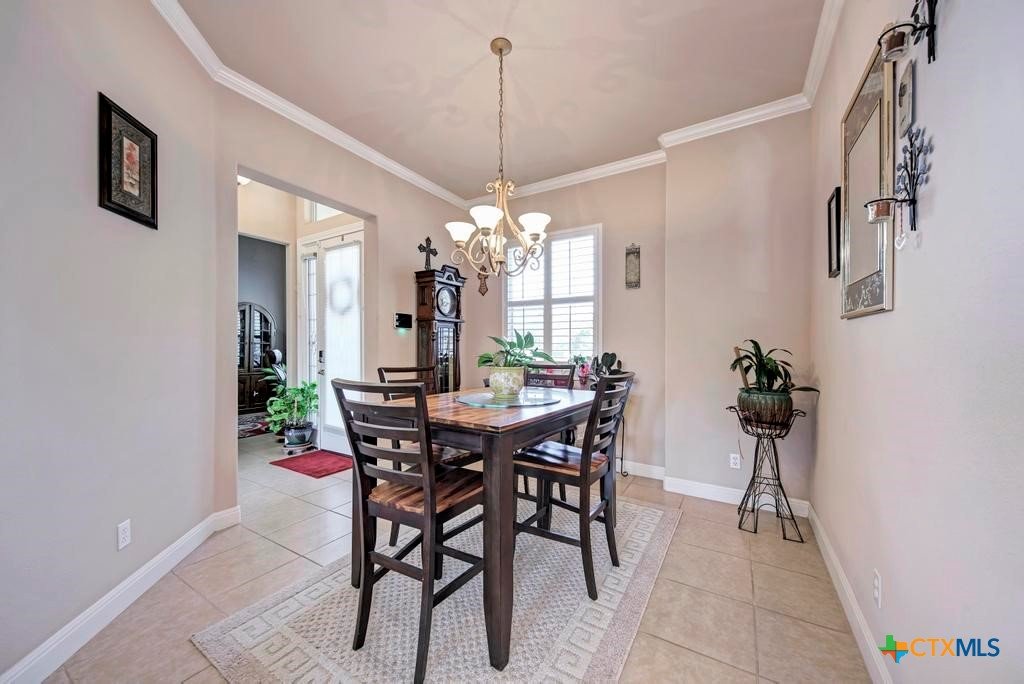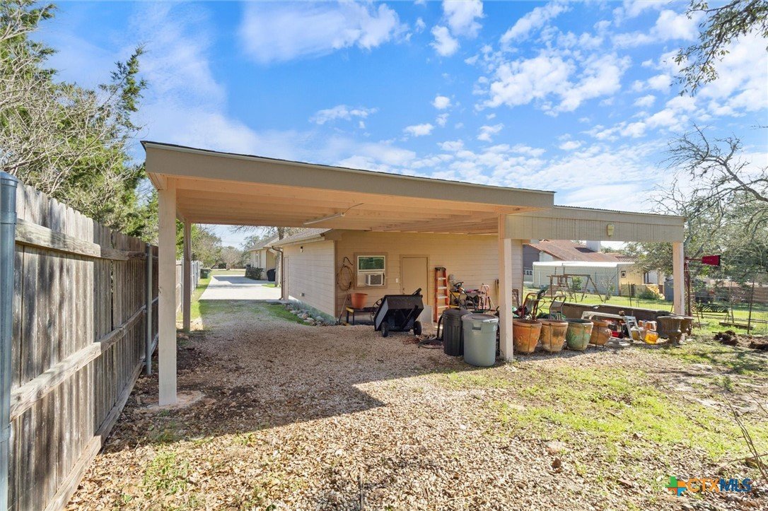This beautifully crafted, single-story home sits on a generous 1-acre lot, offering a perfect blend of style, comfort, and functionality. As you step inside, you are greeted by soaring ceilings, elegant crown molding, and expansive windows that flood the space with natural light. The formal dining room and study are thoughtfully placed on either side of the foyer, creating an inviting atmosphere as you enter. The heart of the home is the open-concept kitchen and living room, designed for both entertaining and everyday living. The kitchen boasts a breakfast bar, cozy nook, custom tile backsplash, and ZLINE gas stove. With ample counter space, abundant storage, and a charming fireplace, this space is perfect for creating memories. Just off the kitchen, you’ll find the luxurious master suite, a true retreat. The spacious room features a tray ceiling with a fan and French doors that lead out to the serene patio. The ensuite bathroom offers a spa-like experience with an oversized dual vanity, a garden tub, and a separate shower—ideal for unwinding after a long day. Across the home, you'll discover three additional well-sized bedrooms and two full baths, one with ADA features, providing comfort and privacy for family or guests. The expansive backyard is a private oasis, featuring a full covered patio with ceiling fans, a massive custom Trex deck, and pergola perfect for enjoying tranquil mornings and evenings. For added convenience, the third garage/workshop includes an enclosed space complete with a half bath, heating, air conditioning, and plenty of room for projects or storage. Additional updates include a new roof, full HVAC system installed in 2021 & 2024, water softener as well as solar panels and a propane tank for added energy efficiency. The property also features fruit-bearing trees, including peach, lime, plum, and pecan, enhancing the outdoor charm.