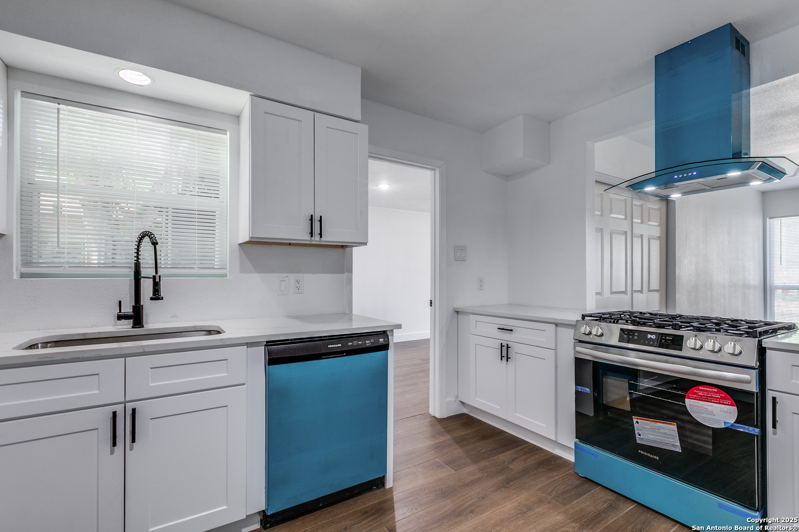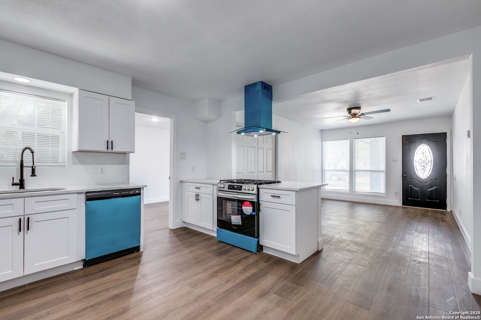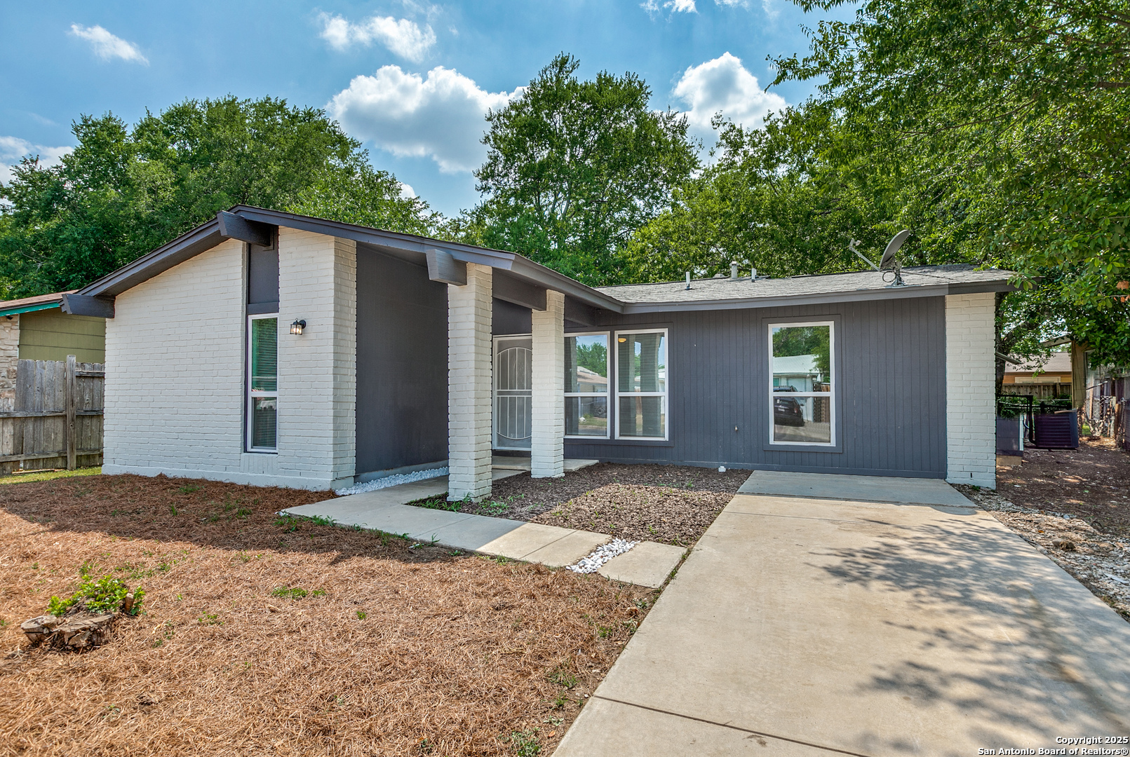 Cute house with a converted garage to allow for primary bedroom and bathroom seperate from the other bedrooms. Newly renovated throughout with new floors, new stainless steel refrigerator & dishwasher, and who doesn't love a gas stove! Solid countertops in the kitchen and new vanities in the bathrooms. New hardware on the doors, new exterior paint and neutral colors throughout and ceiling fans in each room. Have to see this house to appreciate how good it looks!