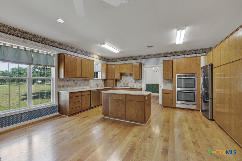 Hill Country living at its finest! This stunning full Austin stone home is a true Hill Country classic, beautifully positioned on 19 unrestricted acres along the infamous Willow City Loop - known for its breathtaking wildflower views and serene country drives. The property features a dry creek and is fully fenced and cross-fenced, offering privacy, space, and endless possibilities for recreation, livestock, or simply soaking in the natural beauty. Step inside this well-appointed 3-bedroom, 2-bath home with generously oversized rooms throughout. Enjoy a true formal dining room for special gatherings and an eat-in kitchen perfect for everyday living. Designed for entertaining and relaxing, the fully screened-in back porch invites you and your guests to sit, stay, and savor the peaceful surroundings. This property also includes: A hobby shed Workshop Hot house Covered RV parking Tractor barn Feed house Covered parking All structures boast new roofs and all fencing was replaced just a year ago - making this property ready for you to move in and make it your own. If you've been dreaming of wide-open spaces, Texas sunsets, and a home that has it all!