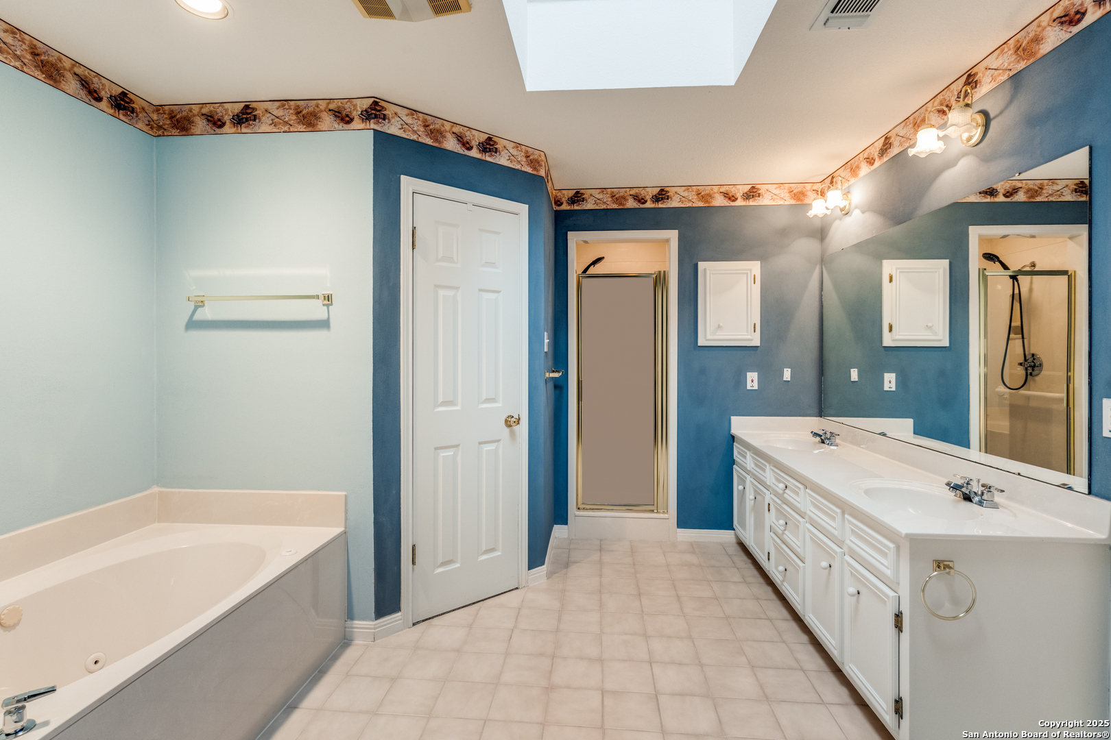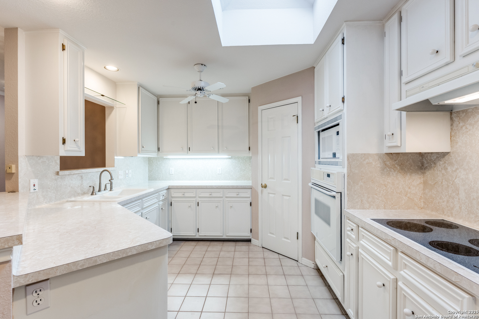 Discover your dream home escape in this beautiful brick residence featuring a perfect blend of comfort, and style and... location, location location! Step inside to find a spacious interior bathed in natural light, thanks to skylights and large windows. Indulge in relaxation with a luxurious separate shower and a whirlpool tub, creating a serene retreat right at home. The large covered back porch offers a picturesque view of the yard, perfect for morning coffees or evening gatherings. This home boasts numerous updates, including a new roof and new air conditioning system, ensuring peace of mind for years to come. The expansive two-car garage, with additional parking at the rear, provides convenience for you and your guests. The kitchen is equipped with Whirlpool appliances, including a new microwave, and the fridge is negotiable for your convenience. Enjoy the added benefit of a water softener for comfortable living. Step outside to a beautifully landscaped yard featuring shade trees, crepe myrtles, a rose bush, esperanza bushes, and a peach tree, all of which can be nurtured into your personal backyard oasis. Located close to Veramendi, this home offers easy access to future amenities and shopping. Enjoy nearby favorites, including great pizza and coffee shops. A short walk down California Street leads directly to Landa Park, with opportunities for golf, swimming, concerts, hiking, walking trails, tubing the river, and more. There even is a train ride throughout the park for children and for the young at heart. Don't miss out on an incredible opportunity-schedule a tour today and envision yourself living in this delightful home in the heart of everything that New Braunfels has to offer!