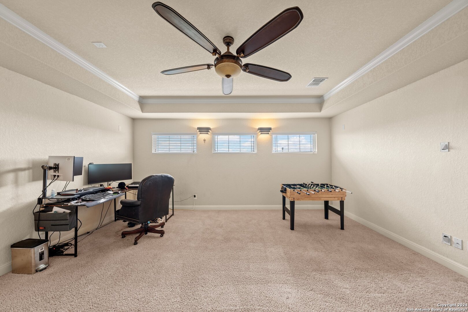 Schedule a showing today to view this beautiful spacious, 4 bedroom, 3.5 bath, 3,277 sqft home located on a double cul-de-sac street in the coveted community of Fallbrook! This is a Platinum series home built by Emerald Homes with many upgrades. Enjoy entertaining in the fully equipped open concept kitchen with granite countertops, stainless steel appliances, and gas cooking. Cap off the night gazing at the view of the green space from the back deck that spans across the entire home. There is truly space for all from the upstairs loft and large media room to the office off the foyer that can also be used as an additional dining space. Enjoy all that the community of Fallbrook has to offer including the gated front entry, sparkling pool, playground and so much more!